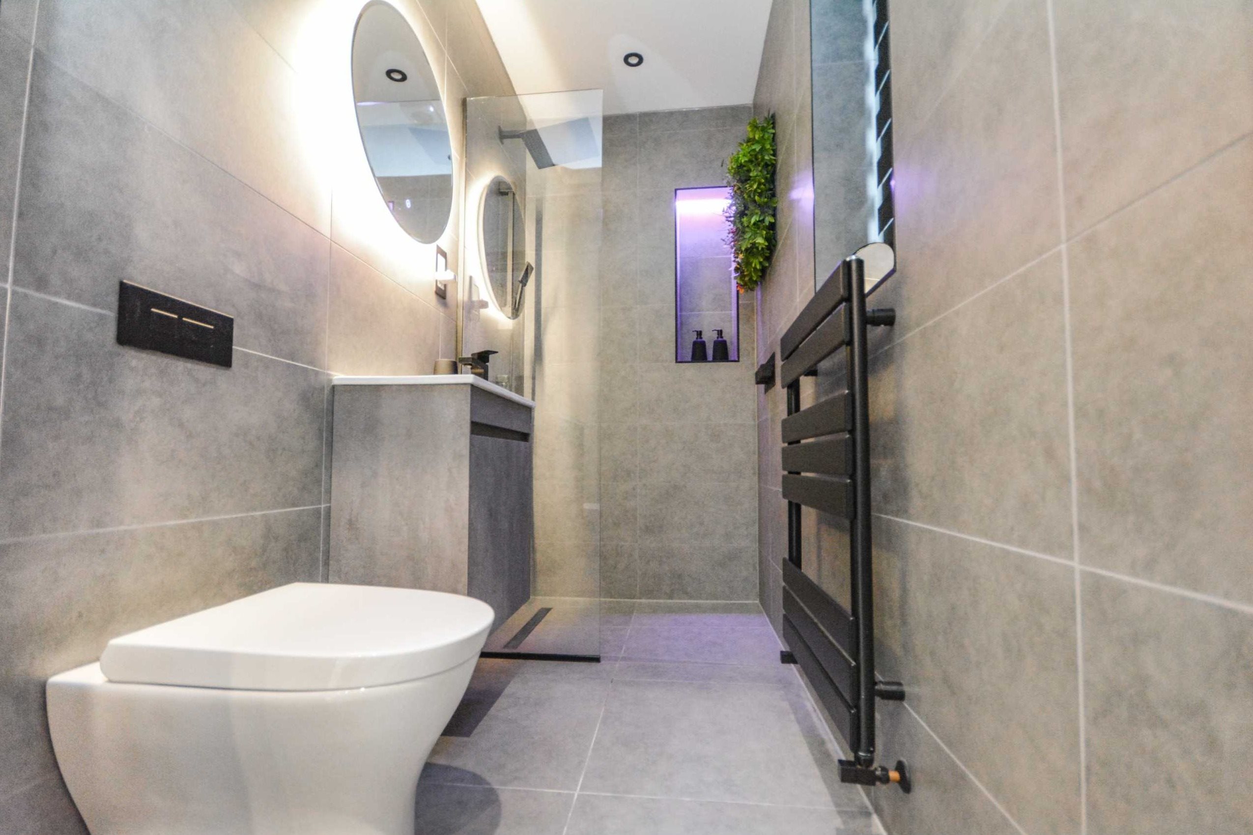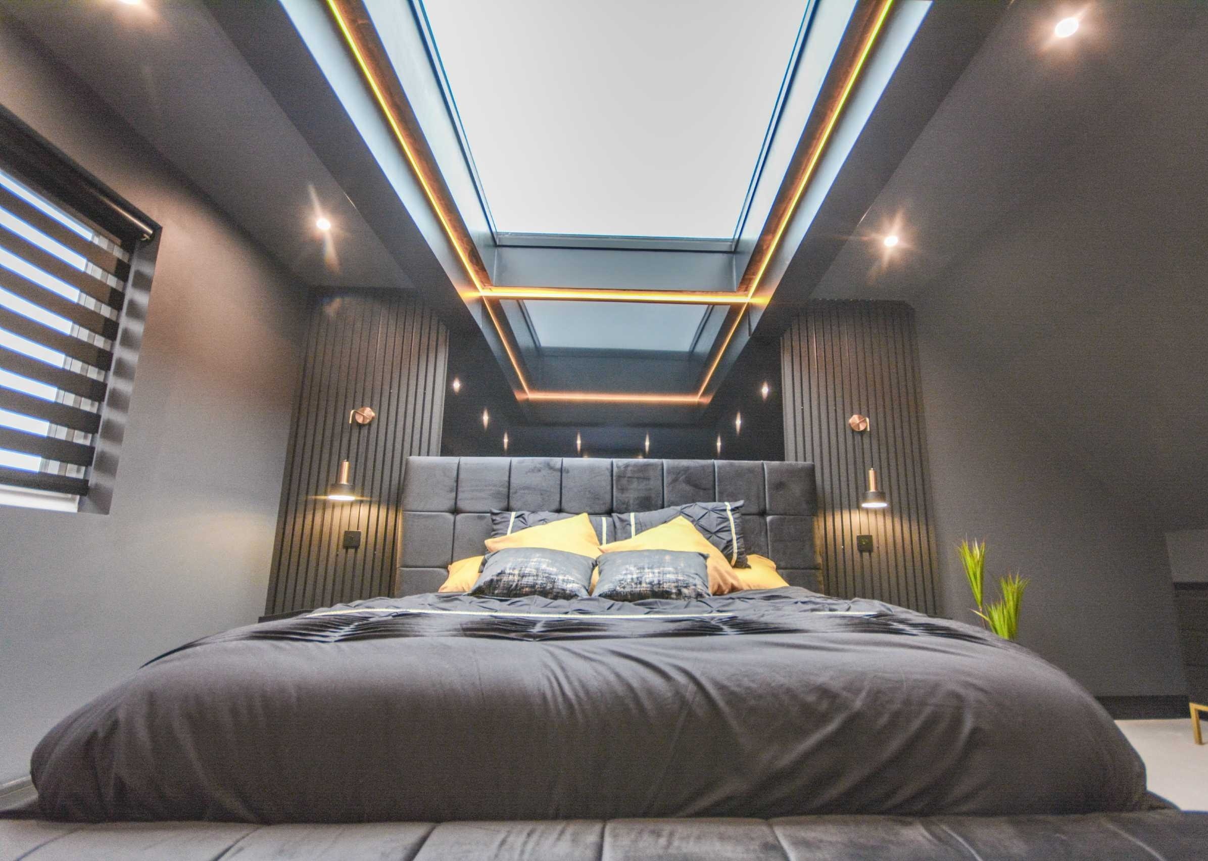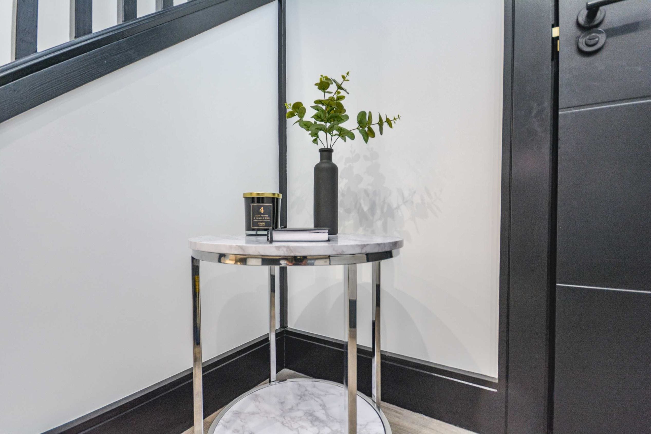 Step inside to find a bright, spacious hallway with a Hikvision smart entry system, leading to two air-conditioned double bedrooms. The open-plan living and dining area is both stylish and functional, featuring a cozy biofuel fireplace and seamless access to a landscaped garden, perfect for relaxing by the fire pit. The sleek kitchen, complete with integrated appliances, is complemented by a utility room and W/C.
