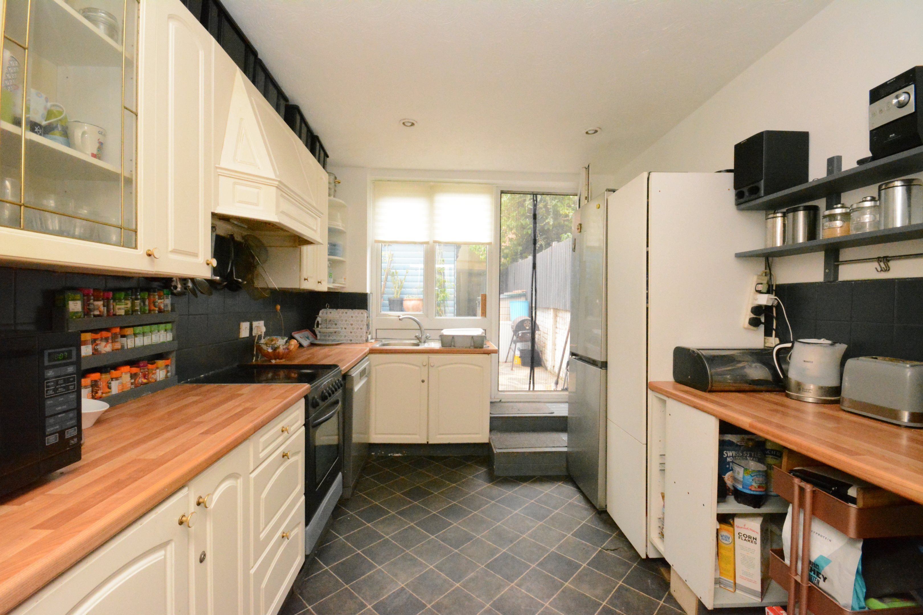 Entrance HallVia front door. Stairs to first floor. Door to..Inner HallwayUnder stairs storage. Door to..Utility AreaSpace and plumbing for washing machine. Wall mounted boiler. Door to..CloakroomLow level WC. Wash hand basin. Double glazed window to rear.Lounge11'8 x 11'5 (3.56m x 3.48m)Double glazed bay window to front. Radiator. Power points. Double doors to..Dining Room11'4 x 10'5 (3.45m x 3.18m)Radiator. Power point. Double doors to..Kitchen11'0 x 8'7 (3.35m x 2.62m)Range of wall and base units. Sink with drainer. Double glazed window to rear. Door to garden. Space for Cooker. Space for fridge freezer.Split level landingBathroom7'3 x 5'2 (2.21m x 1.57m)Double glazed windows to side x 2. Panelled bath with shower over. Wash hand basin. Low level WC. Radiator.First floor landingBedroom Three12'0 x 11'6 (3.66m x 3.51m)Two x double glazed windows to front. Walk in wardrobe. Radiator. Power points.Bedroom Four11'5 x 10'3 (3.48m x 3.12m)Double glazed window to rear. Radiator. Power points.Split Level LandingDoor to roof terraceSecond floor landingLoft hatch. Store cupboardBedroom One11'6 x 10'3 (3.51m x 3.12m)Double glazed window to rear, radiator. Power points.Bedroom Two11'4 x 9'4 (3.45m x 2.84m)Double glazed window to front. Radiator. Power points.Bedroom Five7'9 x 5'4 (2.36m x 1.63m)Double glazed window to front. Power pointsCourtyard GardenMainly laid to pave. Large shed.