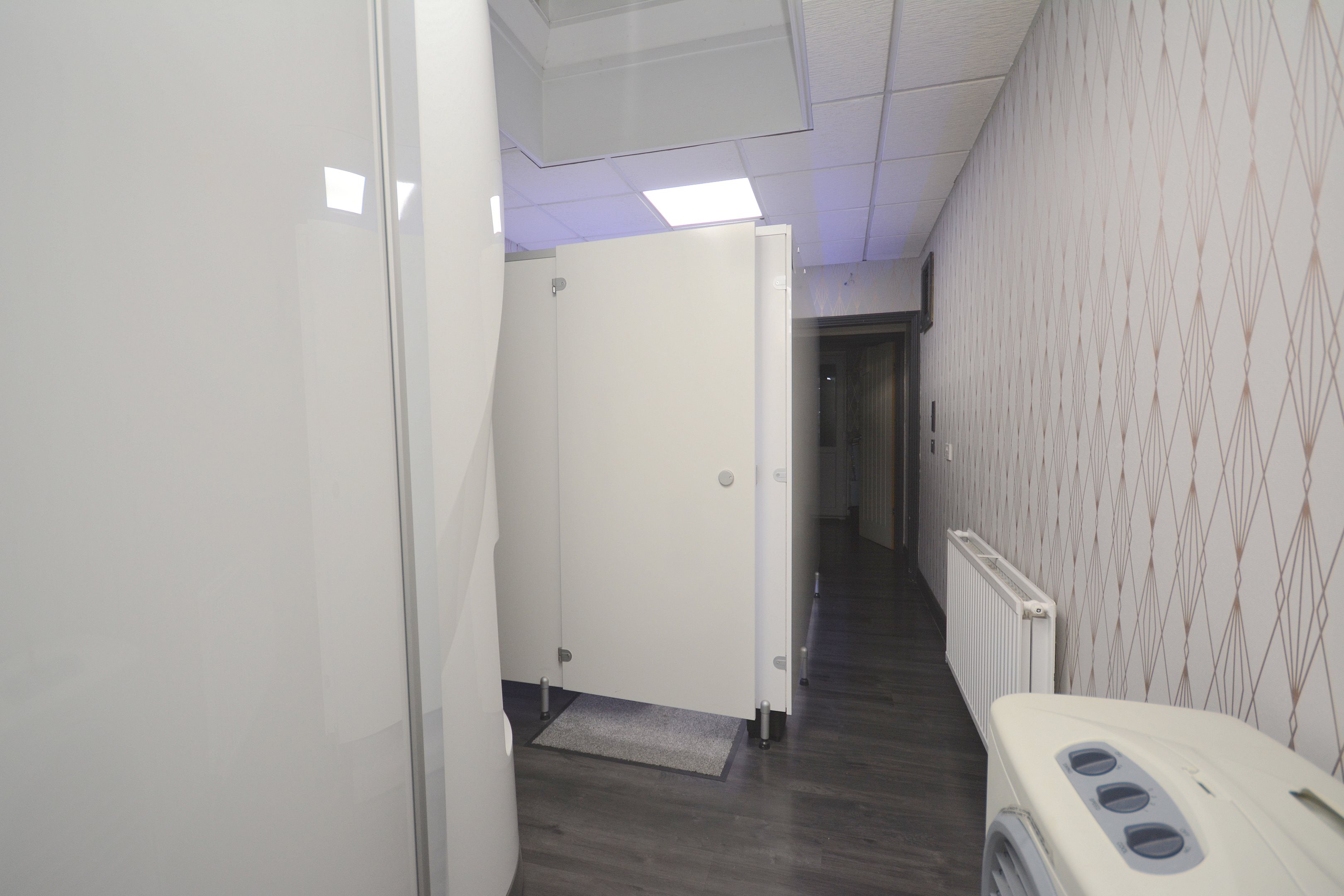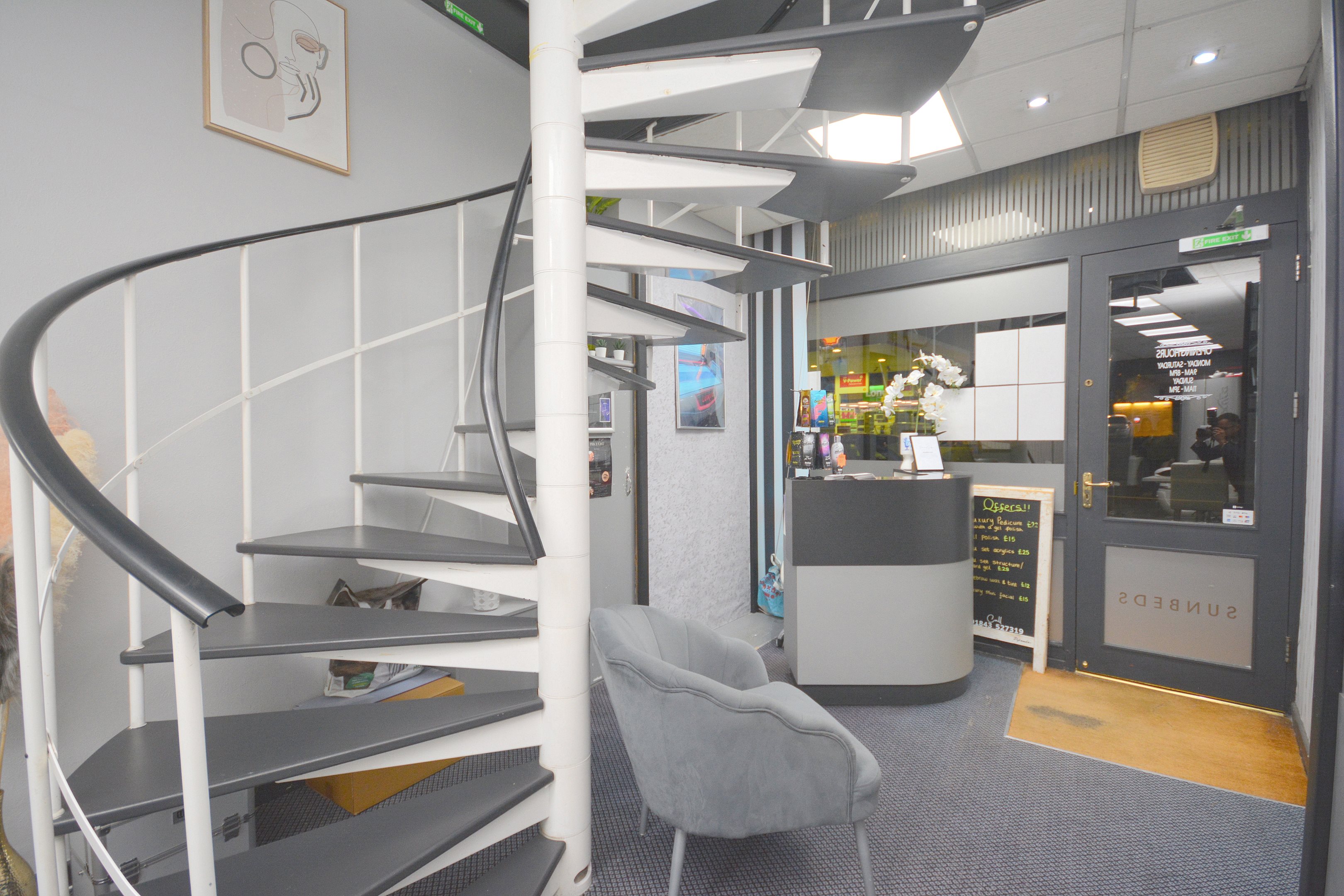 EntranceVia glazed frontage and door leading intoMain Salon9'8 x 49'0 (2.95m x 14.94m)Reception area. Cupboard housing meters. Open beauty room. Vinyl flooring. Multiple power points.CloakroomCustomer WC and wash hand basin.KitchenetteSelection of units with worksurfaces. Sink unit with drainer. Double-glazed door to rear courtyard area. Shelving area for storage.Spiral Staircase Up To...Treatment Room19'6 x 9'7 (5.94m x 2.92m)Open plan area with seating and mirrors. Through to...