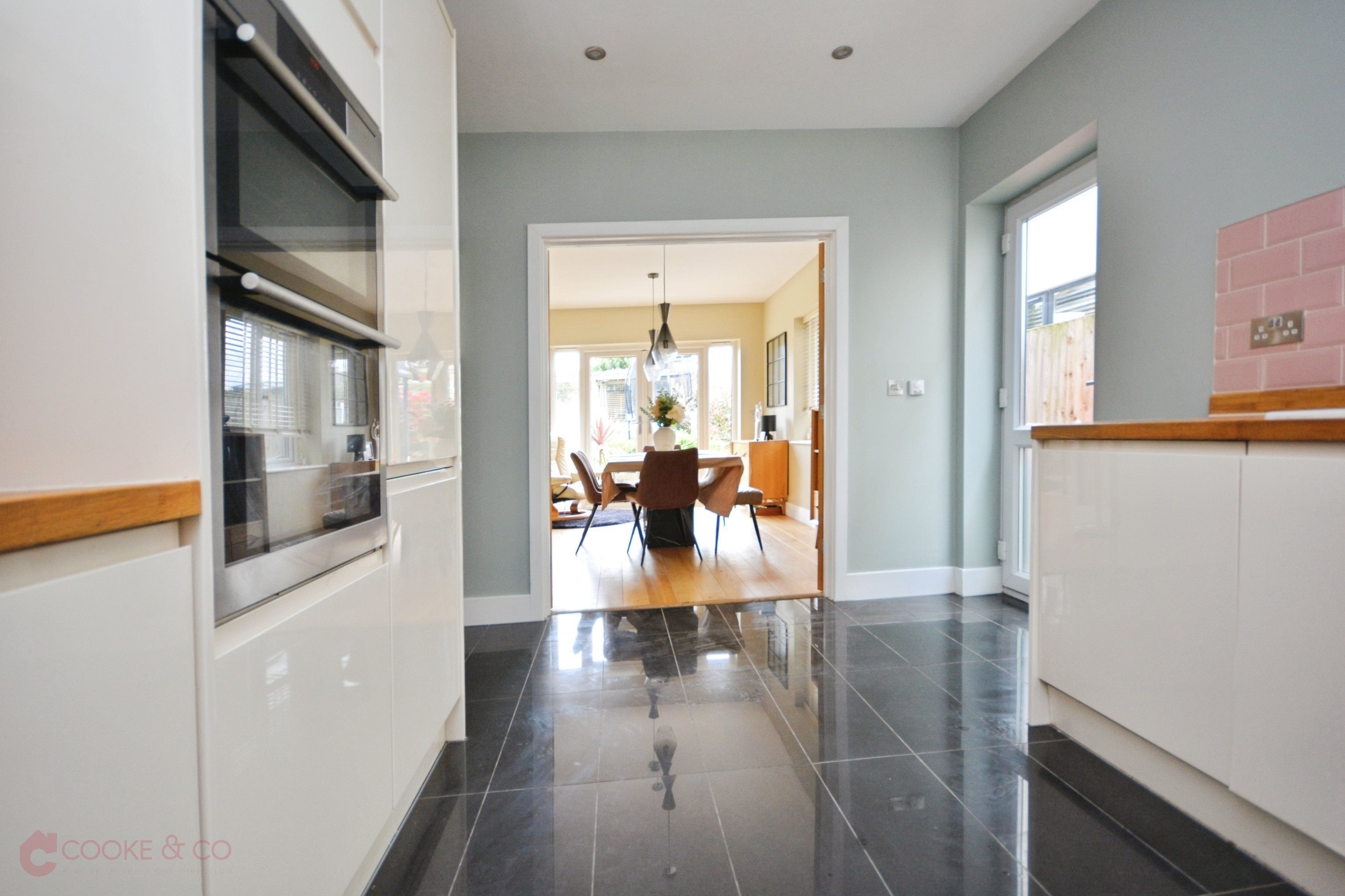 Integral access. Worchester combi boiler. Space and plumbing for washing machine, sink with mixer taps, door to side with access to rear garden, electric operated up and over garage door.