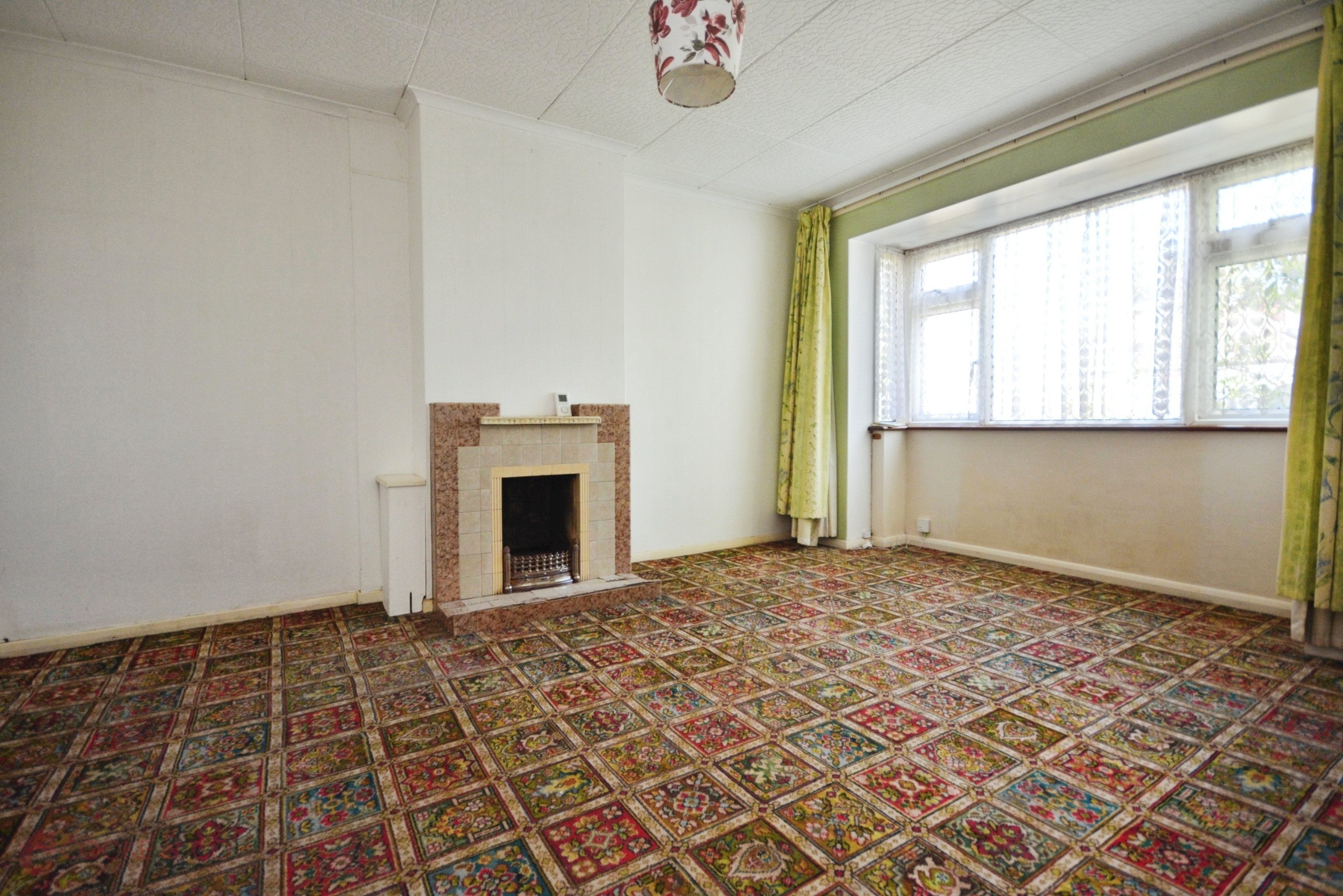 Bay window to front, carpeted, fireplace, skirting and coving, power points.