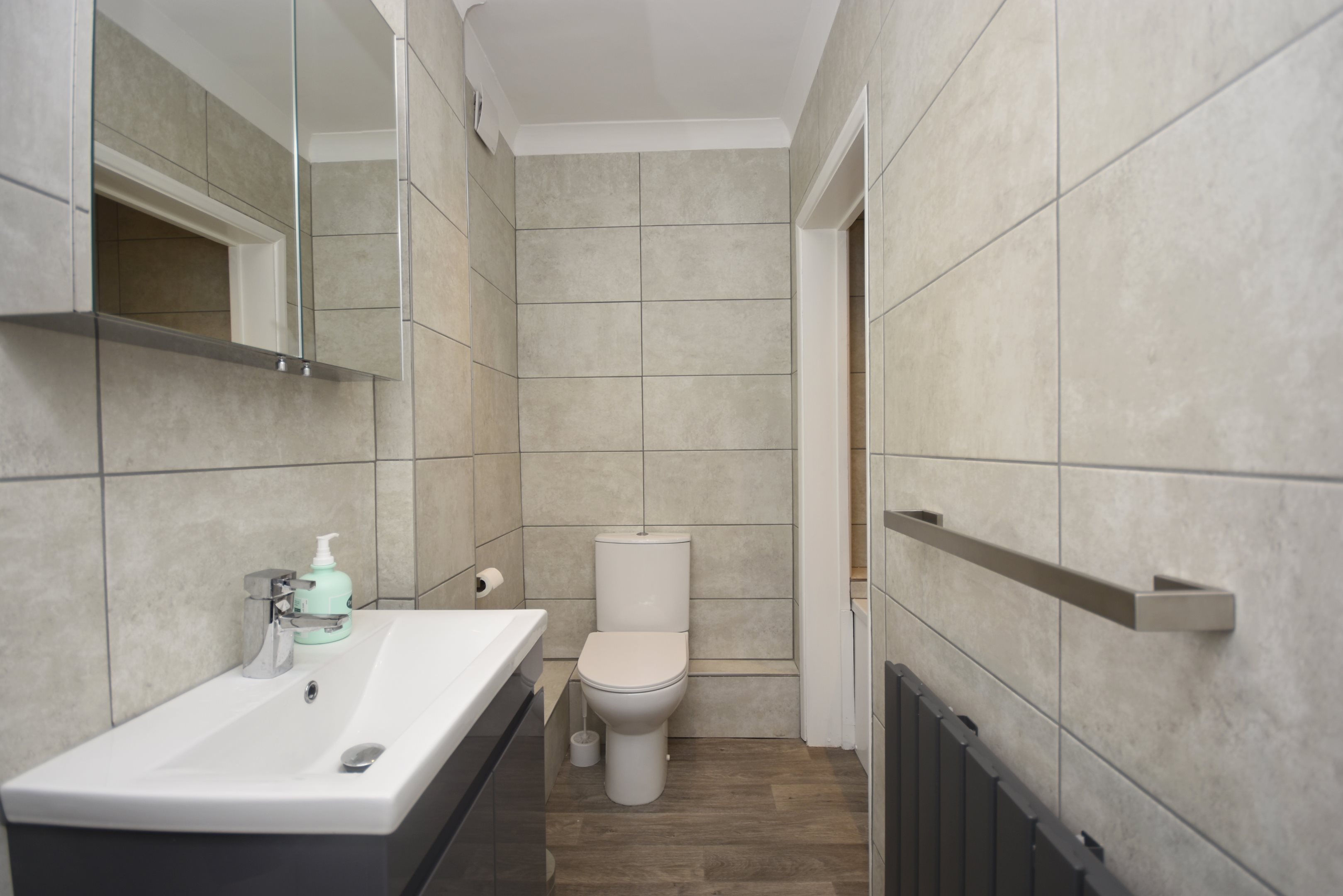 Communal Entrance Hall Stairs to first floor Lounge 11'1 x 10'4 (3.38m x 3.15m) Double glazed window to front offering partial sea views. Radiator. Power points. Kitchen/Diner 12'7 x 9'9 (3.84m x 2.97m) Range of wall and base units with complementary work surfaces. Integral oven and hob with extractor fan over top. Integral fridge freezer. Integral washing machine. One and half bowl with drainer. Power points. Radiator. Double glazed window to rear. Wall mounted Combi boiler. Bedroom 13'8 x 9'5 (4.17m x 2.87m) Double glazed window to front with partial sea views. Power points. Radiator. Wall mounted fuse board. Bathroom 7'5 x 6'4 narr to 3'6 (2.26m x 1.93m narr to 1.07m) Low level WC. Wash handbasin inset into vanity unit. Wall mounted cupboard with mirrors. Radiator. Panelled bath. Extractor fan. Leasehold Information The vendor has advised us that the property will be sold with a new 999 year lease and that the service charge is £700 per annum