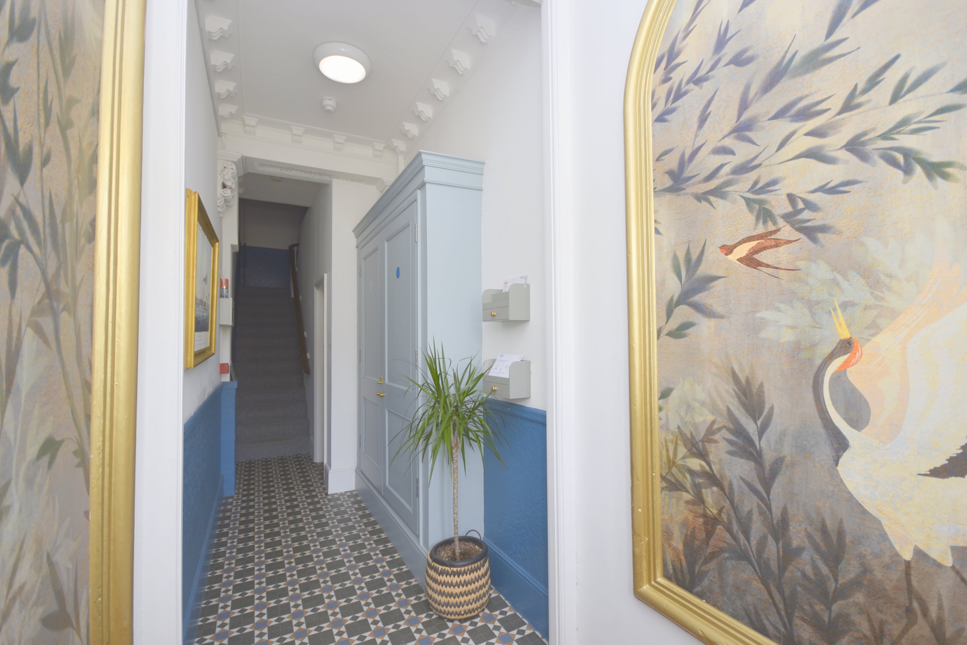 Entrance Via front steps into beautifully decorated communal hallway and own front door into... Hallway Running the length of flat. Intercom. Laminate flooring. Wooden sash window to side. Mains smoke alarm. Two storage cupboards. Doors to all rooms. Lounge 18'4 x 14'0 (5.59m x 4.27m) Wooden bespoke double glazed sash bay window to front with sea views to side and wooden shutters. Original wooden floorboards. Marble fireplace with tiled hearth. Original grand cornice and picture rail. Black School radiator. Original ceiling rose. High ceilings. Bedroom One 14'2 x 11'5 (4.32m x 3.48m) Wooden window to rear. Black school radiator. Painted wooden floorboards. Feature marble fireplace with tiled hearth. Bedroom Two 9'1 x 6'2 (2.77m x 1.88m) Wooden window to side. Laminate flooring. Black school radiator. Cupboard housing boiler. Bathroom 7'0 x 6'2 (2.13m x 1.88m) Suite comprising tile panelled bath with overhead mains shower with additional rinse head and screen to side, Savoy basin and mid level WC. Wooden window to side. Black school radiator. Tiled flooring. Part tiled walls. Kitchen 12'5 x 10'6 (3.78m x 3.2m) Selection of wall, base and full height units with complementary work surfaces and breakfast bar. Laminate flooring. Integrated fridge and freezer , dish washer and washing machine. Porcelain sink unit with drainer and gold taps. Electric oven and induction hob. Full length wall mounted radiator. Smoke alarm. Wooden window to side. Double glazed window and French doors into... Rear Garden Beautifully stocked West facing private walled garden, a real sun trap. Raised flower borders with a vast selection of flowers and shrubs. Fir tree. Wall and fence enclosed. Outside tap. Two x double outside plugs. Leasehold Information The vendor informs us the there are approximately 88 years remaining on the lease and the property benefits from Right to manage (The vendor advises that the cost to extend the lease would be around £5k plus legals). The vendor informs us that the service charge is approximately £200 per annum paid in two £100 instalments and the buildings insurance is approximately £650pa and the ground rent is £50 per annum. We understand that pets are permitted within the terms of the lease.