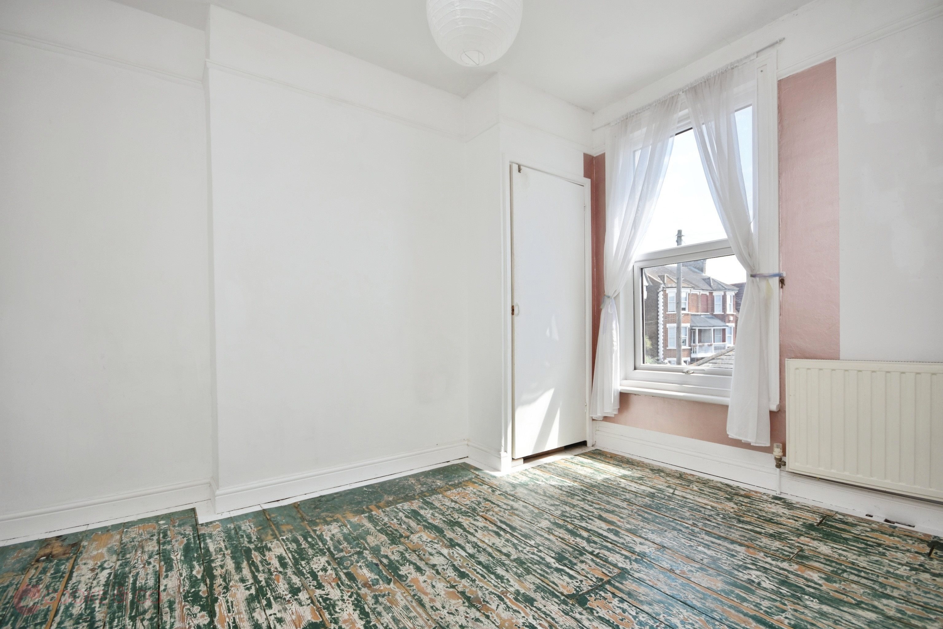 Wooden flooring. Radiator.