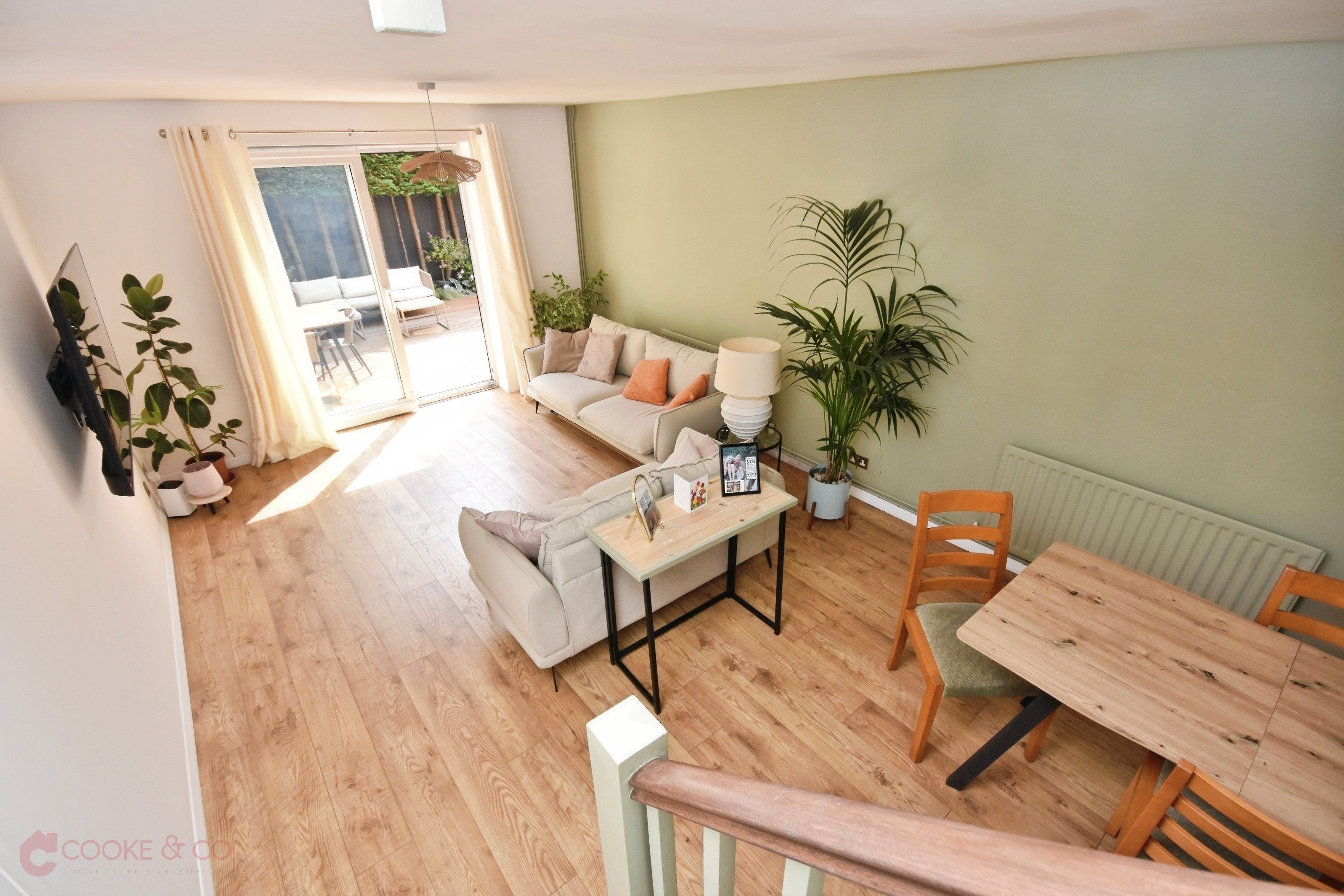 Part decking area ideal for hosting friends and family. Part shingle. Rear access via gate to rear parking space. Side access via gate to front of property.