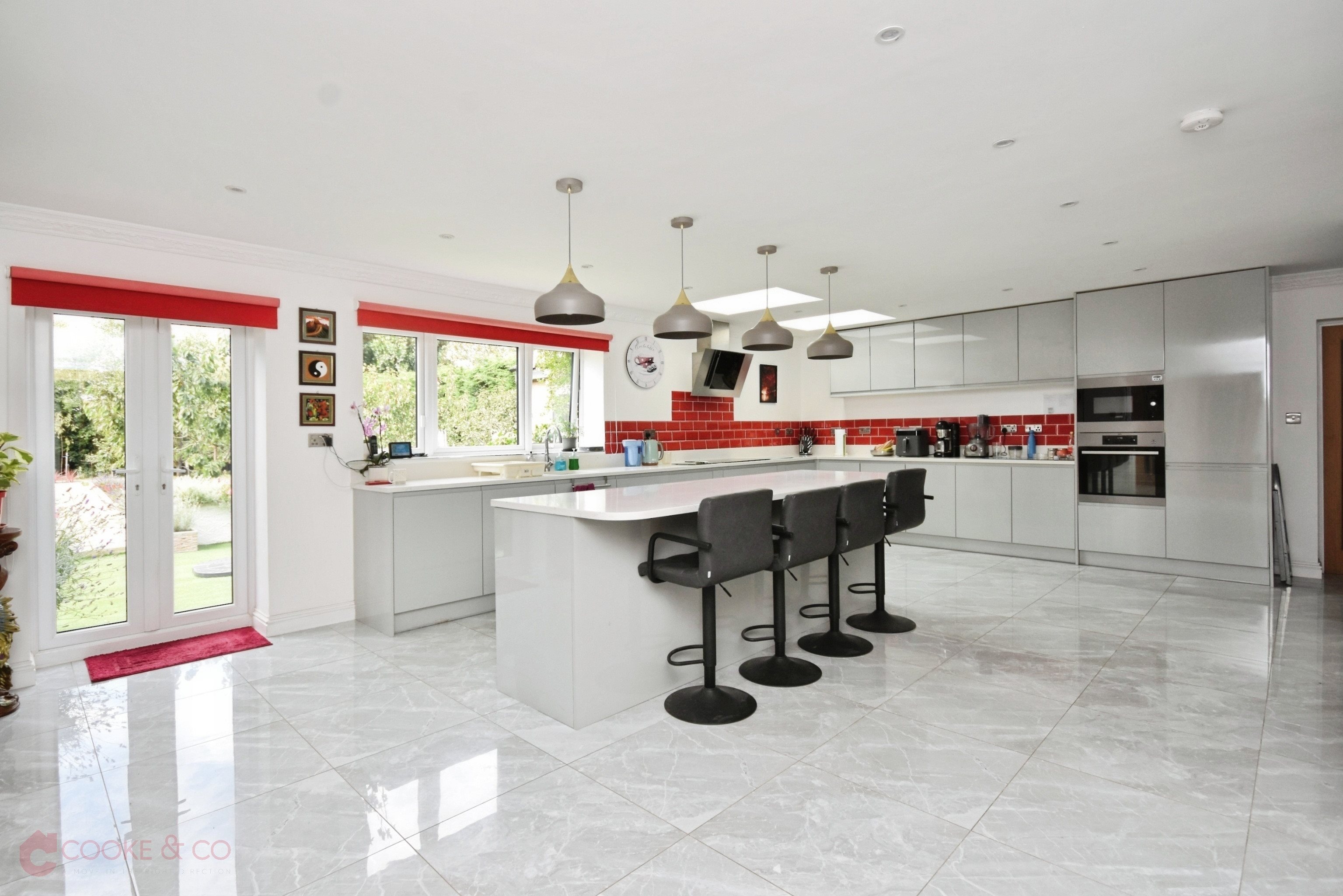 Cooke & Co are delighted to present this truly exceptional four-bedroom detached residence, set within the prestigious gated Fitzroy Avenue in Kingsgate, Broadstairs. Immaculately presented throughout, this stunning home boasts four generous double bedrooms, each with its own luxurious en-suite bathroom. Bedrooms one and two also enjoy access to a private balcony overlooking the landscaped rear garden, offering a peaceful retreat with wonderful views. The ground floor showcases two elegant lounges, a formal dining room with bi-folding doors opening seamlessly to the garden, and a superbly spacious modern kitchen complete with a separate utility room. The attention to detail and immaculate condition throughout ensure this home delivers the ultimate "wow factor." Set on a substantial plot, the property is enhanced by its beautifully maintained garden, which includes a picturesque orchard, a charming pond, a versatile garden room, and a dedicated gym/massage room, perfect for both relaxation and recreation. Energy efficiency is at the heart of this property, boasting an outstanding EPC Grade A rating with solar panels, making it not only stylish but also sustainable. A large gated driveway provides ample parking, adding to the privacy and exclusivity of this impressive home. Perfectly positioned, the property is just minutes from the golden sands of Botany Bay beach and the popular Botany Bay Hotel and Restaurant, making this location as enviable as the home itself. Located in the highly sought-after Kingsgate area, this residence offers the perfect blend of luxury, comfort, and lifestyle an exceptional opportunity not to be missed.