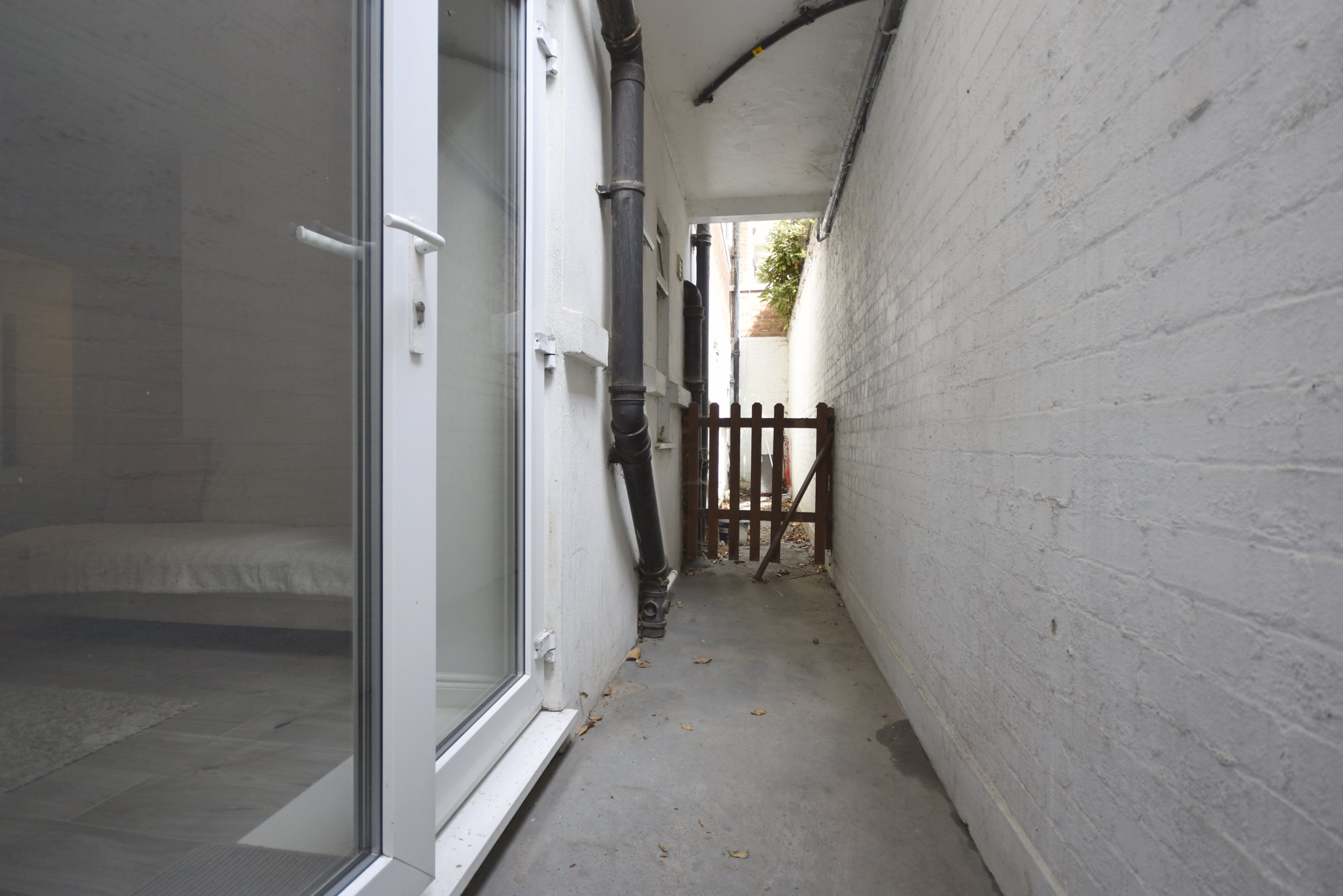 Entrance Located to the rear of the property and with own stairs down to lower ground floor and own front door to... Hallway Double storage cupboard. Doors to all rooms. Bathroom 8'6 x 7' (2.59m x 2.13m) White suite comprising panelled bath, pedestal wash hand basin and low-level WC. Tiled walls and flooring. Radiator. Lounge/ Kitchen / Diner 21'2 X 17'8 (6.45m X 5.38m) Spacious open plan area with selection fitted wall and base units with complementary worksurfaces, integrated oven and hob with splashback and extractor. Tiled splashbacks. Space and plumbing or washing machine. Radiator. Double-glazed French doors to small outside space area. Power points Courtyard Bedroom 10'5 X 10'7 (3.18m X 3.23m) Double-glazed window. Radiator. Power points. Communal Gardens / Parking There is a communal parking area (unallocated) and also attractive communal gardens shared by the flats. Agents Notes We have been advised of the following lease information: Service charge: £4,900 per annum Ground rent: £250 per annum The vendor has also advised that the property is sold with a share of freehold and a lease term 999 years (less 1 day) from 25 December 1950 leaving 924 years remaining.