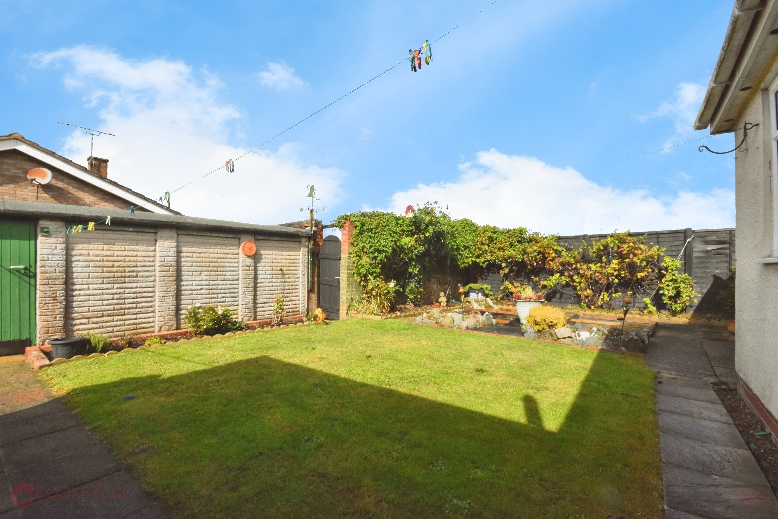 EntranceVia UPVC door into;HallwayAiring cupboard. Carpeted. Electric meter cupboard.Bedroom One10’00 x 11’10Windows to rear. Carpeted. Power points. Radiator. Skirting.Bedroom Two10’00 x 9’06Window to front. Carpeted. Power points, radiator, Built in storage wardrobe.Lounge12’04 x 14’00Windows to front. Carpeted, gas fireplace. Power points. Radiator. Skirting.Bathroom6’09 x 6’05Frosted window to rear. Low level W/C, sink with hot and cold taps, bath with shower attachments, radiator.Dining Room9’09 x 11’00Window to side. Power points. Radiator.Kitchen9’09 x 11’00Windows to side. Matching array of wall and base units with complimentary work surfaces. Sink with hot and cold taps. Integrated oven. Space and plumbing for washing machine. Space for fridge/freezer. Power points. Door with access to rear garden.Wrap Around GardenWrap around corner plot garden. Laid to lawn. Part laid to pave patio area. Pond with water feature. Rear access via side gate.Off Road Parking & GarageIdeal for use of storage capacity and up and over door. Driveway with off road parking in front of the garage.