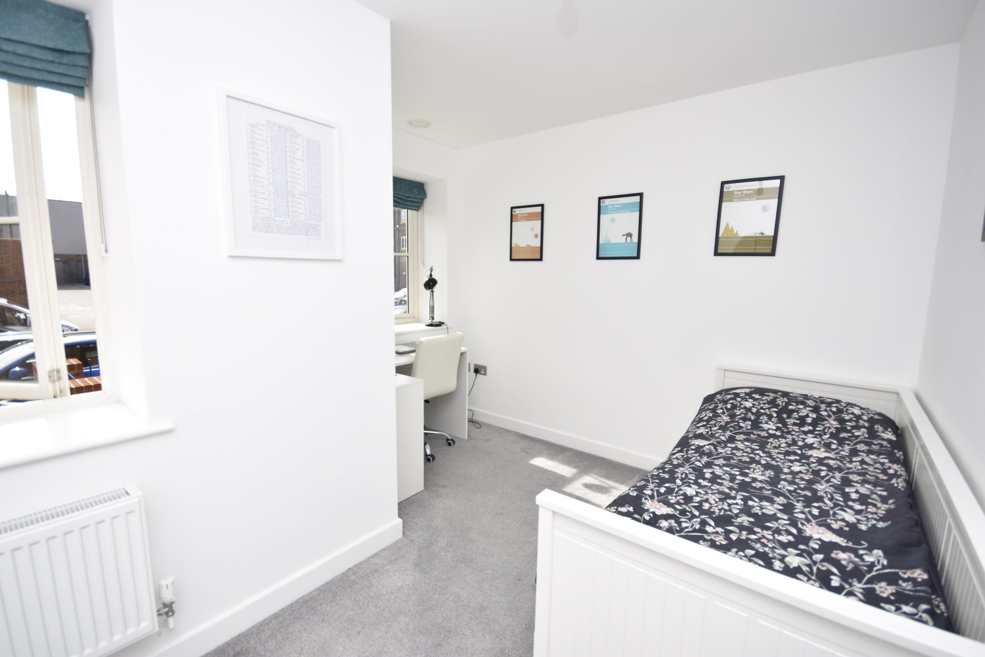 Two double glazed windows to front. Power points. Radiator.Bedroom One11'6 x 10'4 (3.51m x 3.15m)Integral sliding wardrobes. Double glazed window to rear. Power point. Radiator.Bedroom Two12'1 x 10'2 narr to 6'5 (3.68m x 3.1m narr to 1.96m)Two x double glazed windows to front. Radiator. Power points.Bathroom6'9 x 6'8 (2.06m x 2.03m)Tiled bath with mains shower over. Wash hand basin. Low level WC with hidden cistern. Heated towel rail.Allocated Parking SpaceLeasehold InformationThe vendor advises the following: