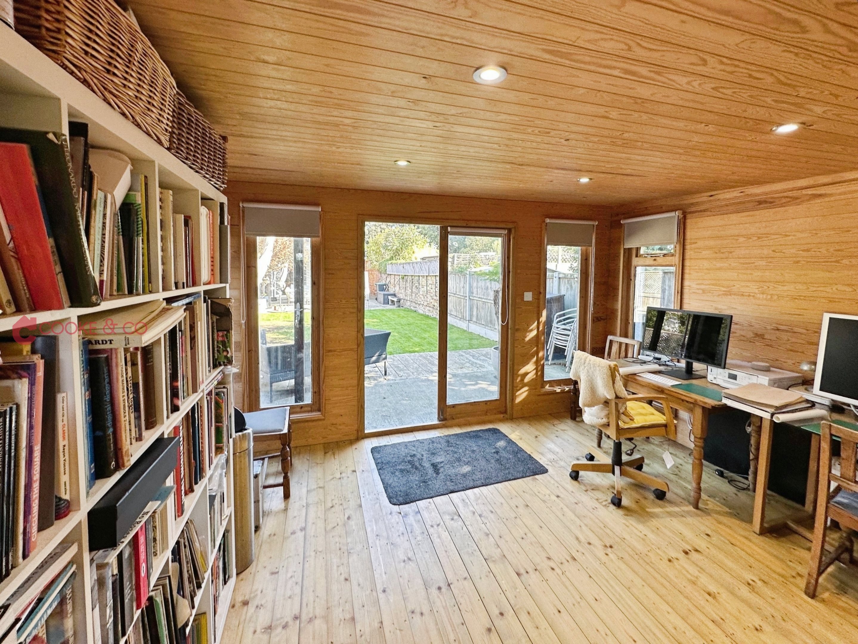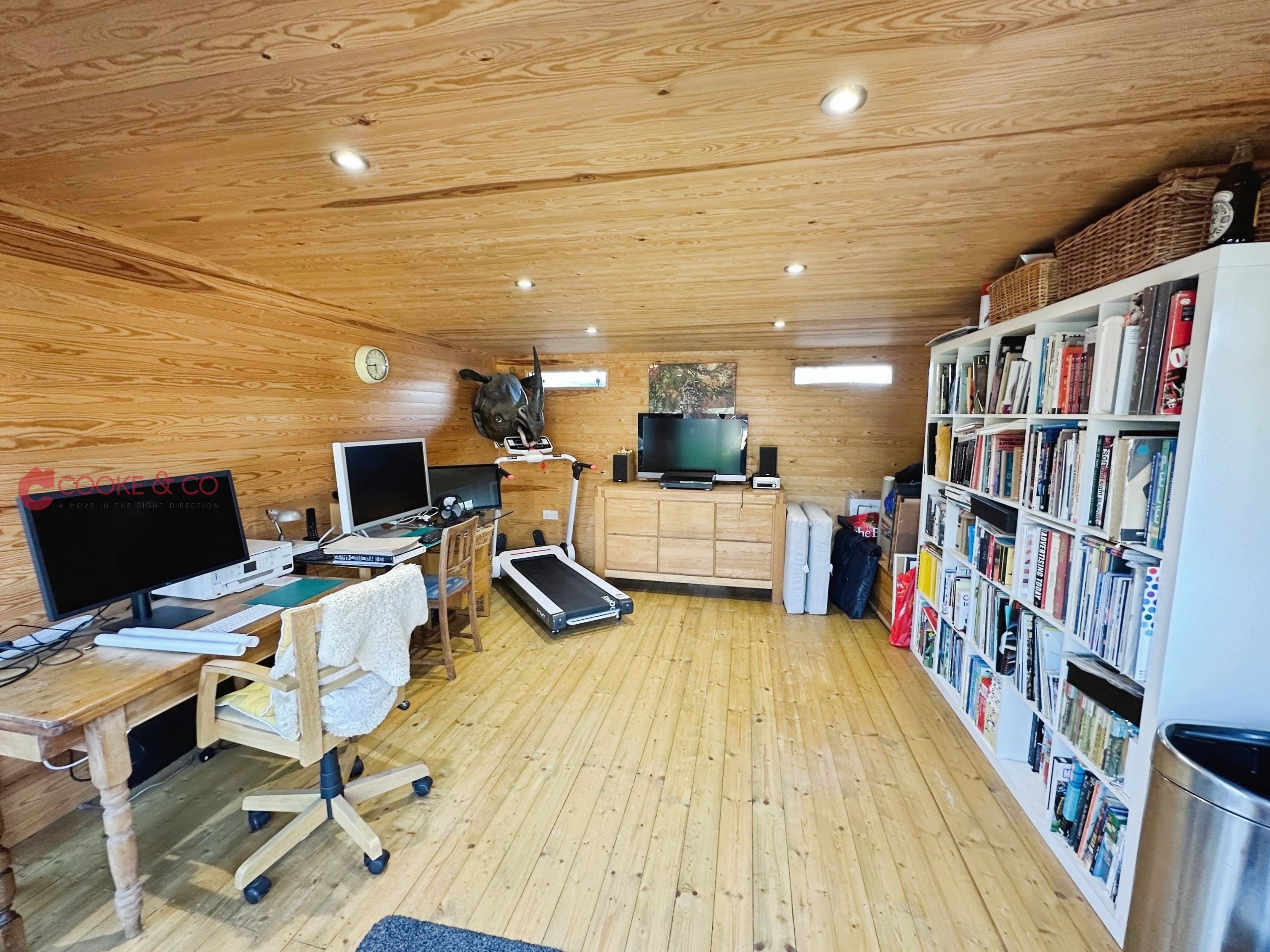 Entrance Private front door into: Hallway Stairs to first floor landing. Storage. Access to: Snug Lounge 14'09 x 11'10 (4.5m x 3.61m) Power points. Radiators. Double glazed windows to front. W/C 2'08 x 4'07 (0.81m x 1.4m) Wash basin with mixer tap. W/C. Shower Room 5'10 x 5'10 (1.78m x 1.78m) Wash basin with mixer tap. Walk in shower. Radiator. Frosted window to side. Lounge/Kitchen/Diner 17'05 x 25'02 (5.31m x 7.67m) Matching array of wall and base units with complementing work surfaces. Double glazed window to rear. Velux windows. Power points. Radiators. Boiler housing. Doors into rear garden. Stairs to First Floor First Floor Landing Access to: Bedroom One 7'02 x 10'03 (2.18m x 3.12m) Power points. Radiators. Double glazed window to rear. W/C 2'08 x 3'09 (0.81m x 1.14m) Wash basin with mixer tap. W/C. Frosted window to side. Bedroom Two 14'00 x 11'10 (4.27m x 3.61m) Power points. Radiators. Double glazed window to rear. Bedroom Three 14'06 x 11'08 (4.42m x 3.56m) Power points. Radiators. Double glazed window to front. Built in storage cupboard. Shower Room 6'00 x 2'11 (1.83m x 0.89m) Wash basin with mixer tap. Walk in shower. Radiator. Frosted window to front. Stairs to Second Floor Second Floor Landing Access To: Bathroom 7'00 x 5'08 (2.13m x 1.73m) Bath with mixer taps and shower attachment overheard. Wash basin with mixer tap. W/C. Radiators. Frosted double glazed window to rear. Bedroom Four 17'05 x 13'07 (5.31m x 4.14m) Power points. Radiators. Double glazed window to rear. Velux windows. Built in storage cupboard. Rear Garden Partially Paved. Pergola covering paved section. Mainly Laid to lawn. Cabin Fully insulated with power. Currently used as an office. Front Drive Parking for two cars. Disclaimer Please be aware the floorplan has been created by our seller. Cooke & Co do our best to make sure our marketing is as accurate as possible but we recommend our buyers do their own research too.