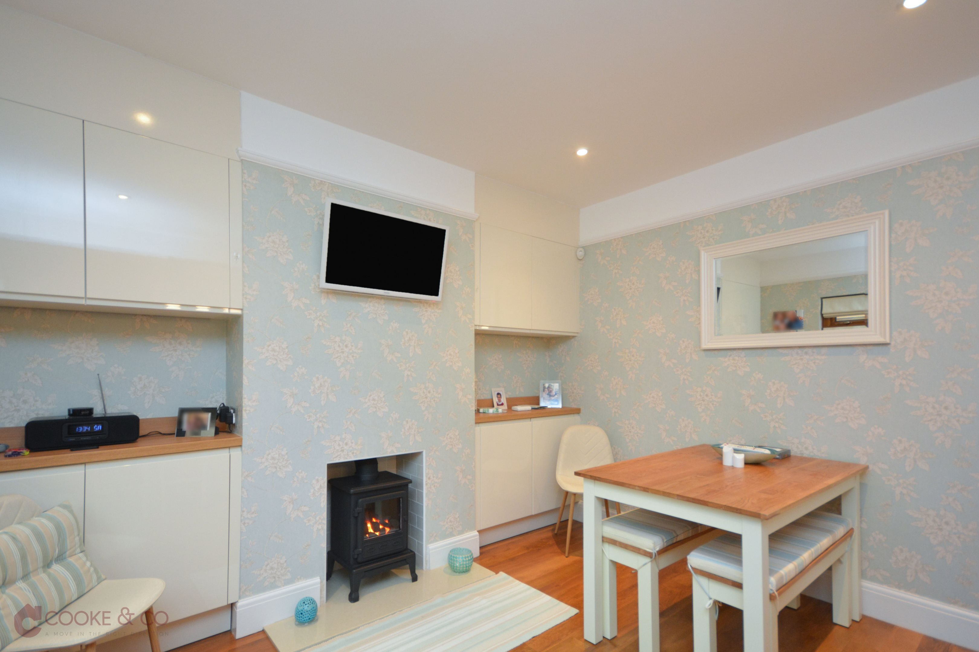 Windows to rear, amtico flooring, double NEFF integrated oven, integrated fridge freezer, integrated dish washer, tiled splashbacks, power points, radiator, power points, breakfast bar area, gas burner stove, skirting, picture rails