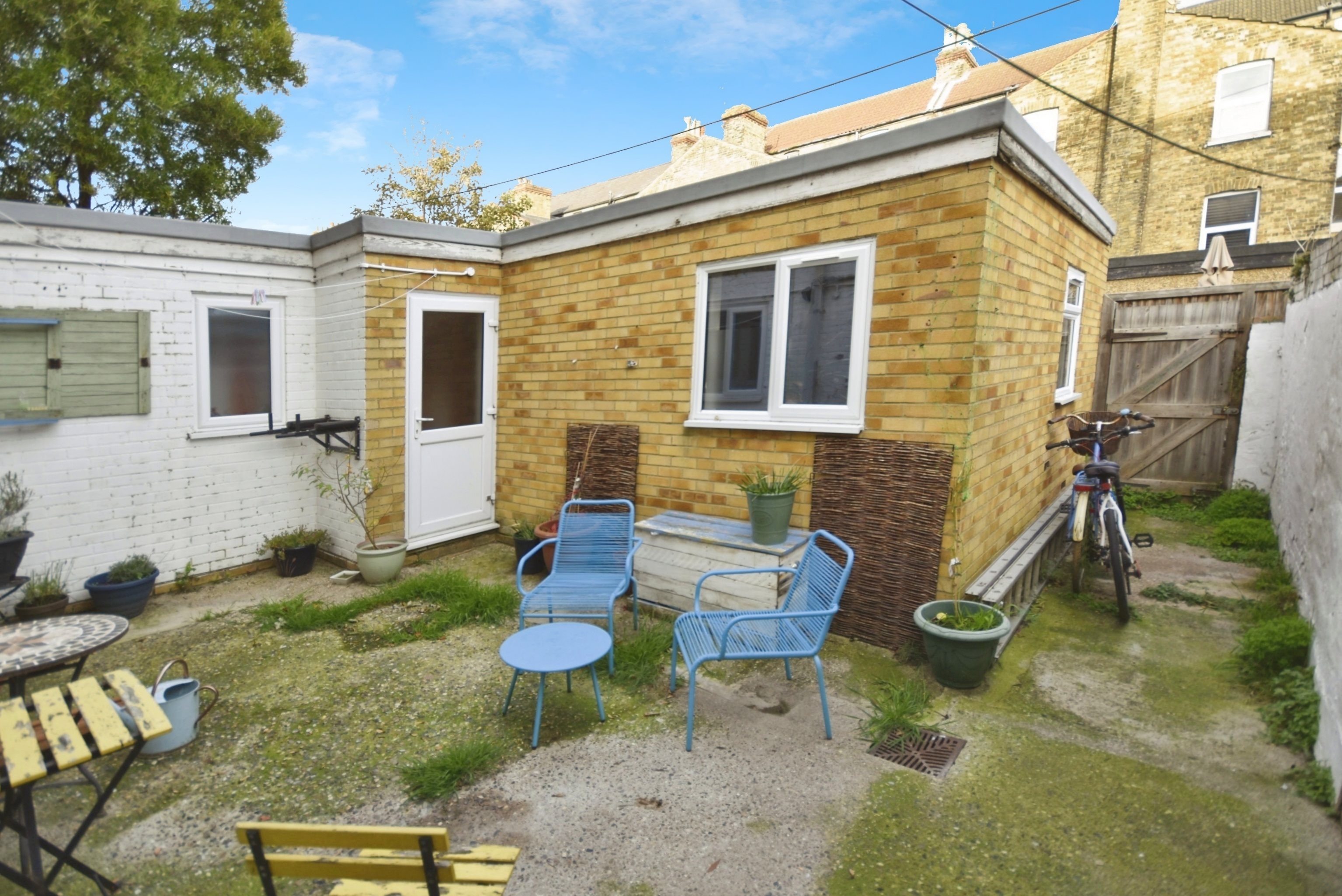 The stylish galley kitchen has been completely refitted with blue cabinetry and solid wood worktops, offering both charm and practicality. The spacious double bedroom opens directly onto a private courtyard garden an enclosed, tranquil retreat ideal for morning coffee or evening relaxation, which also leads to a friendly shared area, enjoyed by just two flats. A pretty evergreen front garden enhances the kerb appeal, while the well-kept bathroom retains its traditional layout, offering scope for personalisation.