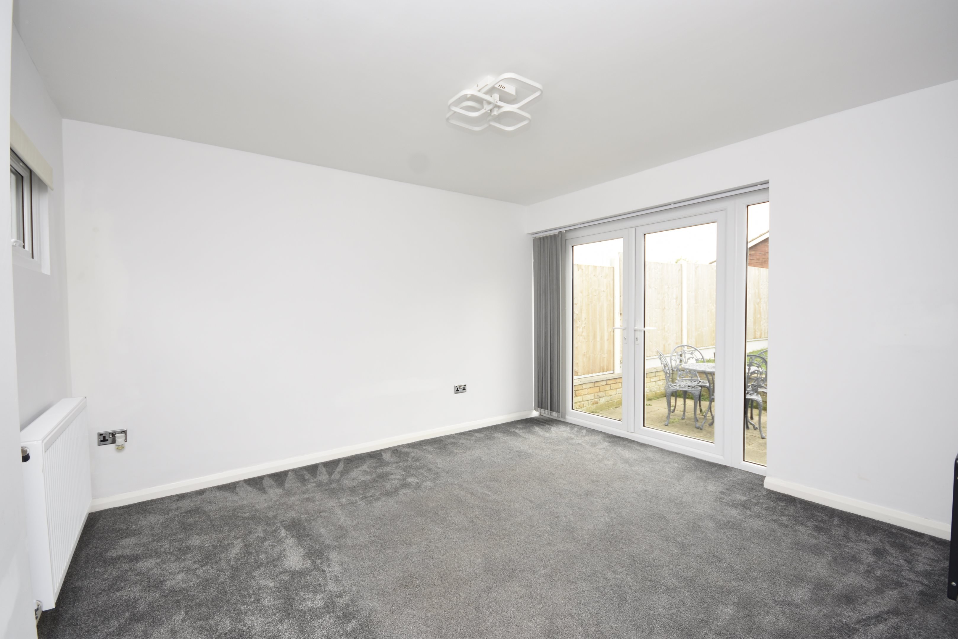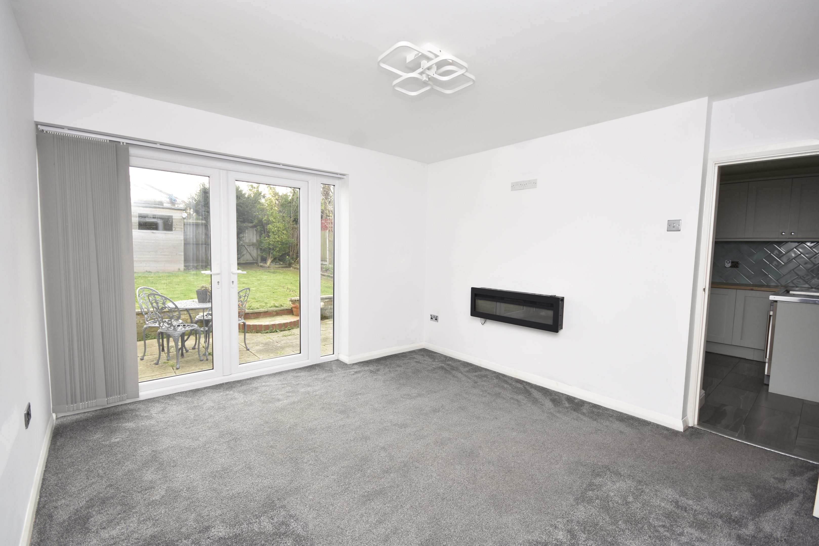 Entrance PorchVia double glazed front door. Power point.HallwayRadiator. Power points. Cupboard housing fuse box and electric meter. Boxing in housing gas meter. Under floor heating. Loft hatch. Open to..Kitchen/Diner21'9 x 12'6 narr to 8'8 (6.63m x 3.81m narr to 2.64m)Range of wall and base units with work surface over. Sink with inset drainer and instant hot water tap. Space for washing machine. Slimline dishwasher. Slimline wine fridge. Induction hob with extractor over. Integral high oven. Integral high microwave oven. Double glazed window to rear. Double glazed door to garden. Radiator. Power points. Wall mounted combi boiler. Under floor heating. French doors to side patio.Lounge12'4 x 11'7 (3.76m x 3.53m)Double glazed French doors to garden. Power points with USB points. Electric wall mounted fire place. Radiator.Bedroom One14'1 x 9'8 (4.29m x 2.95m)Double glazed window to rear. Power points. Radiator.Bedroom Two9'2 x 8'3 (2.79m x 2.51m)Shower Room6'4 x 5'5 (1.93m x 1.65m)Double glazed window to front. Large wall in shower with mains shower. Low level WC with hidden cistern. Wash hand basin inset into vanity unit. Heated towel rail.Side Courtyard13'4 x 9'9 (4.06m x 2.97m)Rear GardenPatio area. Laid to lawn. Gated rear access. Garden shed.Large Front GardenMainly Laid to Lawn. Shingled area.