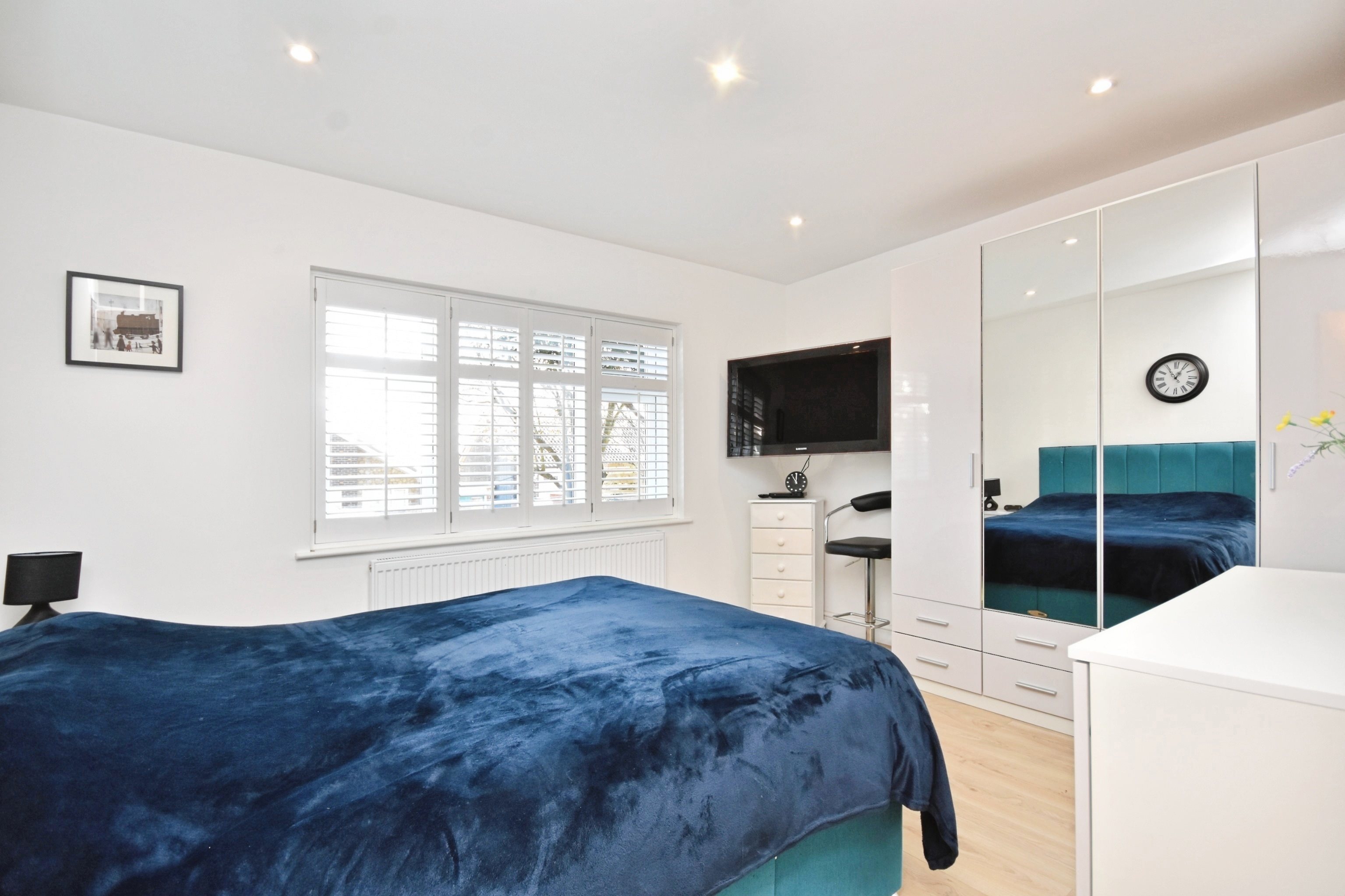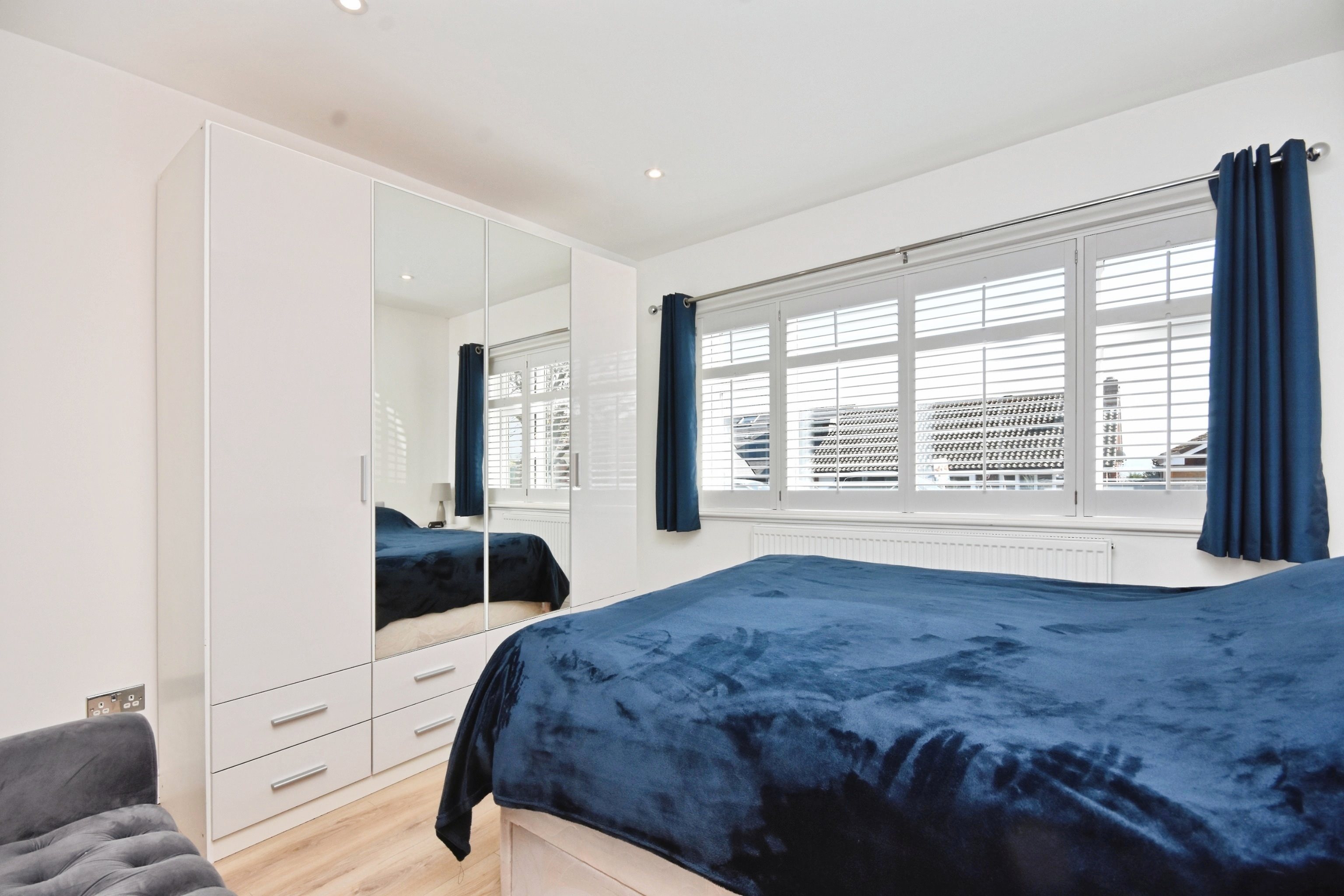 Double glazed windows to front with shutters, laminate flooring, radiator, power points, spot lighting.