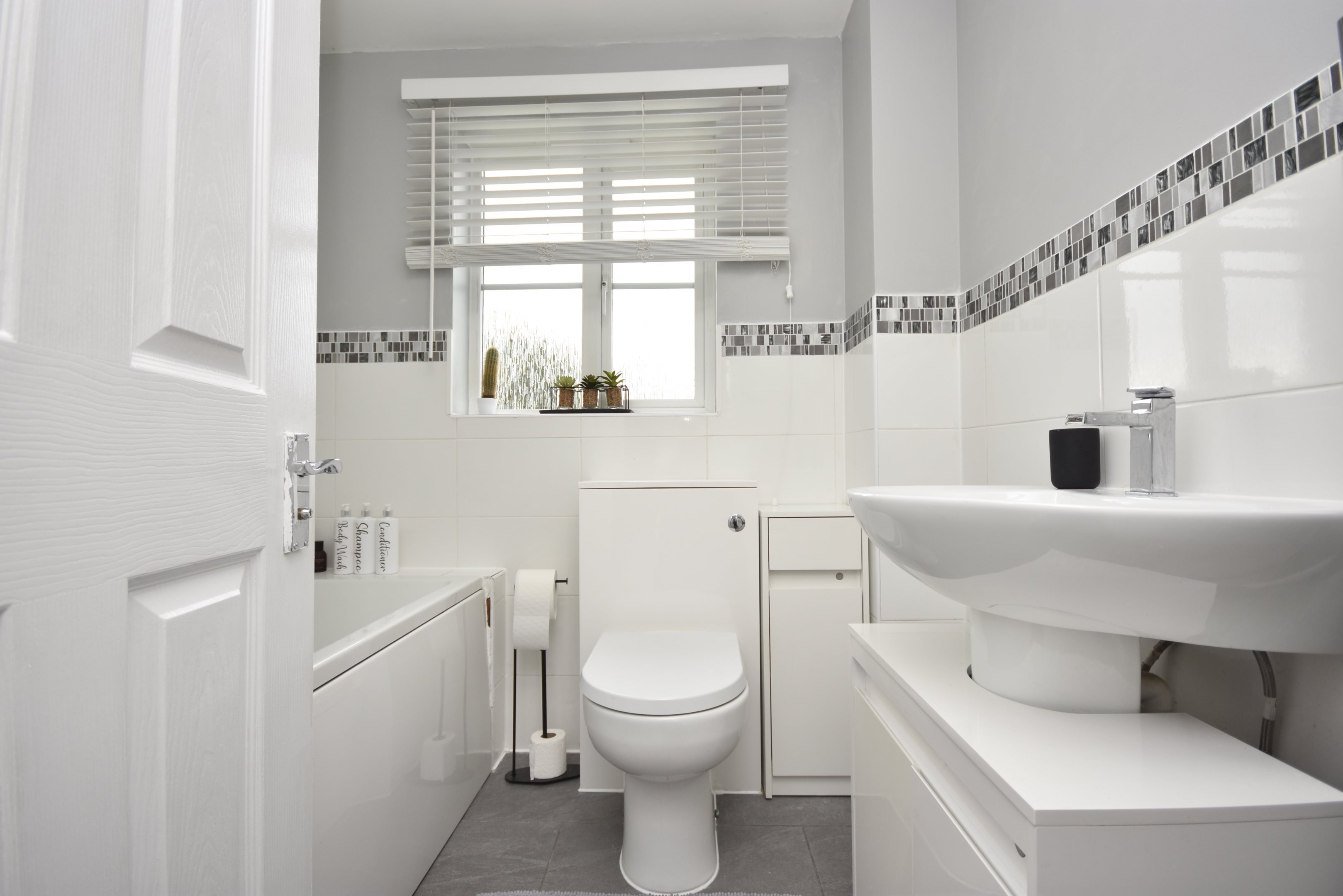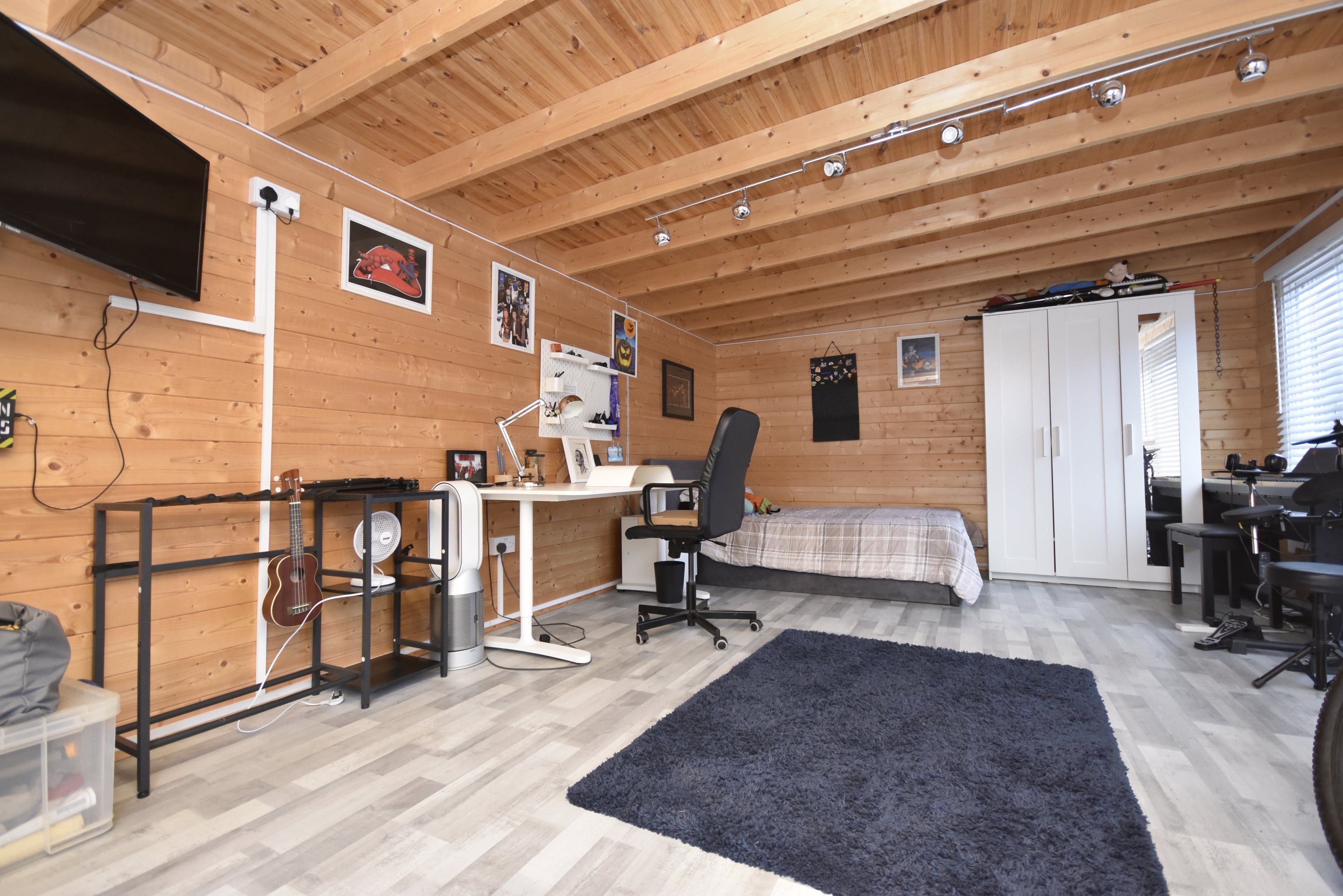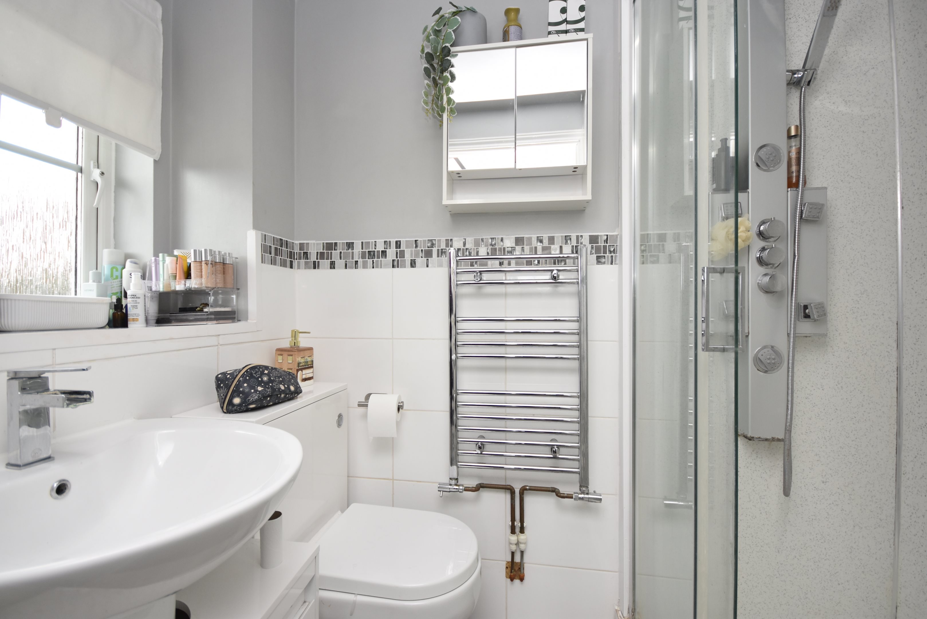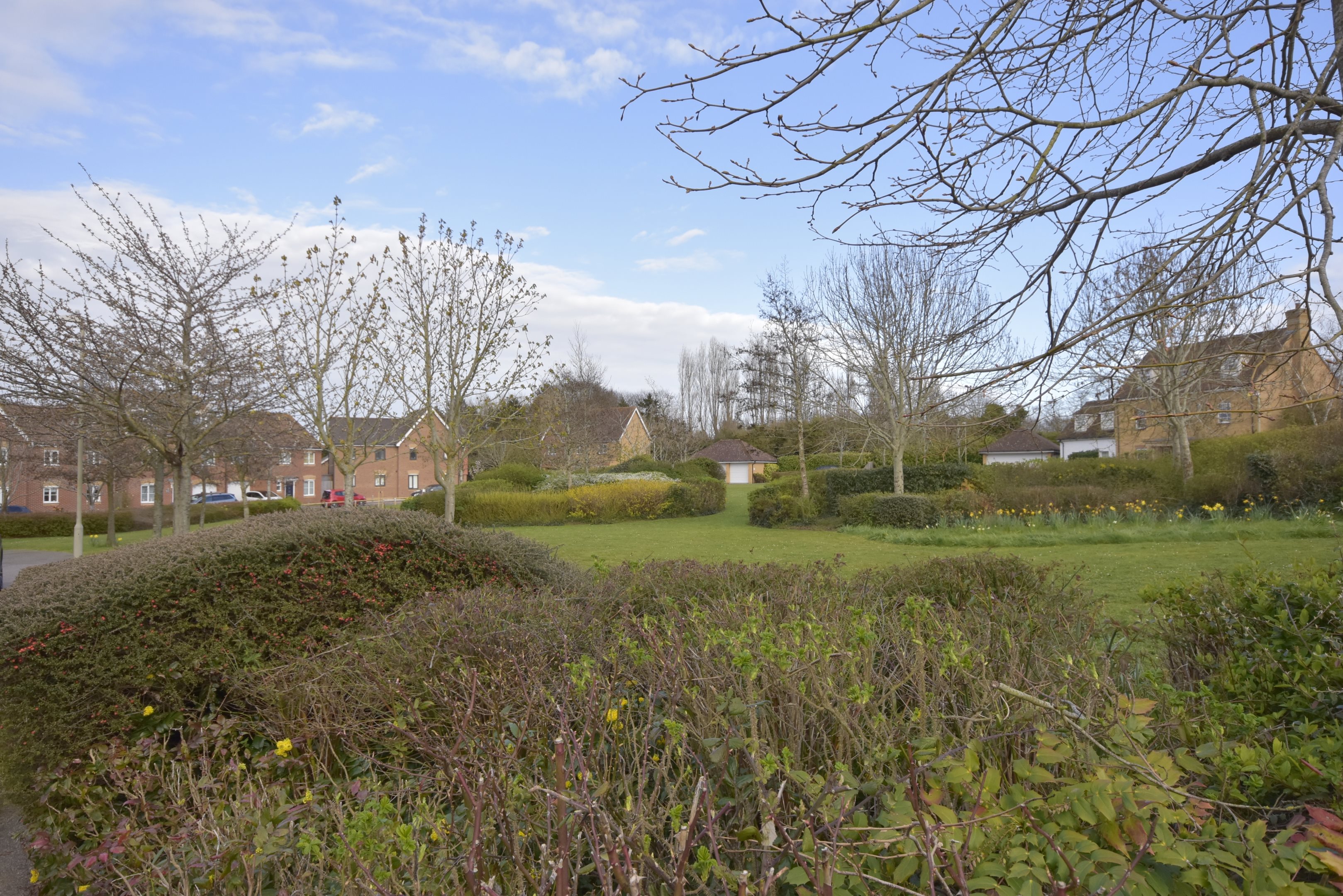 Entrance UPVC composite door into. Hallway Radiator. Stairs leading to first floor. Doors to. Cloakroom 5'7 x 2'9 (1.7m x 0.84m) Low level WC. Wash hand basin. Radiator. Double glazed frosted window to front. Lounge 14'6 x 13'3 (4.42m x 4.04m) Double glazed window to front. Radiator. Power points. Understairs storage cupboard. Kitchen / Diner 16'5 x 10'1 (5m x 3.07m) Matching wall and base units with complementary work surface. Inset acrylic sink and drainer with mixer tap and instant boiling hot water tap. Integrated full-length fridge and freezer. Integrated dishwasher. Integrated bins. Integrated washing machine. Space for tumble dryer. Space for cooker with extractor over. Breakfast bar. Radiator. Double glazed window to rear. Double glazed French doors leading to. Conservatory 17' x 10'4 (5.18m x 3.15m) Windows to rear and sides. Power points. Double glazed doors to side leading to the garden. First Floor Landing Access to loft, partially boarded. Cupboard housing boiler (approximately five years old). Doors to. Bedroom 11'7 x 10'4 (3.53m x 3.15m) Double glazed window to rear. Radiator. Power points. Door to. En-Suite 6'2 x 3'8 (1.88m x 1.12m) Shower cubicle with mains rainfall shower over. Low-level WC. Hand basin. Heated towel rail. Extractor fan. Double glazed frosted window to side. Bedroom 9'5’ x 9'2 (2.87m’ x 2.79m) Double glazed window to rear. Radiator. Power points. Bedroom 9'4 x 6'5 (2.84m x 1.96m) Double glazed window to front. Power points. Radiator. Bathroom 6'6 x 5'9 (1.98m x 1.75m) Panelled bath with shower. Low level WC. Wash hand basin. Heated towel rail. Extractor fan. Double glazed frosted window to rear. Cabin 19'5 x 13'2 (5.92m x 4.01m) Power points. Double glazed windows to side. French doors to front and side. Wi-Fi. Rear Garden Mainly laid to law. Patio area. Rear access. Leading to. Parking Hard standing offering residents parking. Communal Front Garden Mainly laid to lawn. Estate Charge The sellers have advised that there is an estate charge of approximately £20-£30 PCM.