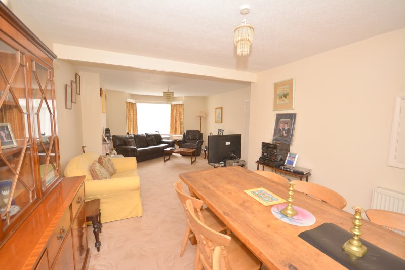 Entrance PorchEntrance via wooden door. Single glazed windows to front and side.HallwayRadiator. Single glazed window to front under stairs. Storage cupboard. Power Points. Stairs to 1st floor. Doors to all rooms.Downstairs CloakroomSingle glazed window to front. Wash hand basin. Low level WC.Kitchen11'8 x 9'9 (3.56m x 2.97m)Range of wall and base units with work surfaces over. Built in oven with gas, hob and extractor over. 1 ½ bowl sink drainer. Space for washing machine tumble dryer and slimline dishwasher. Space for fridge freezer. Serving hatch to dining room. Double glazed window to rear. Door to side leading to garden.Lounge/Diner26'4 x 13'5 narr to 10'9 (8.03m x 4.09m narr to 3.28m)Double glazed bay window to front. Double glazed patio doors to garden to rear. Radiator x two.LandingLoft hatch. Power Points. Double glaze window to side. Cupboard.Bedroom One12'8 x 11'7 (to wardrobes) (3.86m x 3.53m (to wardrobes))Double glazed window to front. Radiator. Power points. Built in wardrobes.Bedroom Two13'1 x 10'8 (3.99m x 3.25m)Double glazed window to rear. Power points. Radiator. Built in cupboard.Bedroom Three9'9 x 9'2 (2.97m x 2.79m)Double glazed to rear. Radiator. Built in cupboard. Power points.Bathroom9'2 x 6'4 (2.79m x 1.93m)Double glazed to front. Wash band basin. Low level WC. Bath. Radiator.Rear GardenMainly laid to lawn. Flower and shrub borders. Paved area. Selection of trees.Garage to SideUp and Over DoorFront GardenWrought iron gates with drive providing off street parking for several cars.