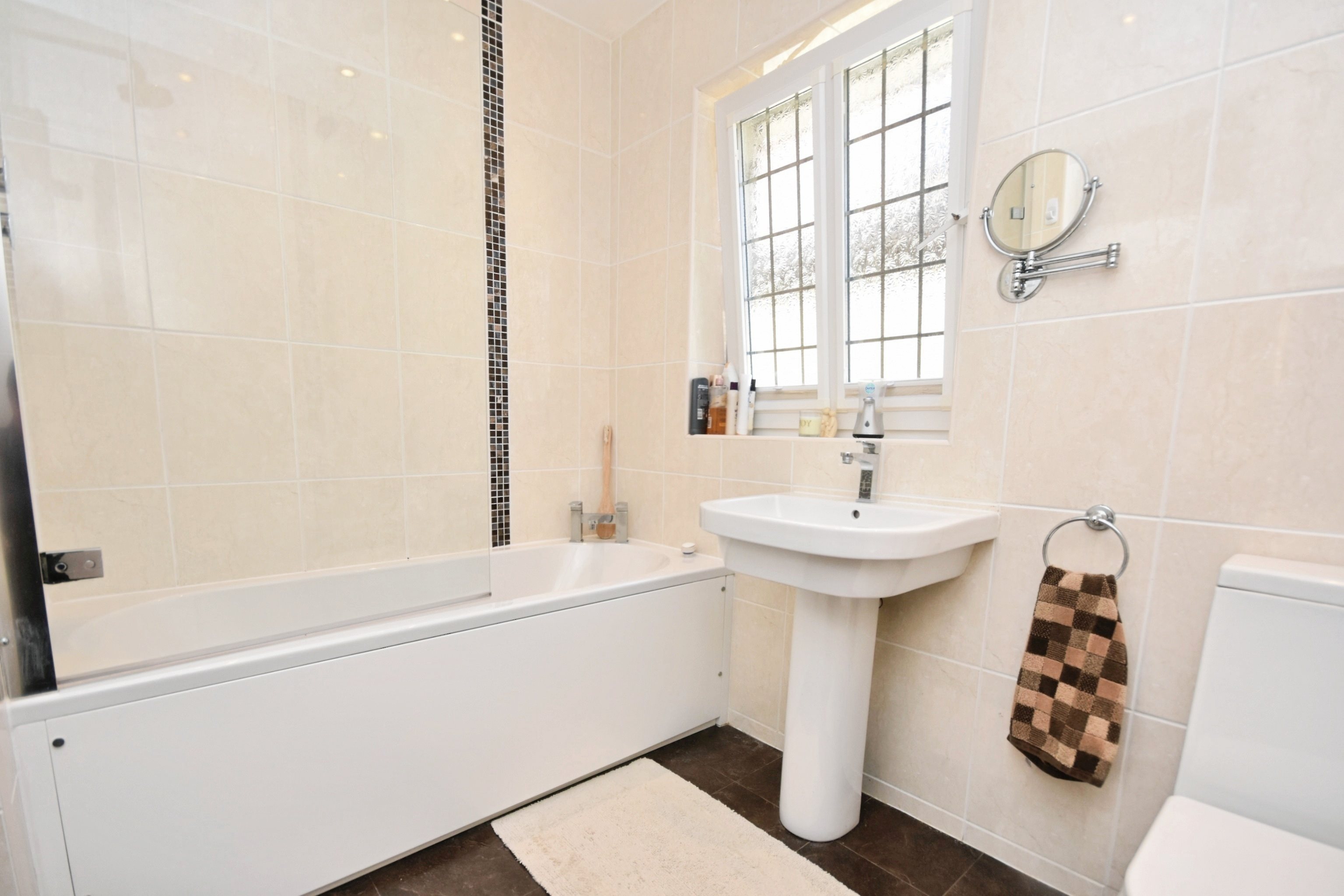 EntranceFront door into;HallwayBuilt in storage. Stairs to first floor. Window to side and front. Access to;Living Room12'09 x 15'00 (3.89m x 4.57m)Window to front. Fireplace. Power points. Radiator.Dining Room11'11 x 17'01 (3.63m x 5.21m)Window to side. French doors to rear into garden. Power points.Kitchen16'05 x 10'11 (5m x 3.33m)Fully fitted kitchen with quartz counter tops. Window to side and rear. Access to;Utility Room6'07 x 13'11 (2.01m x 4.24m)Window to front and side. Door into rear garden. Space for washer and dryer. Access to;W/CLow level W/C. Sink unit.Stairs to First FloorFirst Floor LandingStorage Cupboards. Loft access. Access to;Bedroom One12'05 x 15'02 (3.78m x 4.62m)Built in storage. Window to front. Sink unit. Power points. RadiatorBedroom Two9'00 x 8'04 (2.74m x 2.54m)Window to front. Storage area. Radiator. Power points.Bedroom Three16'06 x 12'02 (5.03m x 3.71m)Window to side and rear. Radiator. Power points. Sink unit.Family Bathroom7'05 x 8'03 (2.26m x 2.51m)Bath unit with shower overhead. Sink unit. Frosted window to side. Low level W/C. Heated towel rail.Bedroom Four10'00 x 8'05 (3.05m x 2.57m)Window to rear. Power points. Radiator.Garage15'05 x 8'06 (4.7m x 2.59m)Power. Storage. Door to side. Up and over door to front.Rear GardenPart laid to lawn. Part paved. Part decked. Fish pond. Side access to;DrivewayMainly paved. Parking for ample vehicles.