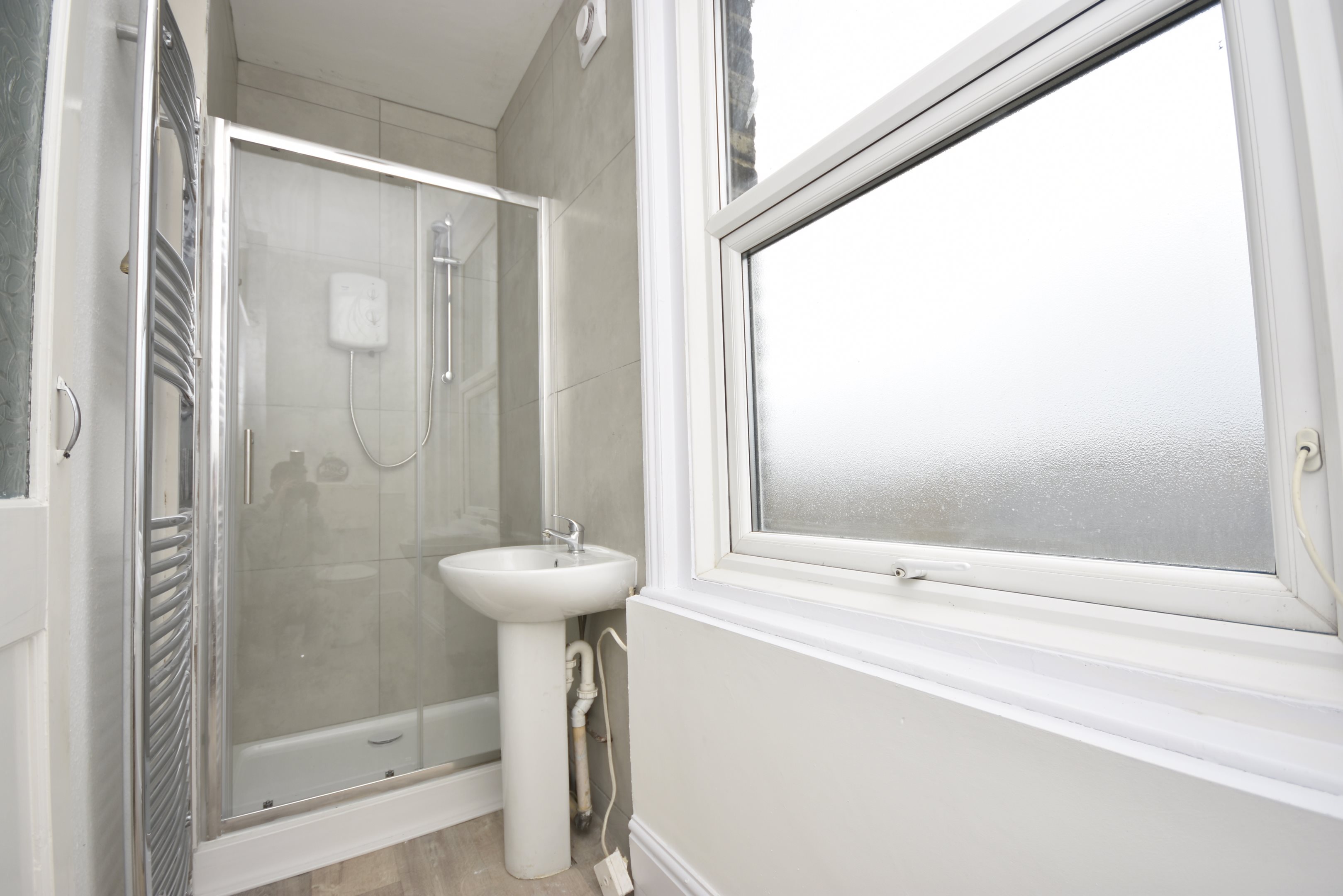 EntranceVia communal door into communal hallway. Stairs leading to first-floor flat entrance.HallwayRadiator. Wall-mounted fuse box. Access to loft. Doors to:Lounge10'5 x 8'4 (3.18m x 2.54m)Radiator. Power point. Single-glazed frosted glass to rear. Door to:Shower Room11'7’ x 3'4 (3.53m’ x 1.02m)Shower cubicle with electric shower over. Pedestal wash hand basin. Low-level WC. Heated towel rail. Double-glazed, partially frosted window to rear.Bedroom15'4 x 11'2 (4.67m x 3.4m)Double-glazed bay window to front. Radiator. Power point.Kitchen9'1 x 5'9 (2.77m x 1.75m)Base units with complementary worksurface. Inset stainless-steel sink unit with drainer and mixer tap. Oven. Wall-mounted combination boiler. Power point. Double-glazed window to front.Leasehold InformationWe have been advised that the property will be sold with a share of freehold with new lease assigned.