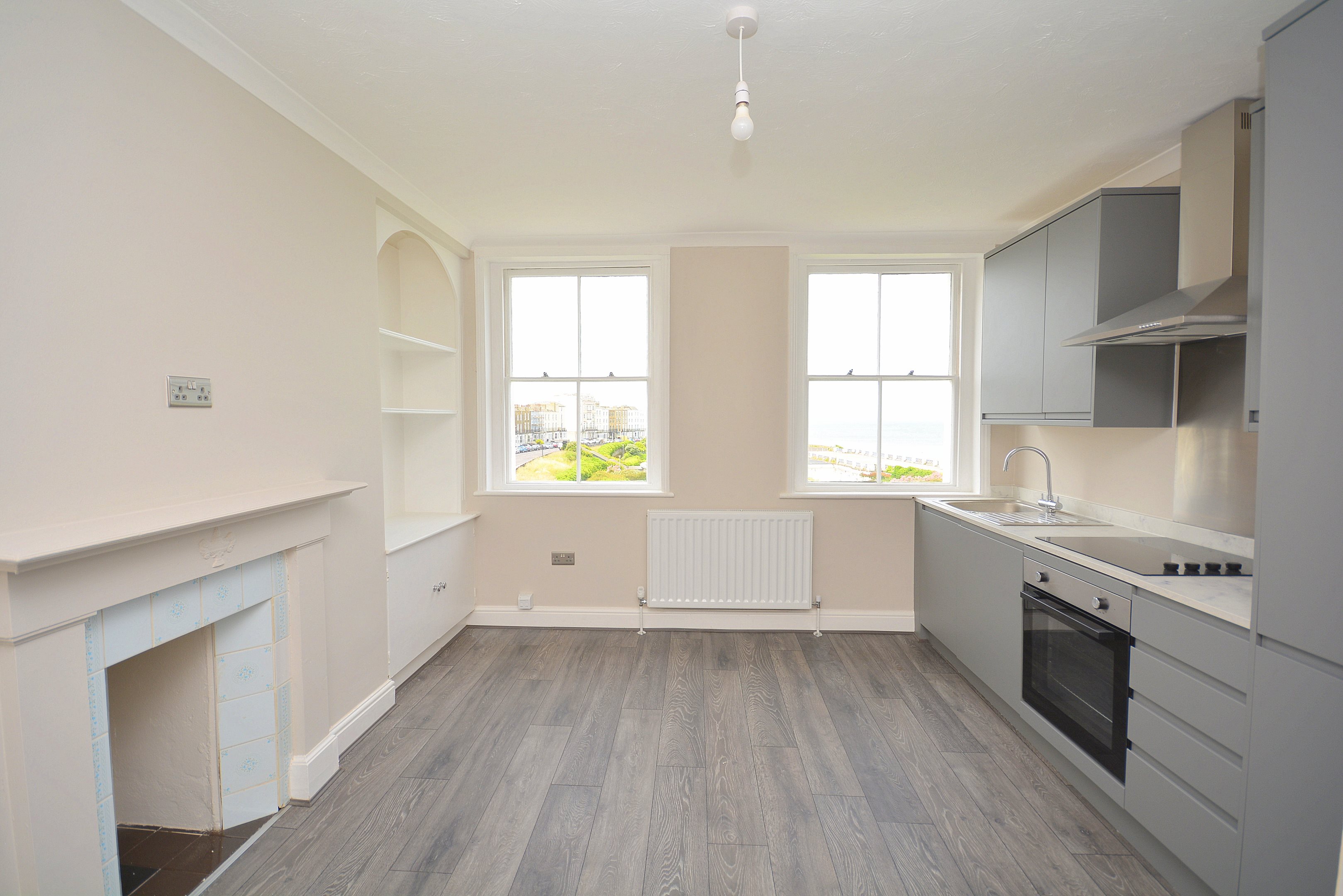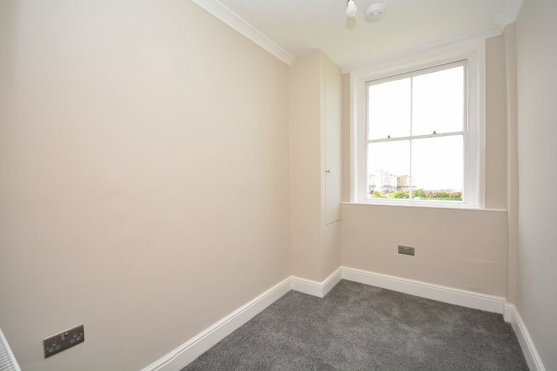 Entrance Via communal front door with stairs to second floor and door to... Hall LED screen entry system. Wooden doors to all rooms. Radiator. Meter cupboard. Lounge / Kitchen 13'6 x 12'3 (to alcove) (4.11m x 3.73m (to alcove)) Two sash windows with direct sea views. Radiator. Power points. Feature decorative fireplace with tiled surround. Alcove with shelving. Coved ceiling. Kitchen area comprising wall and base units with complementary worksurfaces. Electric oven, hob and extractor. Integrated fridge / freezer. Laminate flooring. Bedroom One 11'3 x 8'7 (3.43m x 2.62m) Sash window to rear with seaviews. Radiator. Power points. Fitted wardrobe. Coved ceiling. Bedroom Two 9'7 x 6'0 (2.92m x 1.83m) Sash window to front. Radiator. Power points. Coved ceiling. Bathroom Suite comprising panelled bath with shower attachment and screen, pedestal wash hand basin and low-level WC. Extractor fan. Coved ceiling. Tiled walls. Ladder radiator. Lease Information We have been informed by the vendor that he property will be sold with a new lease of 125 years. We have been advised by the vendor that ground rent is peppercorn and the annual service charges are between £500pa-£800pa. The vendor also advises that pets and airbnb are permitted under the terms of the lease.