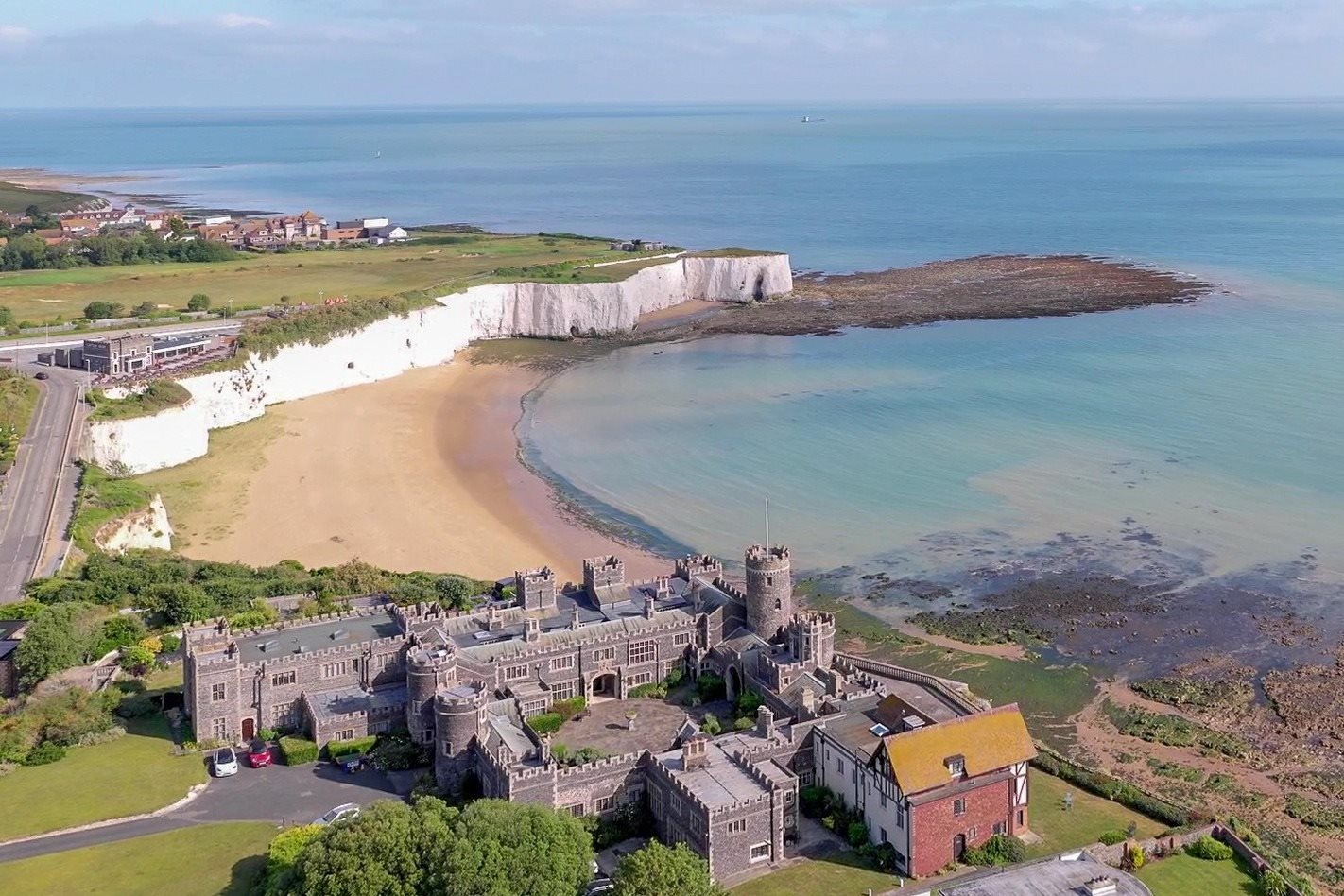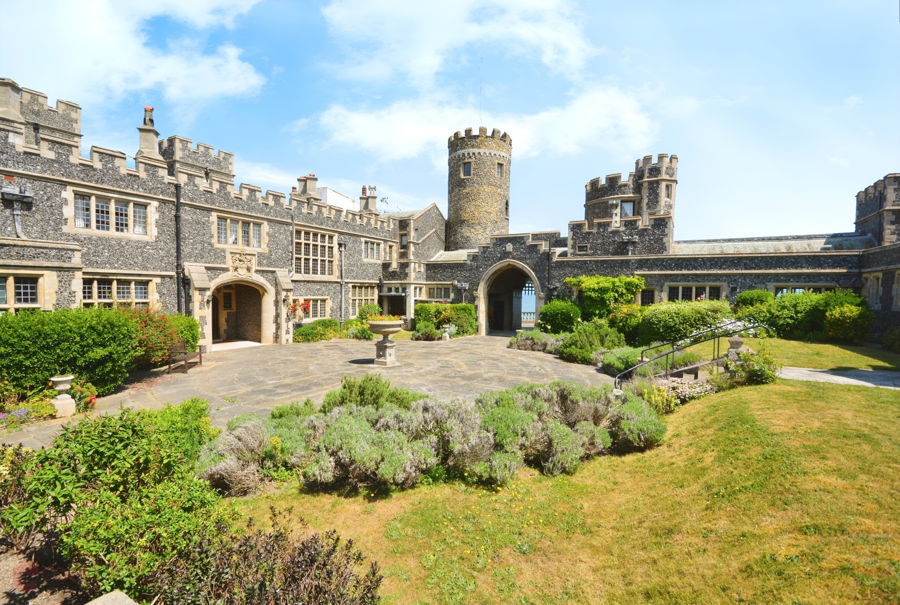 Cooke & Co are delighted to present this truly unique two/three bedroom apartment set within the iconic Kingsgate Castle, perched majestically above the clifftops of Kingsgate Bay in Broadstairs, Kent. Originally built in the 1760s by Lord Holland as a stable block for his country estate, Holland House, Kingsgate Castle later became a hotel before its transformation in the 1950s into a collection of private luxury residences. Today, it remains one of Broadstairs' most prestigious and recognisable landmarks. This exceptional apartment offers a rare opportunity to own a home rich in history and charm, with the two double bedrooms uniquely located within one of the castle's original towers. Inside, the property is bright, modern, and well-presented throughout, featuring a generous lounge ideal for relaxing or entertaining, a separate fitted kitchen, and a contemporary family bathroom. A separate W/C serves the tower bedrooms, offering added convenience. Set within the castle's impressive grounds, residents enjoy access to beautifully maintained communal gardens and extensive private land. From the rear courtyard, the sea views across Kingsgate Bay framed by the castle's grand arched gates are truly breathtaking. Offering a unique blend of heritage, elegance, and coastal living, this is a rare chance to own a part of local history in a setting of timeless beauty.