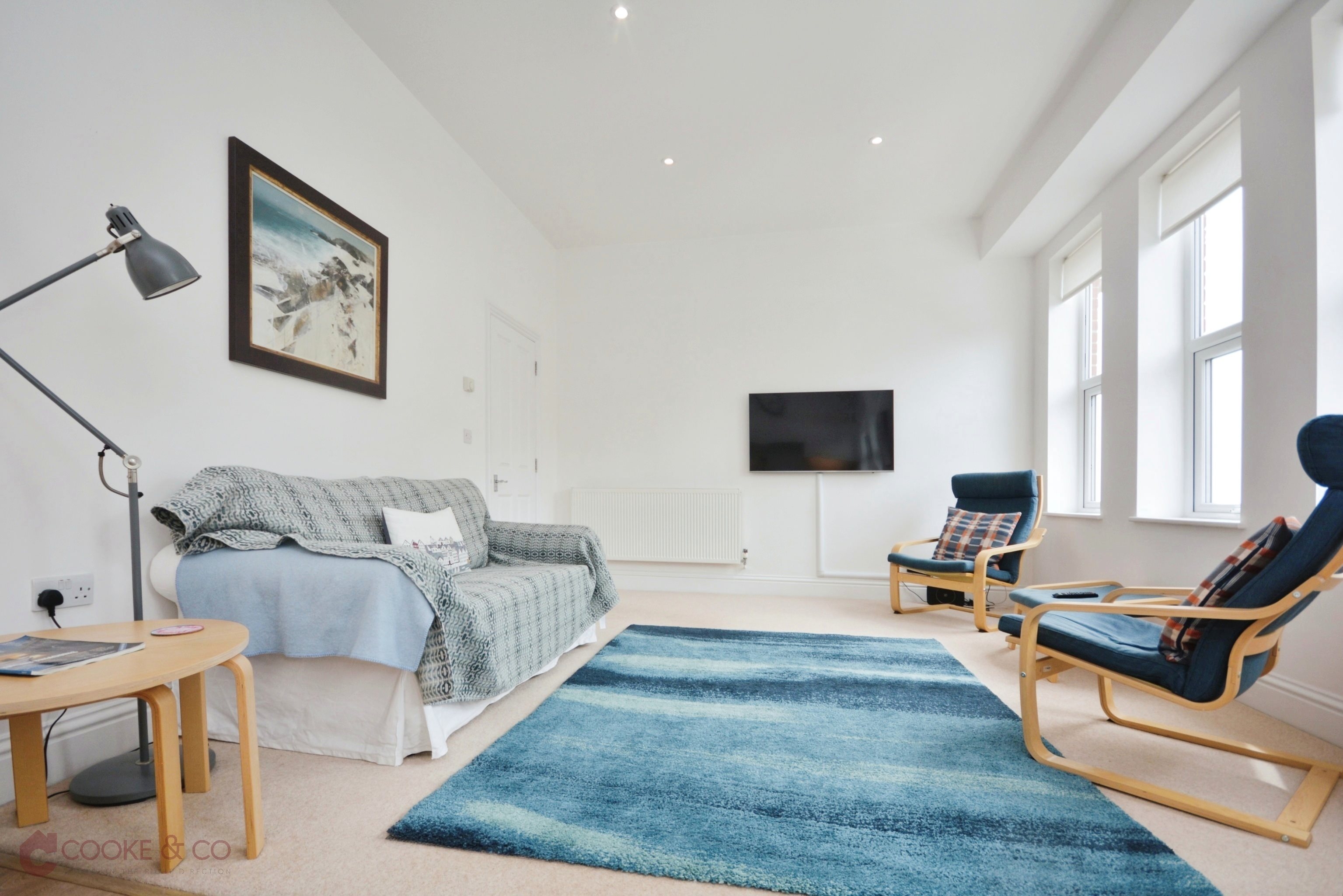 EntrancePrivate front door into:HallwayLobby area with stairs leading to hallway and a double glazed window to side at the top of the stairwell. Radiator, ceiling spotlights, power points and doors to:Primary Bedroom11'03 x 10'11 (3.43m x 3.33m)Two double glazed windows to side. Radiator, ceiling spotlights, telephone, TV and power points. Door to:En-Suite Shower Room9'0 x 5'03 (2.74m x 1.6m)Fully tiled floors and walls with a modern low-level W/C featuring a concealed cistern. Panel bath with dark wood panels and a chrome mixer tap with shower attachment along with an adjustable glass shower screen. Wall hung vanity sink unit, heated towel rail and ceiling spotlights.Utility Room5'04 x 5'03 (1.63m x 1.6m)Boiler which was replaced in 2024. Space and plumbing for washing machine and tumble dryer. Velux style skylight. Wooden flooring. Skirting.Kitchen / Living Area24'5 x 11'11 (7.44m x 3.63m)Spectacular, bright open plan living area with sleek modern kitchen featuring a range of white gloss wall and base units with contrasting black worktops. Included are a variety of high quality integrated appliances such as the fridge, freezer and dishwasher along with the oven, hob and discreetly designed extractor fan positioned above. Inset stainless steel sink bowl with stainless steel mixer tap and drainer grooves crafted into the worktops. Five double glazed windows to side with radiator, ceiling spotlights, TV and power points throughout.Bedroom Two15'1 x 9'0 (4.6m x 2.74m)Double glazed window to rear and a radiator to side. Ceiling spotlights, telephone, TV and power points. Loft access.Family Shower room6'10 x 5'02 (2.08m x 1.57m)Fully tiled floors and walls with a modern low-level W/C. Step in corner shower unit with sliding door and chrome shower. Double glazed Velux roof window, wall hung vanity sink unit, heated towel rail and ceiling spotlights.Leasehold InformationWe have been advised by the seller that the current lease is a 125 year lease with approximately 112 years remaining. We have also been advised that the current ground rent is £250 per annum due to increase to £500 from 1/7/2037 and the service charge can vary but was approximately £1092.48 in July 2024 and £792.03 in January 2025.Agents NotesThe seller has advised that the current furniture within the flat is also available for sale as a separate negotiation. We have also been advised that the washing machine, tumble dryer, dishwasher and boiler are all around 1 year old.