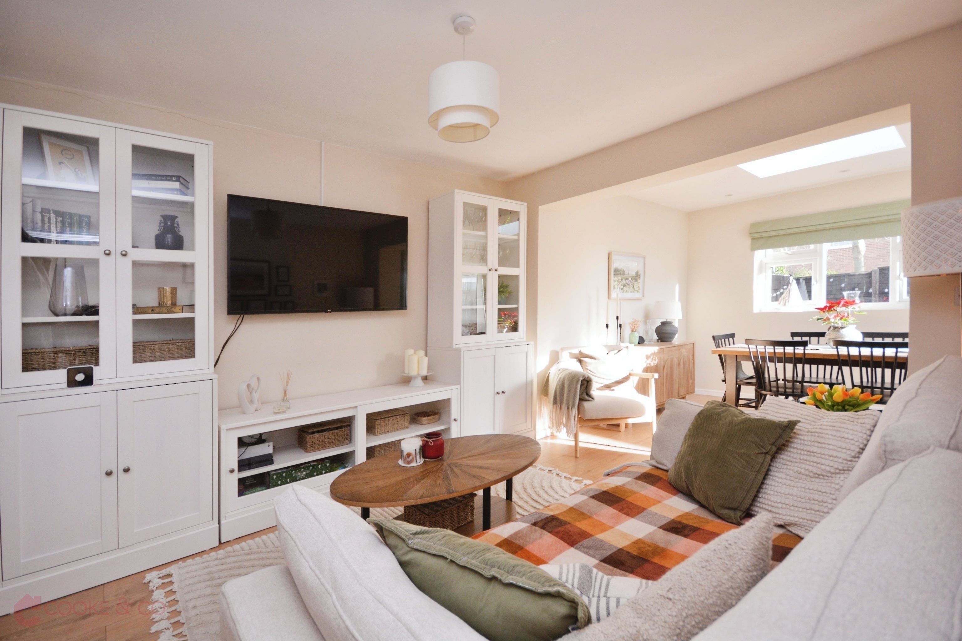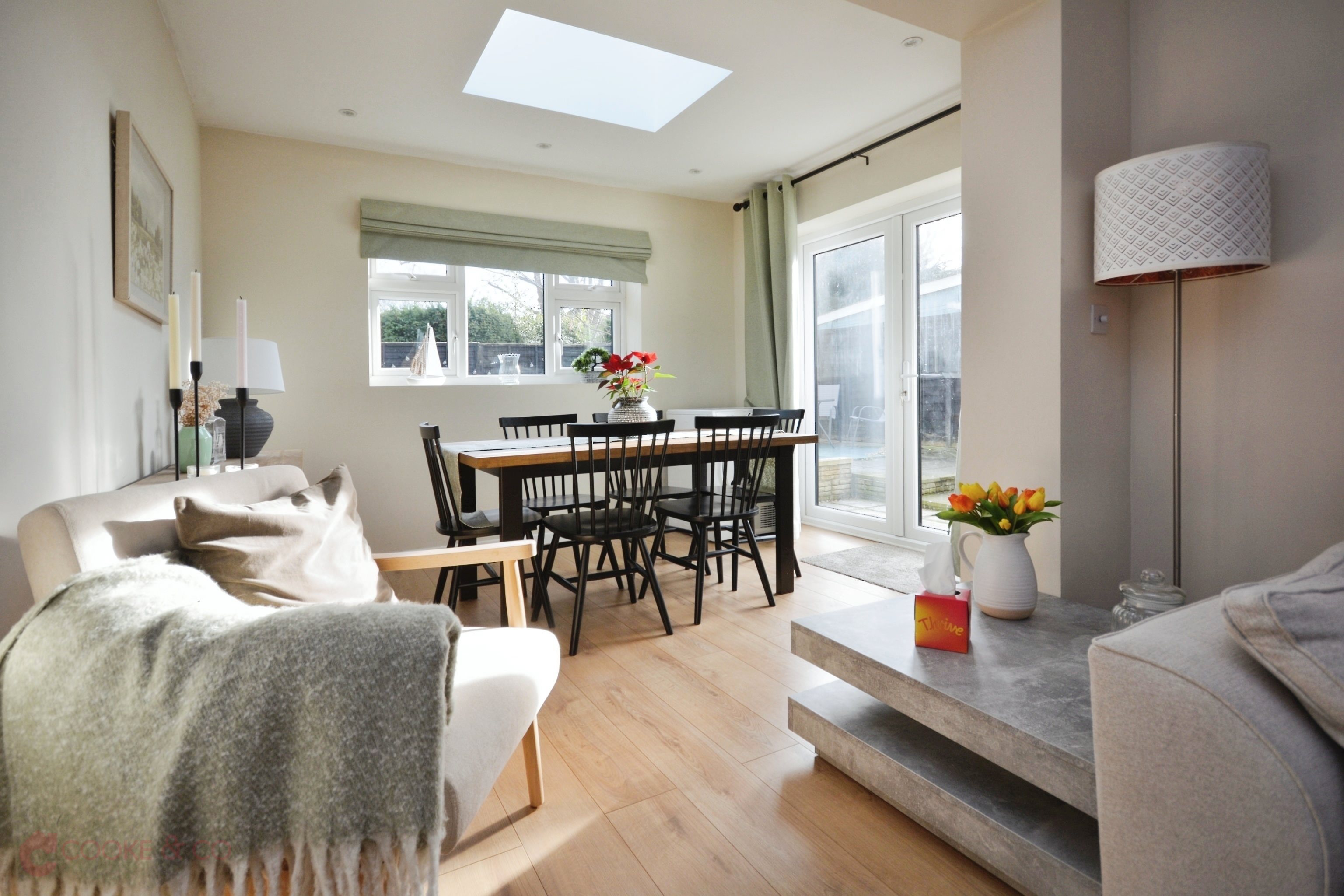 This charming home boasts off-road parking to the front and a beautifully presented, easy-to-maintain sunny rear garden, a delightful spot to relax or entertain outdoors. Inside, you'll find a stunning open-plan lounge/diner, ideal for hosting friends and family. This space is filled with natural light filtering through, thanks to a sky light and french doors that open onto the garden, seamlessly blending indoor and outdoor living. The property features two spacious bedrooms, offering plenty of room for restful nights, and a modern shower room for added convenience.