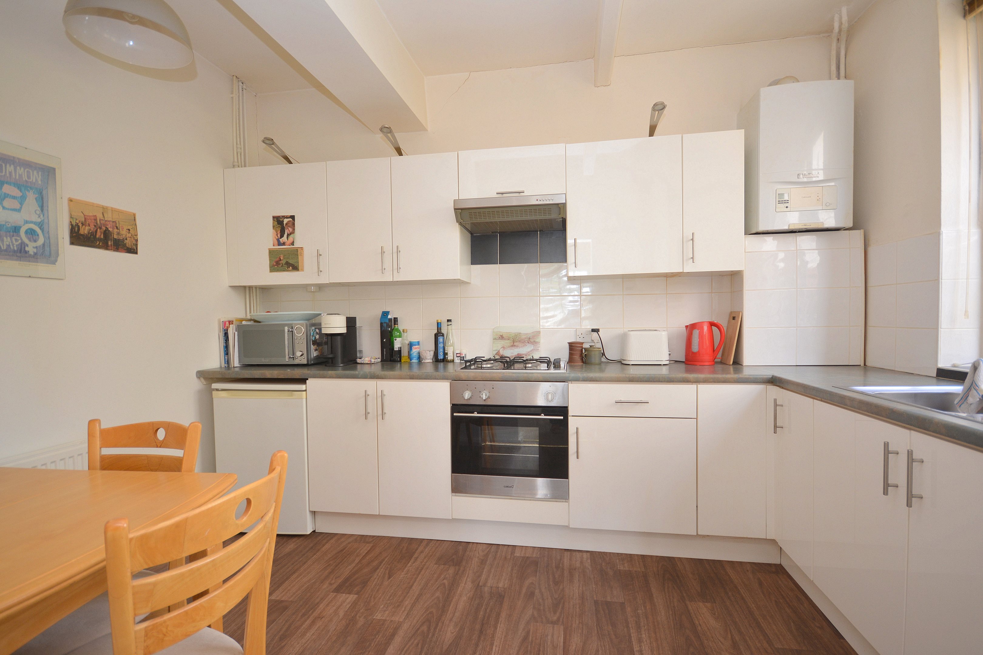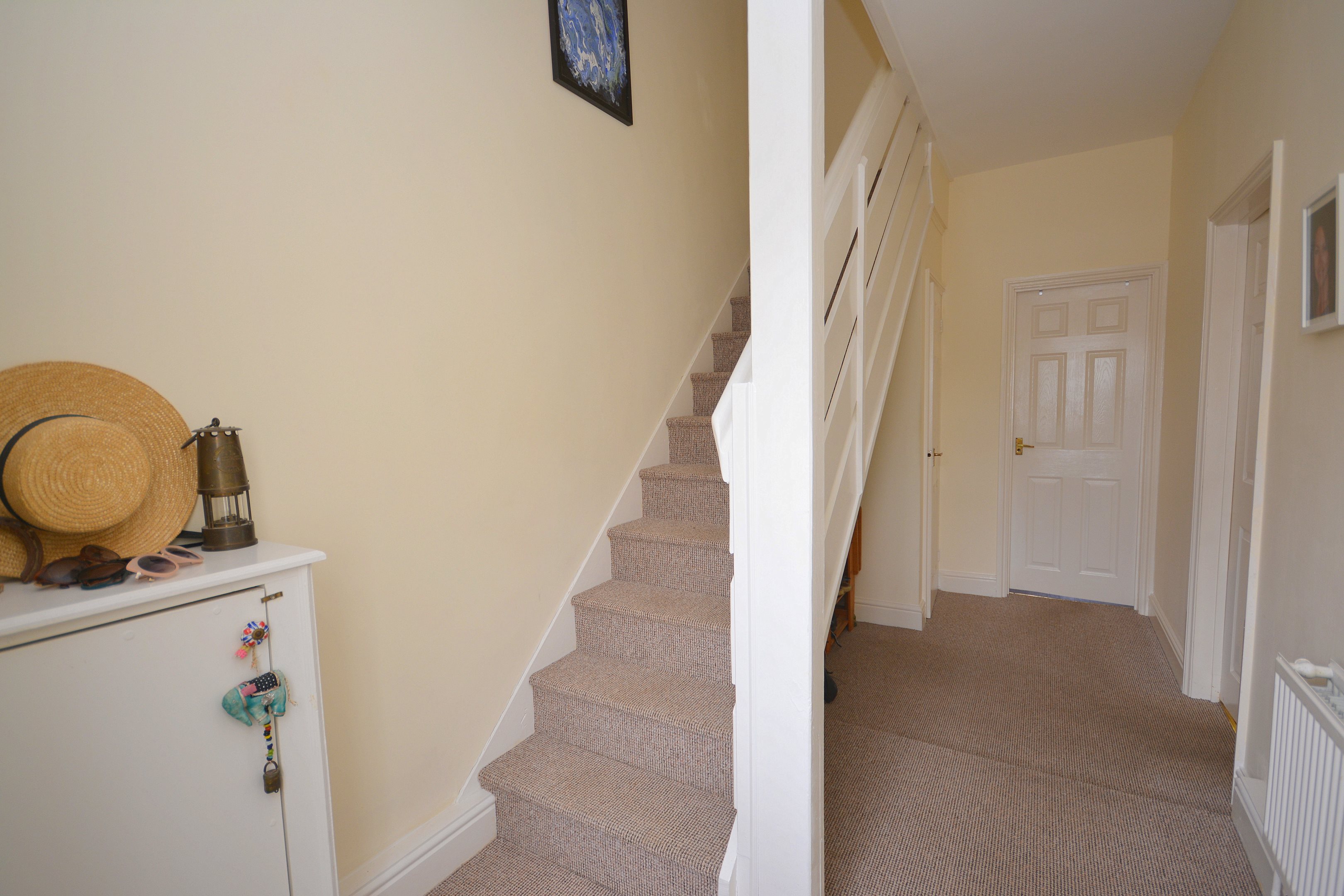 EntranceVia wooden front door intoHallway14'5 x 6'5 (4.39m x 1.96m)Spacious hallway with cupboard housing meters. Wall lights. Storage cupboard. Door to...Lounge14'6 x 11'8 (4.42m x 3.56m)Single glazed wooden windows to front and side. Radiator. Glazed wooden French door into courtyard. Power points. Part panelled walls. Wall lights. Opening through into...Kitchen11'8 x 8'4 (3.56m x 2.54m)Selection of wall and base units with complementary worksurfaces. Electric oven with gas hob and overhead extractor. Single glazed wooden window to side. Wall mounted Vaillant boiler for central heating and hot water. Vinyl flooring. Sink unit with drainer. Space for washing machine and fridge. Space for table and chairs. Radiator. Over cupboard lighting. Vinyl flooring.Bathroom8'5 x 6'6 (2.57m x 1.98m)Single glazed opaque window to rear. Radiator. Suite comprising bathe with overhead shower and screen, pedestal wash hand basin and low-level WC. Extractor fan.Stairs from hall up to first floor landingBedroom One16'4 x 11'9 (4.98m x 3.58m)Double glazed wooden windows to front and side. Radiator. Power point. Cupboard used as wardrobe.Bedroom Two12'2 x 6'3 (3.71m x 1.9m)Double glazed wooden window to side and velux to rear. Eaves storage. Radiator. Cupboard used as wardrobe. Wall light.CloakroomSuite comprising low level WC and wash hand basin. Eaves storage. Vinyl flooring. Extractor fan.CourtyardAccessed via the lounge. Paved making it an ideal spot for table and chairs. Wall enclosed. Wooden gate giving access to the front.ParkingThe property comes with one allocated off street parking space within the development.Agents NotesThe vendor advises that there is an annual charge of £230 per annum for maintenance of the parking grounds and planting areas.