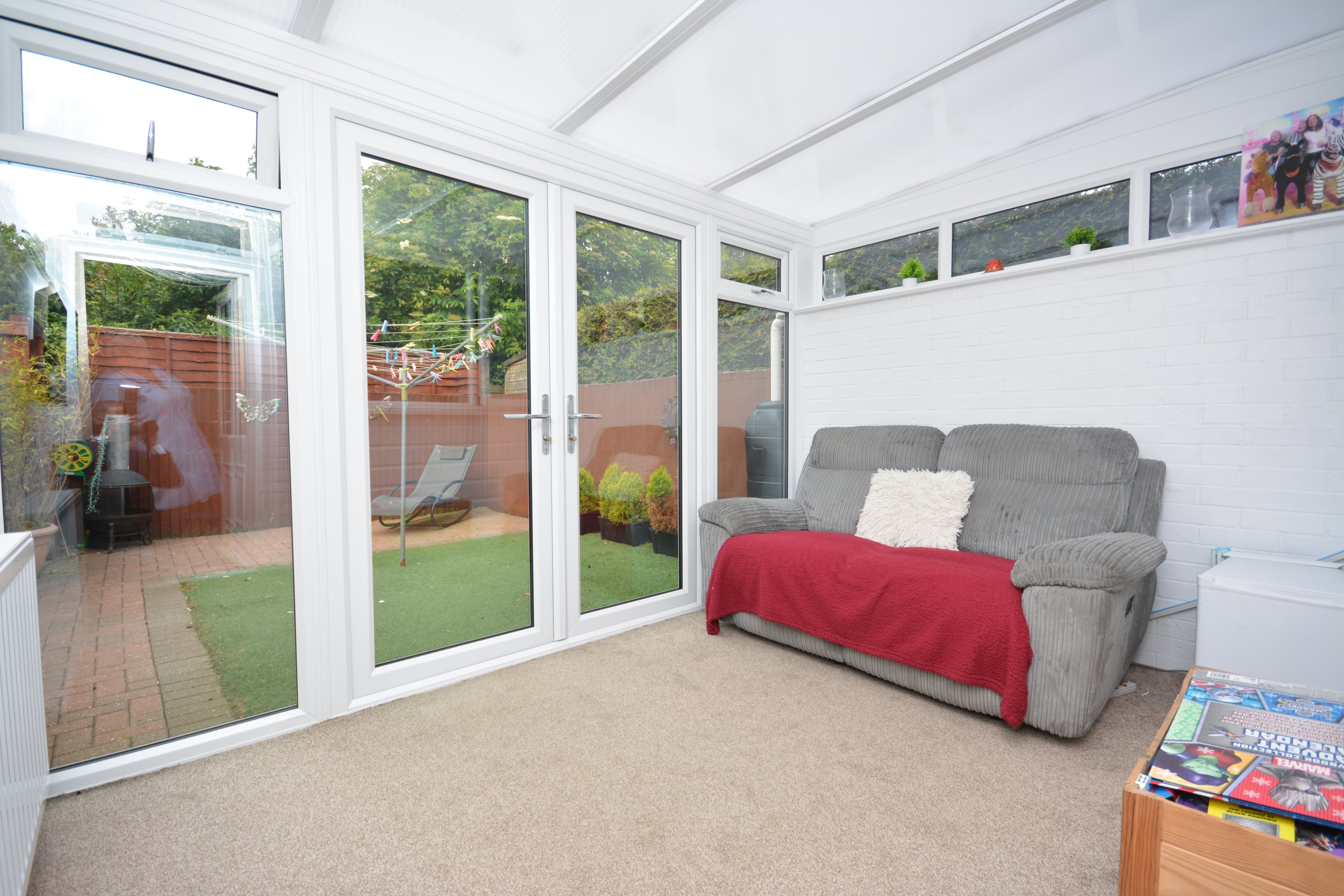 PorchWooden glazed door intoHallwayStairs to first floor. Single glazed door intoLounge14'4 x 9'9 (4.37m x 2.97m)Double glazed window to front. Radiator. Power points. Feature fire place. Under stairs cupboard.KitchenWall and base units with complimentary work surfaces. Inset stainless steel sink unit with mixer tap. Splash back tiles. Space for washing machine. Space for oven. Space for fridge / freezer. Built in pantry. Radiator. Double glazed window to rear. Double glazed frosted door to rear leading to conservatoryConservatory10'4 x 7'5 (3.15m x 2.26m)Double glazed windows to rear and sides. Double glazed patio doors to rear leading to garden. Radiator. Power pointsLandingCupboard housing boiler. Loft hatch with Ladder. The vendor advises the loft is boarded and has lighting.Bedroom One13'0 x 10'7 (3.96m x 3.23m)Double glazed window to front. Radiator. Power points. Walk in wardrobe.Bedroom Two10'1 x 7'3 (3.07m x 2.21m)Double glazed window to rear. Radiator. Power points.Bathroom7'0 x 5'9 (2.13m x 1.75m)Panelled bath with mixer tap. Mains shower. Low level WC. Wash hand basin. Heated towel rail. Double glazed frosted window to rear.Front & Rear GardensGarage En-Bloc