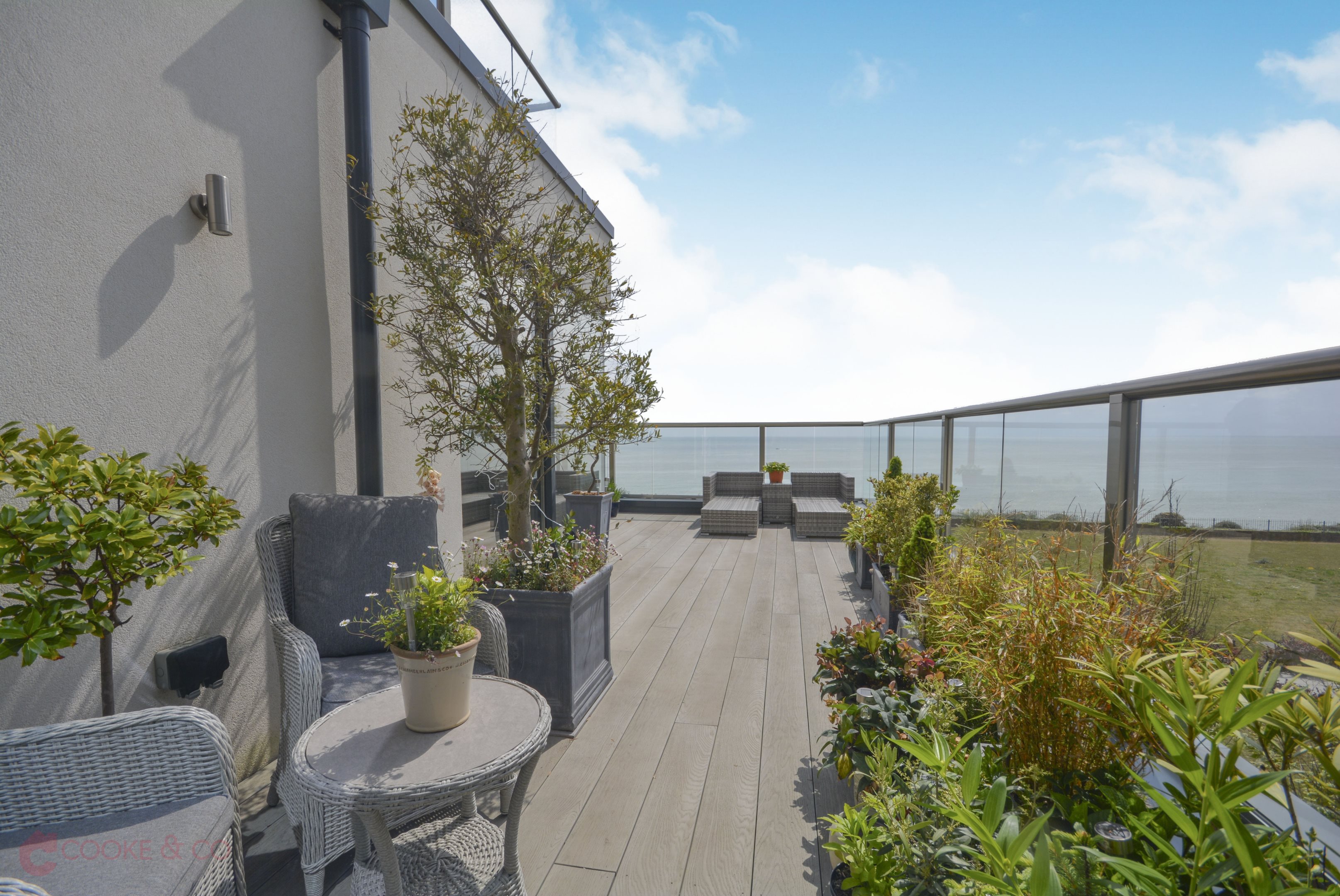 Panoramic sea views of North Foreland beach. Ideal for a seating area to unwind with friends and family.