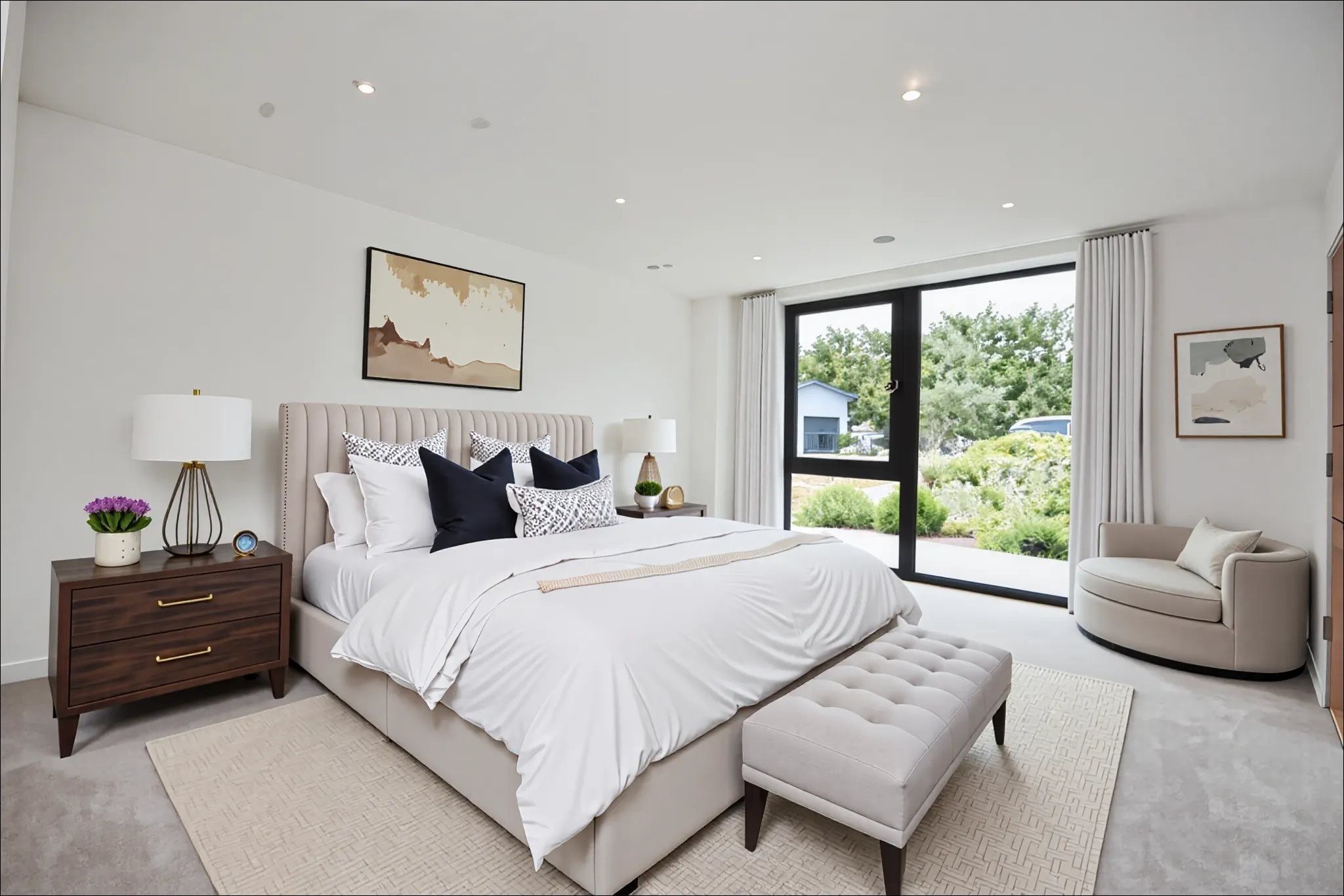 The apartment offers three generously sized double bedrooms, each with its own luxurious en-suite bathroom, including rain showers, heated towel rails, and a freestanding bath in the master suite. The master bedroom also benefits from direct access to the garden, further enhancing the sense of tranquillity and space.