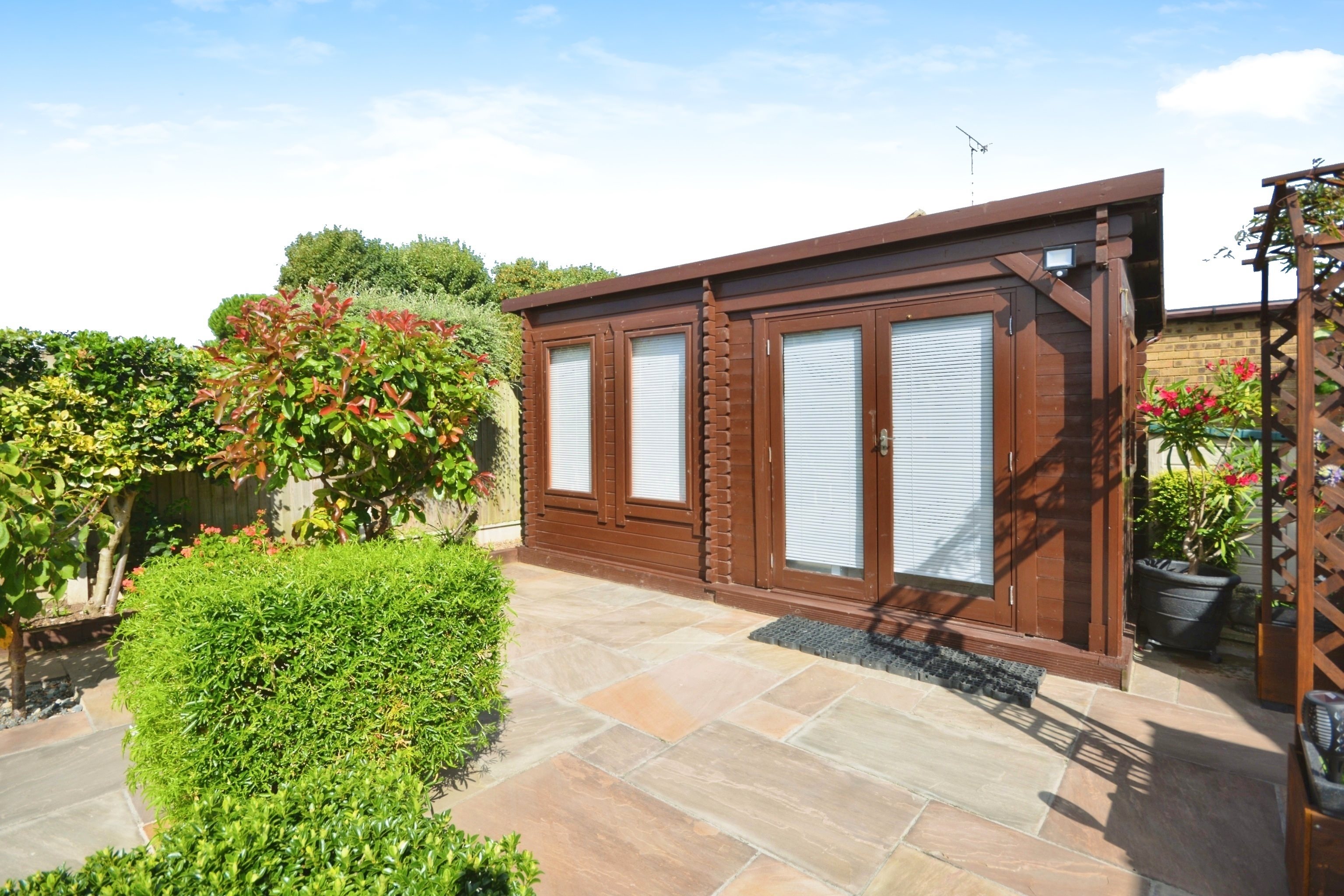 The rear garden must really be viewed. It is well maintained with lawned areas, patio areas, greenhouse, walled and fence, well stocked flower beds and borders, mature shrubs and trees, outside tap, outside lights.