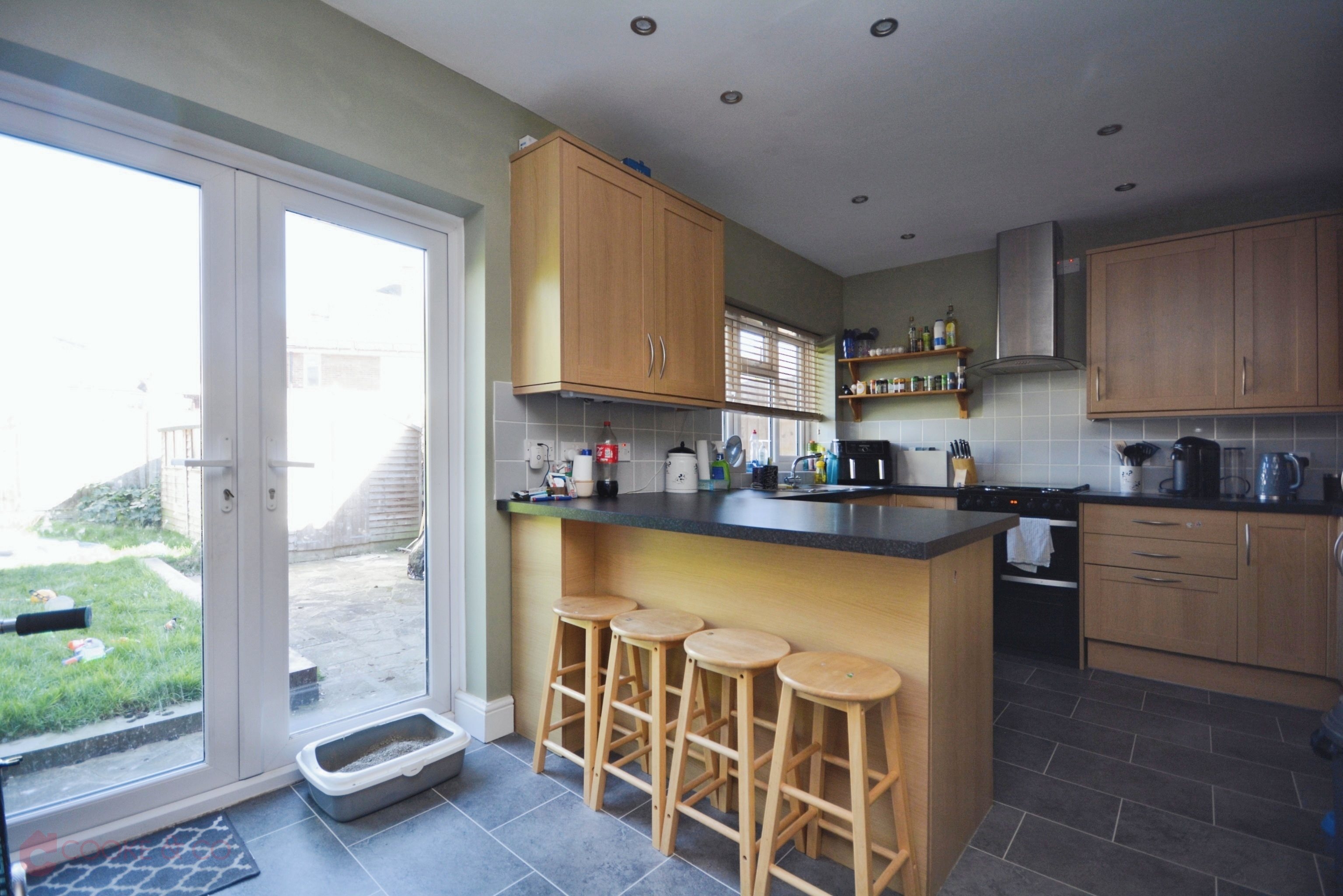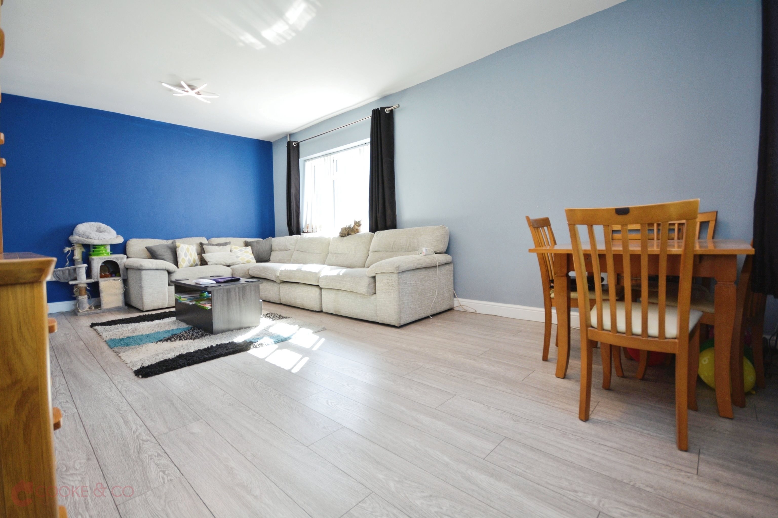 EntranceVia UPVC door into;HallwayStorage cupboard. Skirting.Lounge20'0 x 11'11 (6.1m x 3.63m)Windows to front and side. Wooden laminate flooring. Power points. Radiator. TV point. Skirting.Kitchen/Diner16'11 x 8'10 (5.16m x 2.69m)Windows to rear. Matching array of wall and base units with complimentary work surfaces. Space for fridge/freezer. Space for oven. Space and plumbing for washing machine. Space for dish washer. Extractor hood. Tiled splash backs. Tiled flooring. Power points. Radiator. Breakfast bar area. Doors to rear garden.Stairs To First FloorLeading to;LandingCarpeted. Airing cupboard.Family Bathroom7'08 x 5'06 (2.34m x 1.68m)Frosted window to rear. Bath with shower attachments. Low level W/C. Sink with mixer taps. Heated chrome towel rail. Laminate flooring.Bedroom12'02 x 8'06 (3.71m x 2.59m)Windows to rear. Carpeted. Radiator. Power points. Storage cupboard. Skirting.Bedroom14'01 x 9'11 (4.29m x 3.02m)Windows to front. Carpeted. Radiator. Power points. Storage cupboard. Skirting.Bedroom10'02 x 9'09 (3.1m x 2.97m)Windows to side. Carpeted. Power points. Skirting. Radiator.Front GardenLaid to pave with off road parking for two vehicles.Rear GardenPart laid to lawn. Mature shrubbery and plants.