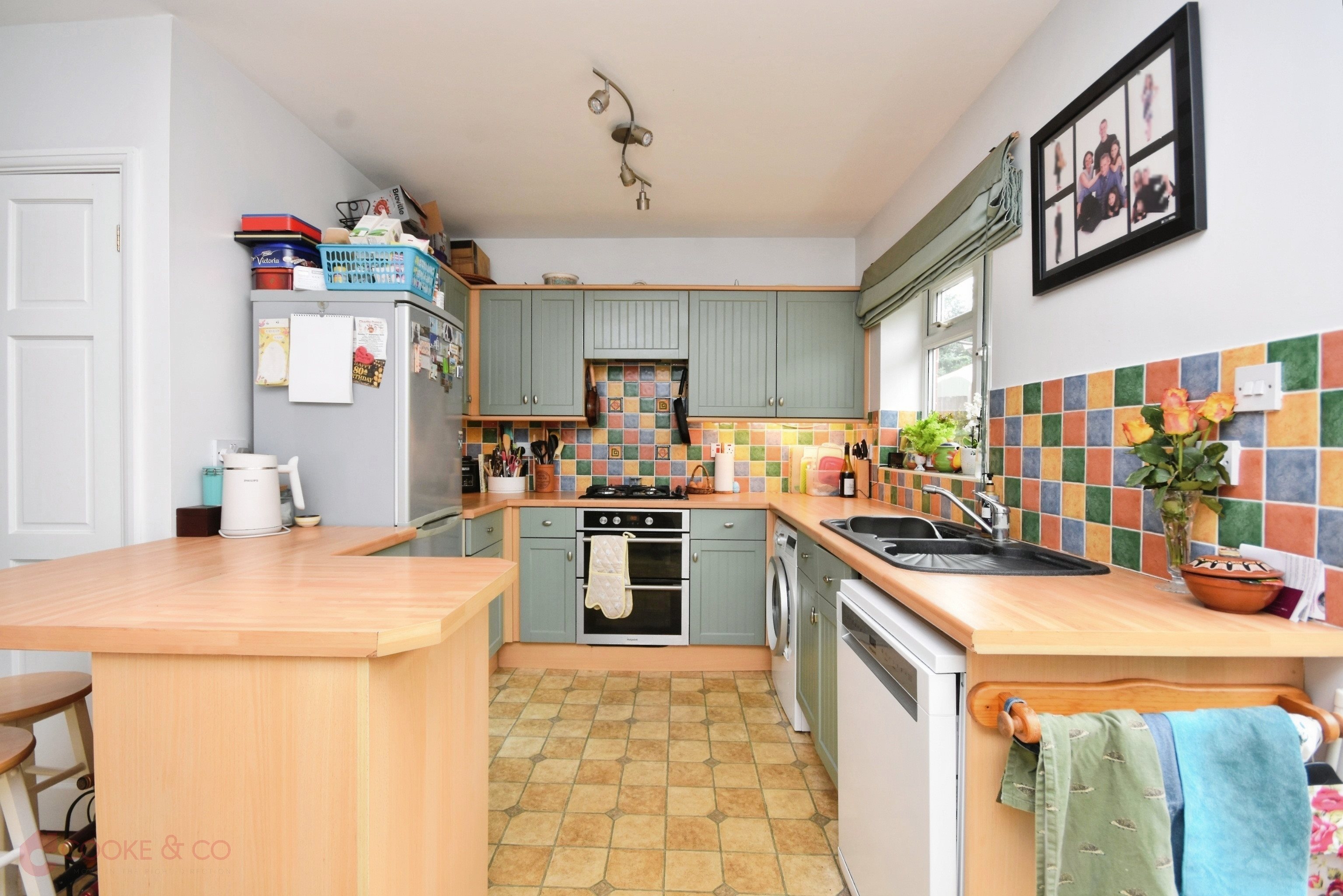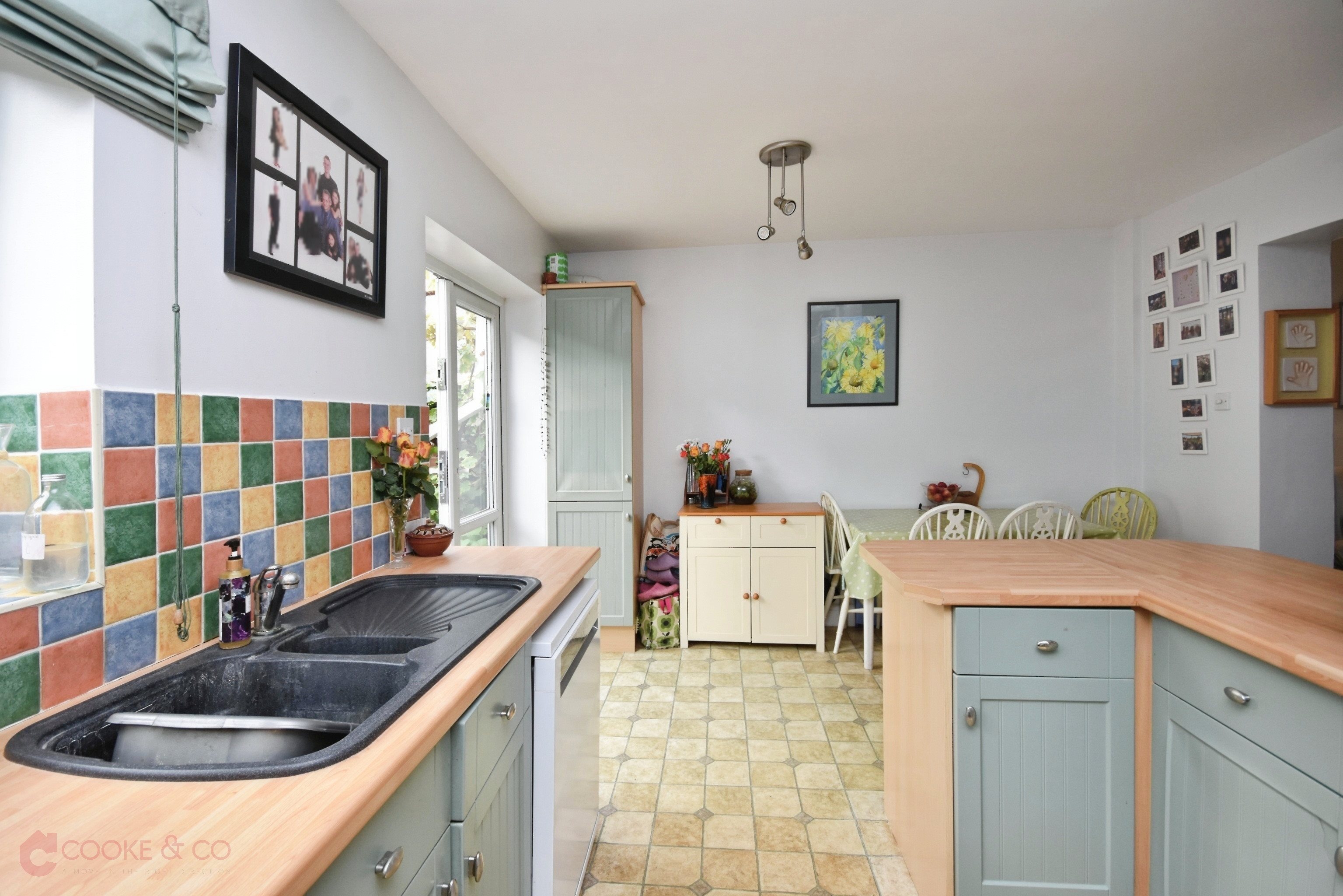 Windows to rear, vinyl flooring, integrated oven, four burner gas hob, sink with mixer taps, space for fridge freezer, tiled splash backs, space and plumbing for washing machine, space and plumbing for dish washer, door to rear garden, power points, radiator.