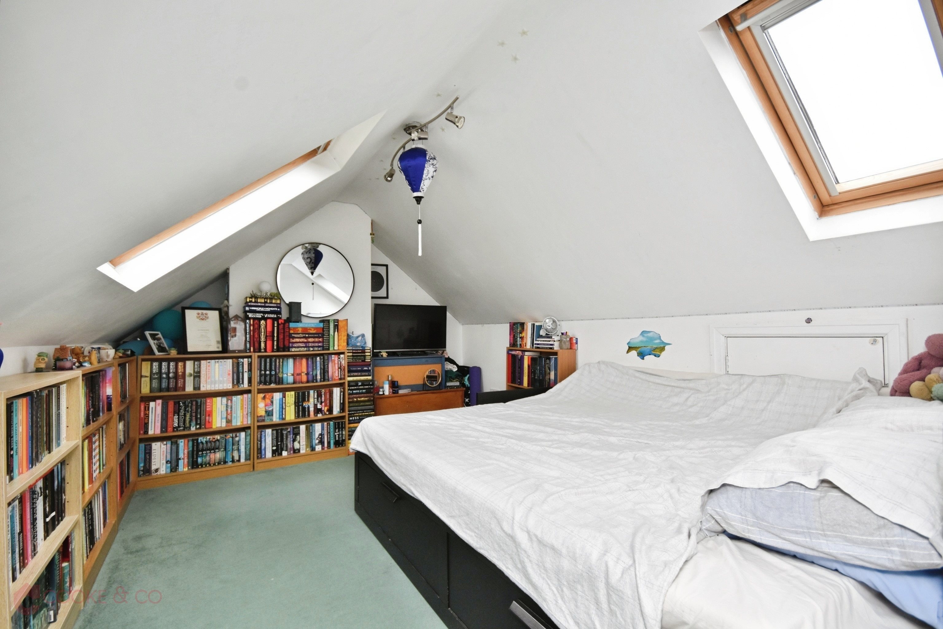 Sky light windows over head, carpeted, under eaves storage cupboard, radiator, skirting, power points