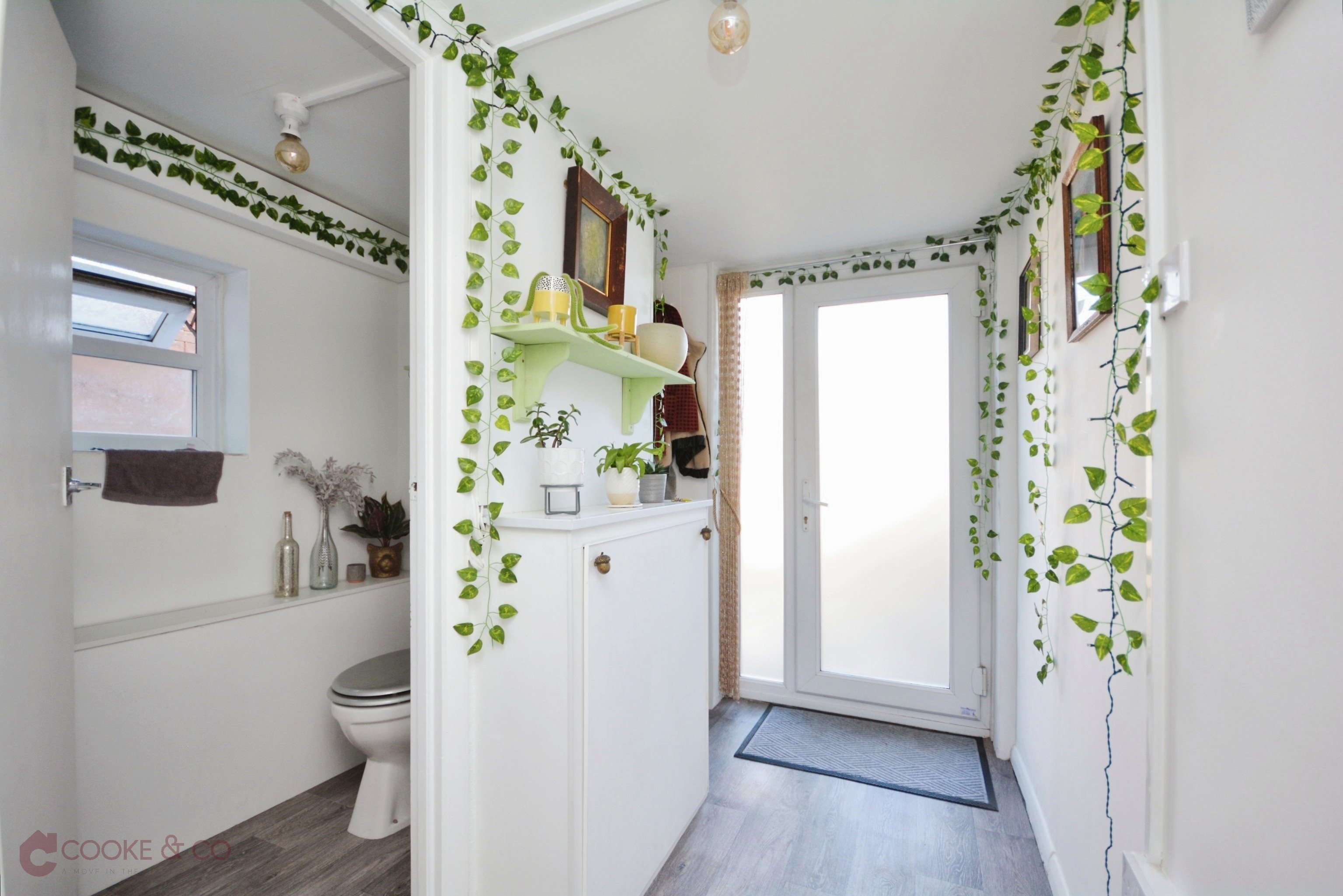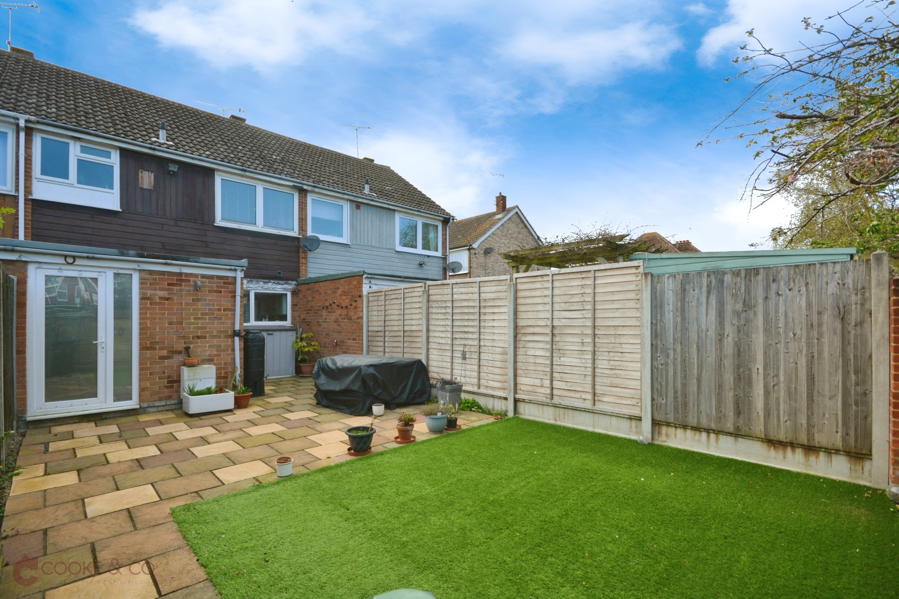 EntranceEntrance Via UPVC front door into:Lounge16'11 x 15'01 (5.16m x 4.6m)Wooden flooring. Stairs to first floor landing. Full height Grey radiator. Power points. Tv point. Double glazed windows to front. Doors to:Kitchen / Dining Room16'11 X 10'02 (5.16m X 3.1m)Matching array of wall and base units with complementing work surfaces. Double glazed window to rear. Tiled flooring. Power points. Four burner gas hob with extractor fan. Sink with mixer taps. Doors to:Hallway8'09 x 4'01 (2.67m x 1.24m)Boiler housing. Consumer units. Doors to:Downstairs W/C5'09 x 3'07 (1.75m x 1.09m)Low level W/C. Wash basin with mixer taps. Frosted double glazed window to side.Stairs To First Floor LandingFirst Floor Landing.Access to loft. Doors to:Primary Bedroom12'05 x 10'02 (3.78m x 3.1m)Double glazed window to front. Laid to carpet. Radiator. Power points.Bedroom Two10'11 x 10'03 (3.33m x 3.12m)Radiator. Power points. Double glazed window to rear. Laid to carpet.Bathroom6'04 x 5'08 (1.93m x 1.73m)Tiled walls. Frosted double glazed window to rear. Bath with shower over head and shower screen. Wash basin with mixer taps. Low level W/C,Bedroom Three7'10 x 6'05 (2.39m x 1.96m)Laid to carpet. Double glazed window to front. Power points. Radiator.Rear GardenMainly laid to block pave with a faux grass area. Rear access.GarageSingle en-block garage with metal up and over door.