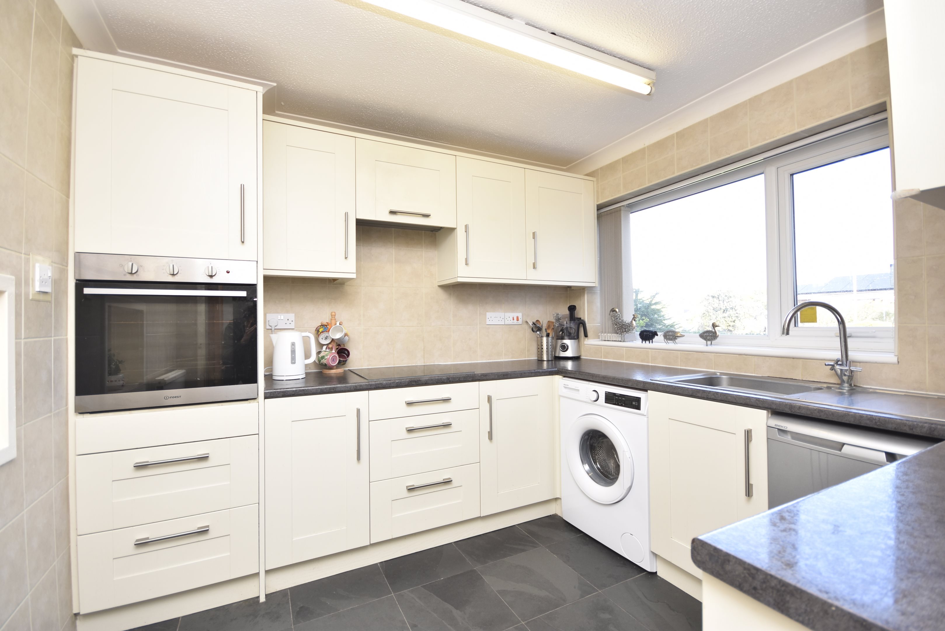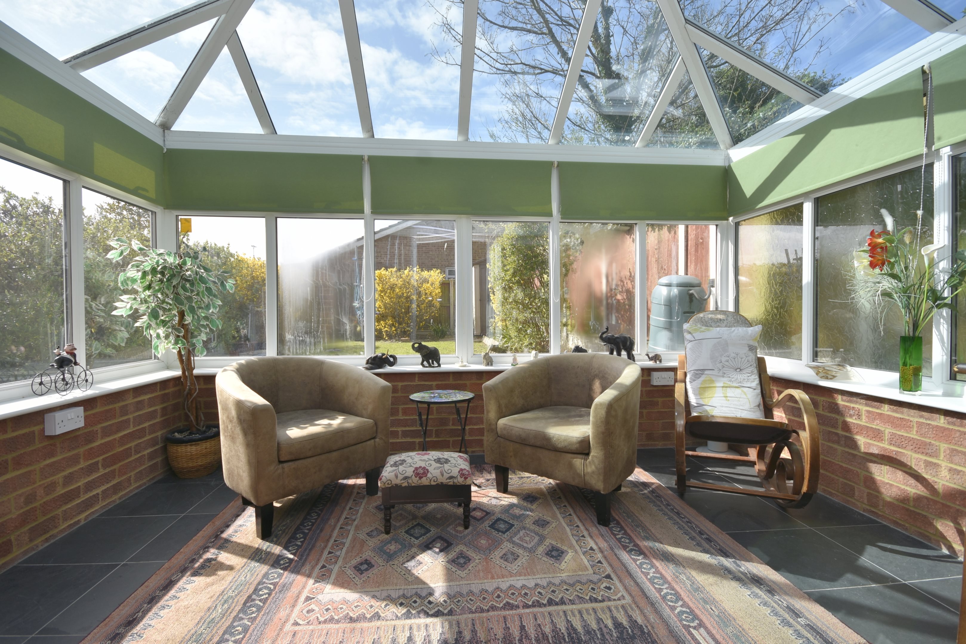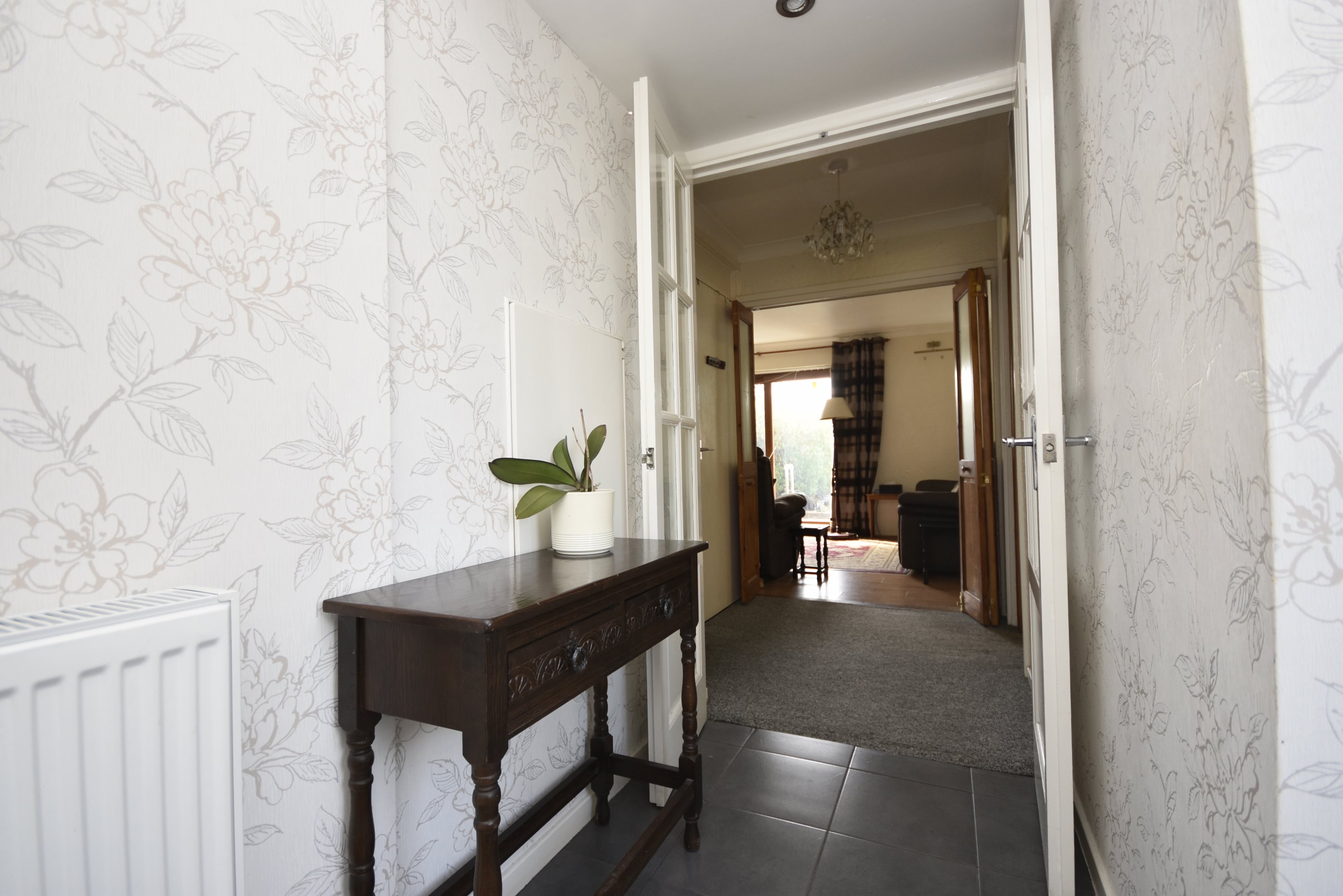 EntranceEntrance via glazed UPVC doorPorchRadiator. Power point. Built-in cupboard housing electric meter. Door to.Cloakroom5'7 x 4'6 (1.7m x 1.37m)Low-level WC. Sink set on vanity unit. Heated towel rail. Extractor fan. Double glazed frosted windows to front and side. Fully tiled.HallwayUnderstairs cupboard. Power point. Stairs leading to first floor. Doors to.Lounge/Diner21'8 x 10'8 (6.6m x 3.25m)Radiators. Power point. Serving hatch. Two double glazed patio doors to rear.Conservatory11'8 x 9'1 (3.56m x 2.77m)Power point. Double glazed windows to rear and sides. Double glazed front doors to side leading to garden.Kitchen9'2 x 9'2 (2.79m x 2.79m)Matching wall and base units with complimentary worksurface. Inset stainless steel sink unit with drainer and mixer tap. Splashback tiles. Integrated oven and hob with extractor fan over. Space and plumbing for washing machine. Space for undercounter fridge and freezer. Double glazed window to front. Radiator. Power point.First floor landingDouble glazed window to front. Power point. Access to loft. Doors to.Bedroom Two11'2 x 9'6 (3.4m x 2.9m)Double glazed window to rear. Radiator. Power point.Bedroom One11'9 x 11'2 (3.58m x 3.4m)Double glazed window to rear. Radiator. Power point.Bedroom Three9'7 x 6'7 (2.92m x 2.01m)Double glazed window to front. Radiator. Power point.Shower Room6'9 x 6'8 (2.06m x 2.03m)Low-level WC. Pedestal wash hand basin. Walk-in shower cubicle with electric shower over. Radiator. Built-in cupboard housing combination boiler. Double glazed frosted windows to front and side.Rear GardenMainly laid to lawn. Patio area. Rear access.Front GardenLaid to lawn. Hardstanding offering off street parkingGarage17'4 x 8 (5.28m x 8)Up and over door. Housing gas meter and electric fuse box.