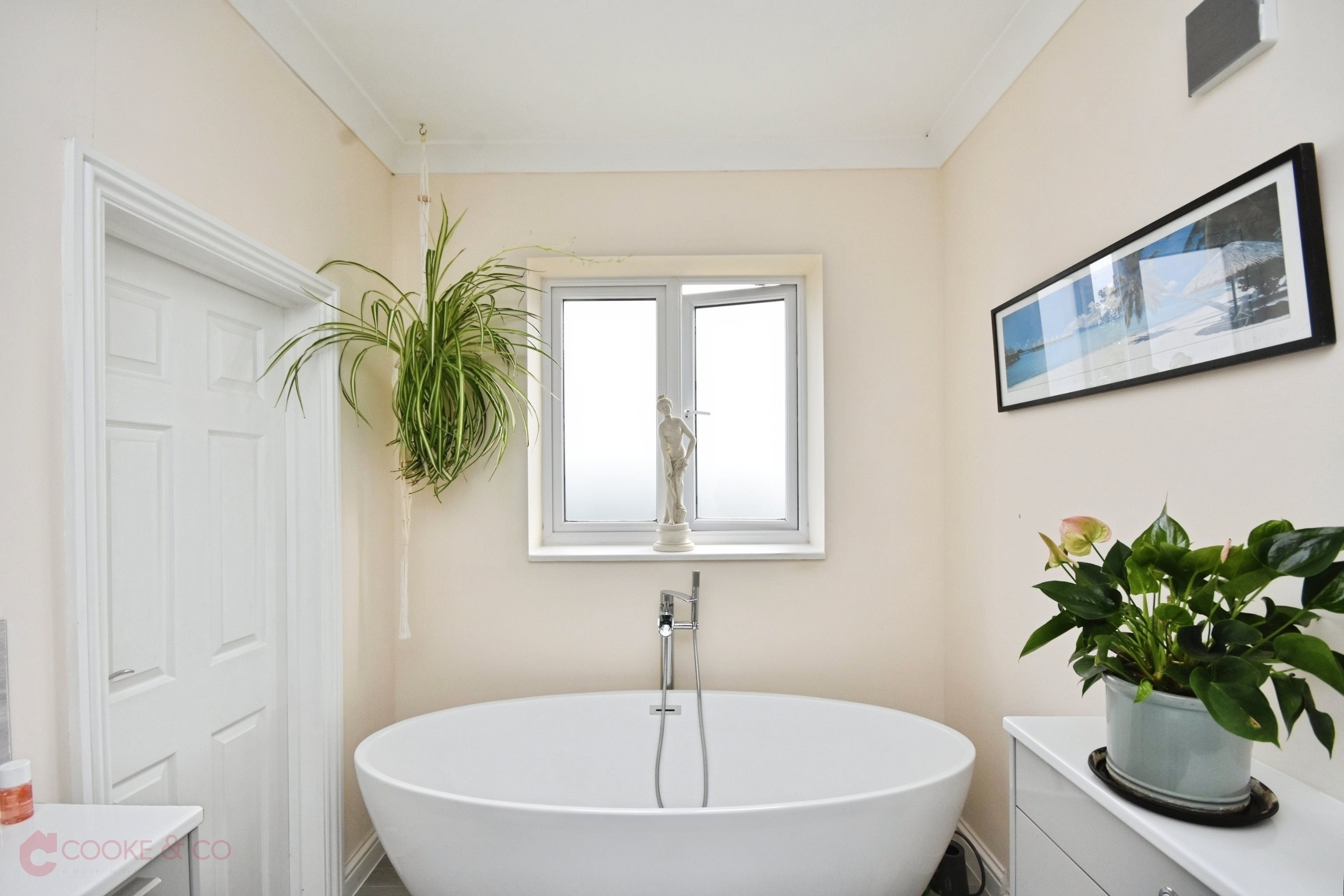 Immaculately presented throughout, this stunning home boasts four generous double bedrooms, each with its own luxurious en-suite bathroom. Bedrooms one and two also enjoy access to a private balcony overlooking the landscaped rear garden, offering a peaceful retreat with wonderful views.