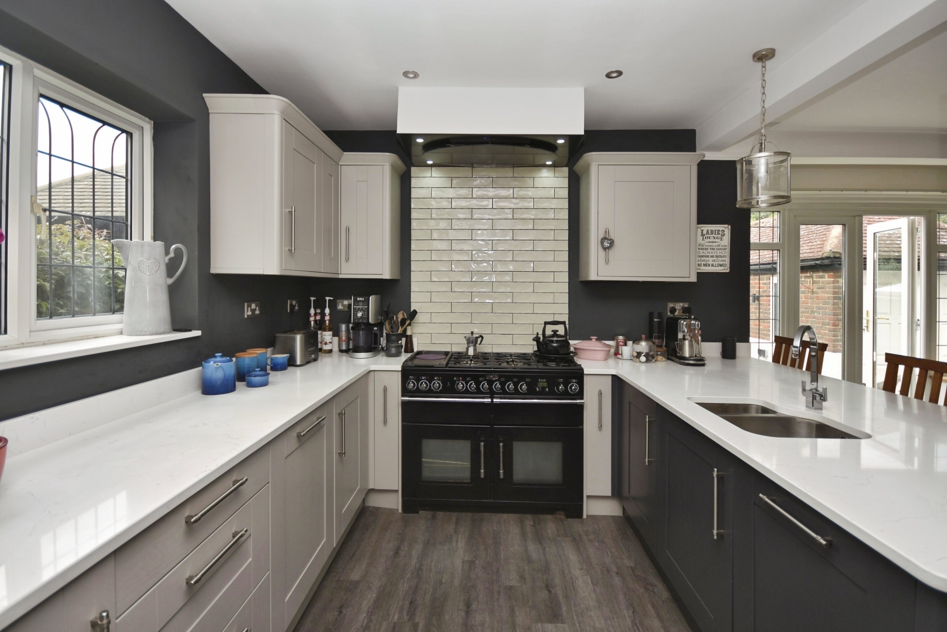 Gloucester House is an imposing detached four-bedroom home, set on one of Cliftonville's most sought after avenues in the desirable Palm Bay area. Built in the 1920s, it was one of the first properties constructed and retains character and heritage while offering modern living at its finest. Purchased two years ago by the current owners, the property has since undergone an extensive and stylish refurbishment to a very high standard. The welcoming entrance hall leads to a bright open-plan kitchen/dining/family room truly the heart of the home, ideal for both everyday living and entertaining. The new fully fitted kitchen has bespoke cabinetry, a walk-in larder/pantry, and quality integrated AEG appliances including full-size larder fridge and freezer, washing machine, and dishwasher. A double Rangemaster oven with gas hob, remotely controlled glass extractor, quartz worktops, and downlighting complete this stunning space. To the front, a separate lounge offers a cosy retreat, alongside a modern cloakroom.