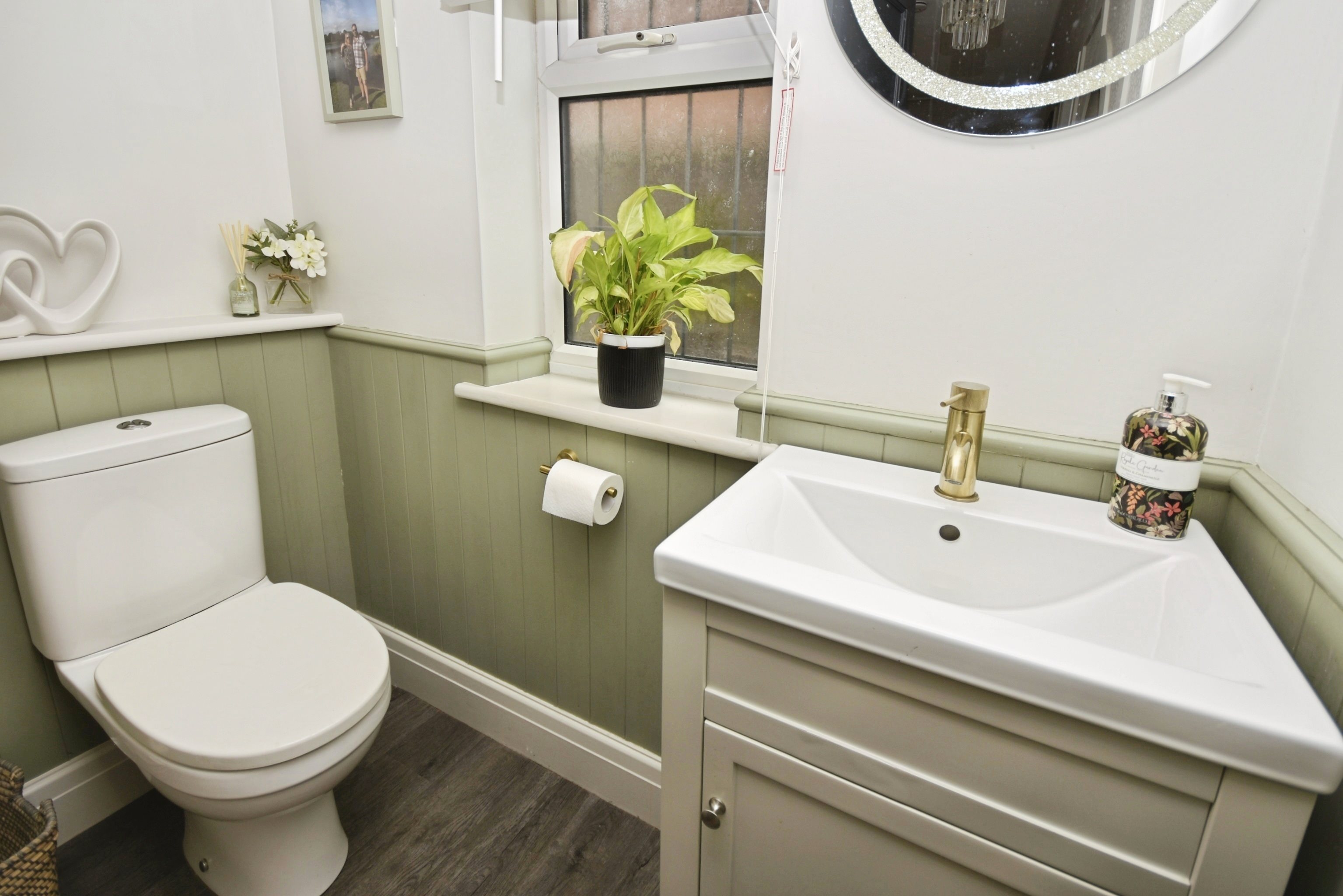 Upstairs, there are four generously proportioned bedrooms and a newly fitted bathroom featuring a freestanding bath with shower mixer tap, Rocca vanity unit, and quality half tiling. Karndean LVT flooring has been laid throughout the kitchen/dining room, bathroom, and cloakroom, while Farrow & Ball colours create a timeless finish. The home also benefits from an upgraded Vaillant heating, mains fed unvented hot water system cleverly housed in an attached plant room.