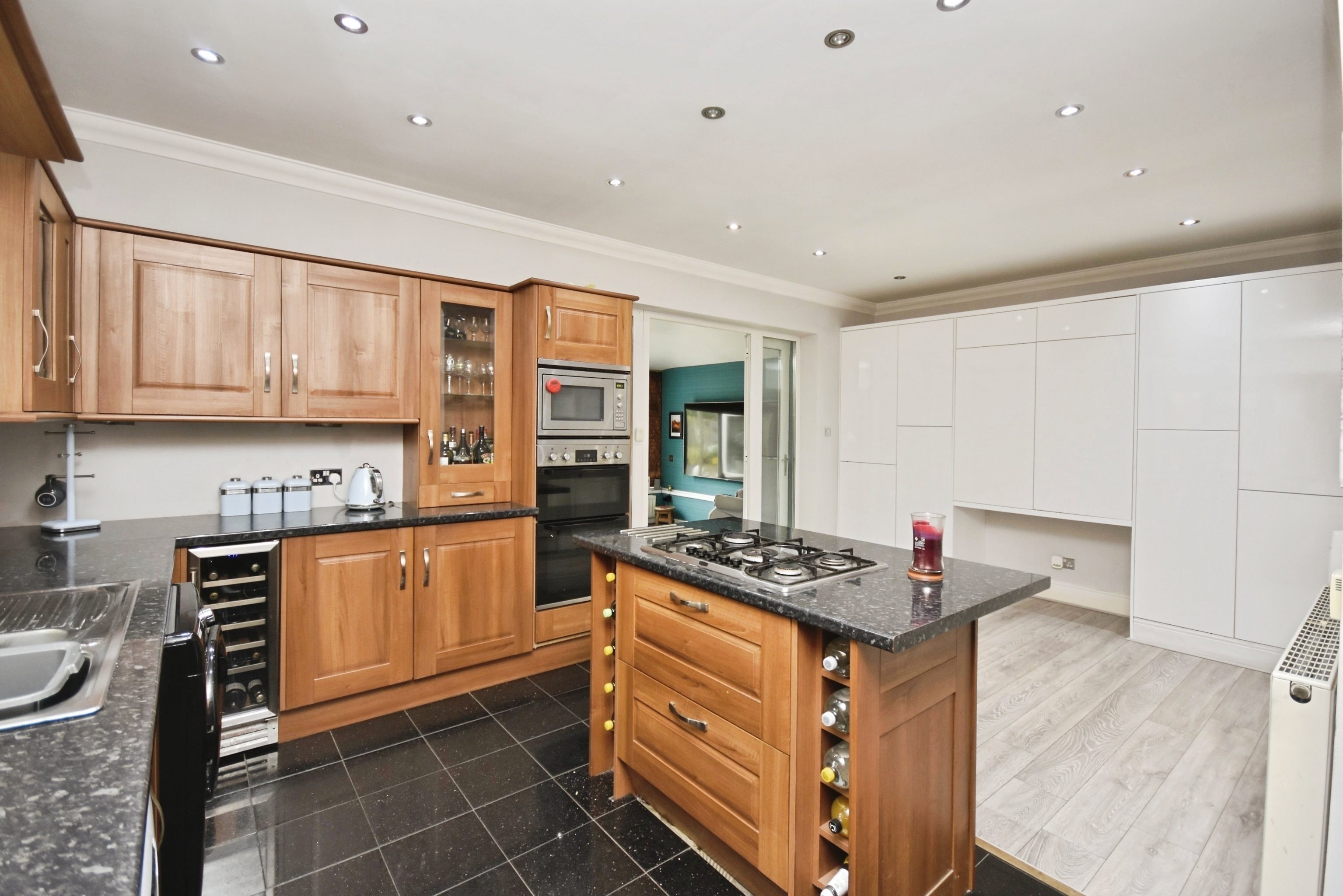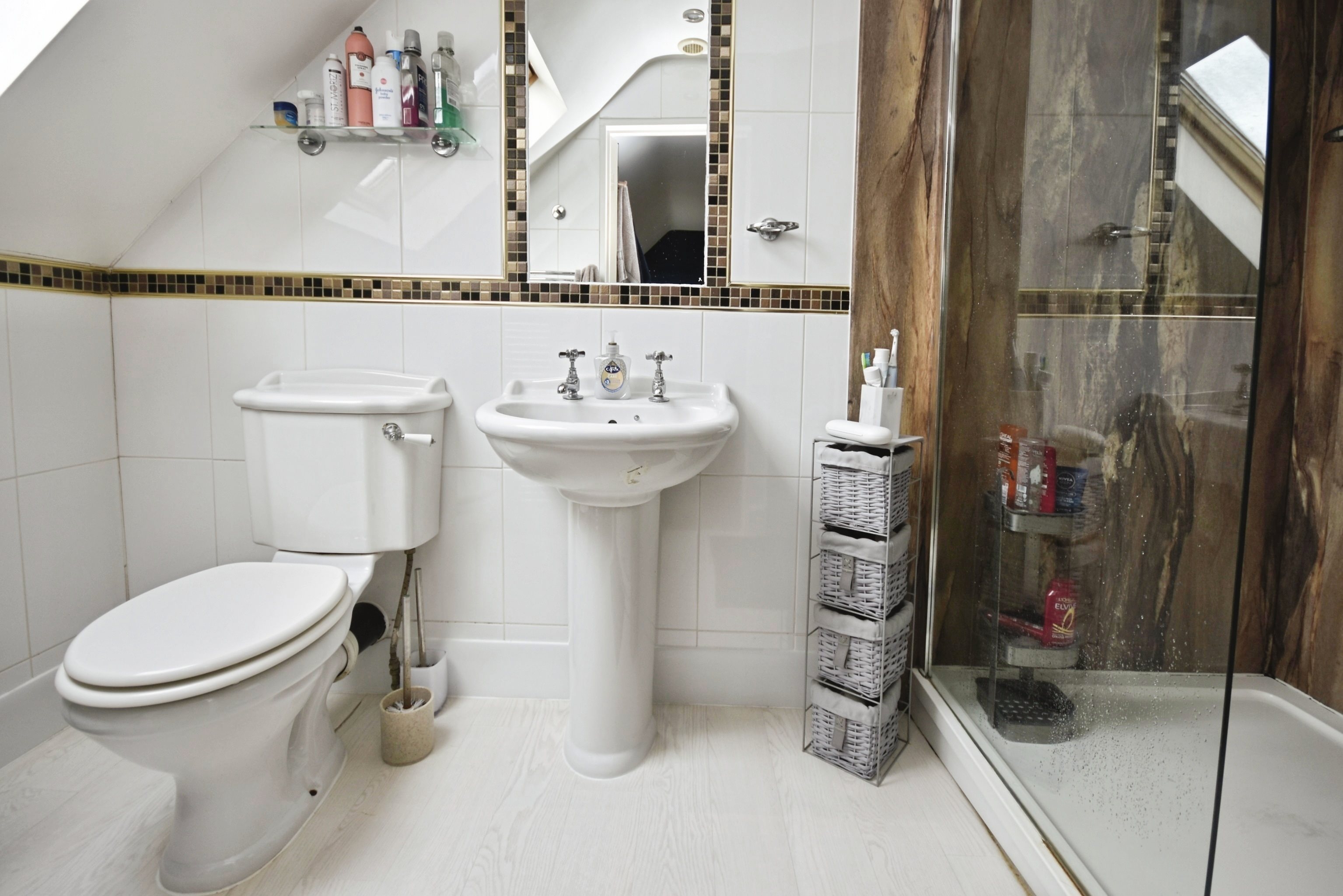 Entrance HallRadiator. Under stairs cupboard. Stairs to first floorCloakroomLow level WC. Wash hand basin. Wall mounted combi boiler.Reception Room (Currently used as Dining Room)13'9 x 10'8 (4.19m x 3.25m)Double glazed bay window to front. Radiator. Power points. Media wall with built in electric fire place.Kitchen/Breakfast Room20'3 x 13'8 narr to 11'3 (6.17m x 4.17m narr to 3.43m)Range of walk and base units with work surface. Island with integral gas hob. Space for American style fridge/freezer. Space for dishwasher. Space for washing machine. Integral double oven. Integral microwave. Power points. Double glazed window to side. Radiator. Large cupboards providing additional storage.Conservatory19'6 x 15'8 narr to 10'1 (5.94m x 4.78m narr to 3.07m)Three x radiators. Double glazed windows to side and rear. French doors to garden. Power points.LandingRadiator. Stairs to second floor. Doors to..Bedroom Two12'8 x 12'1 into bay (3.86m x 3.68m into bay)Double glazed bay window to front. Radiator. Power points.Walk in Wardrobe7'5 x 3'0 (2.26m x 0.91m)Radiator.En Suite Shower Room7'5 x 5'1 at widest points (2.26m x 1.55m at widest points)Shower cubicle. Wash hand basin. Low level WC. Radiator. Double glazed window to side.Bedroom Three11'2 x 10'0 (3.4m x 3.05m)Double glazed window to rear. Radiator. Power points.Bedroom Four9'6 x 7'8 (2.9m x 2.34m)Double glazed window to rear. Power points. Radiator.Bathroom7'1 x 6'8 (2.16m x 2.03m)Bath with hand held shower attachment. Low level WC. Wash hand basin. Double glazed window to front. Radiator with heated towel rail.Second Floor LandingVelux window. Door to eavesBedroom One20'4 x 11'8 (6.2m x 3.56m)Two x radiator. Double glazed window to rear. Velux window to front. Power points. Doors to eaves storage. Loft hatchEn Suite Shower Room9'6 x 4'6 (2.9m x 1.37m)Large shower cubicle with rain shower. Wash hand basin. Low level WC. Velux window. Heated towel rail.Walk in Wardrobe6'1 x 4'7 (1.85m x 1.4m)GardenLarge patio area. Astro turf area. Gated entrance to front driveway, with additional driveway access down to rear garage/storage room. Outside power points. Outside tap.Garage/Workshop28'7 x 22'2 narr to 12'5 (8.71m x 6.76m narr to 3.78m)Double glazed windows to front. Door to garden. Double doors to driveway area. Power points.Driveway to Front
