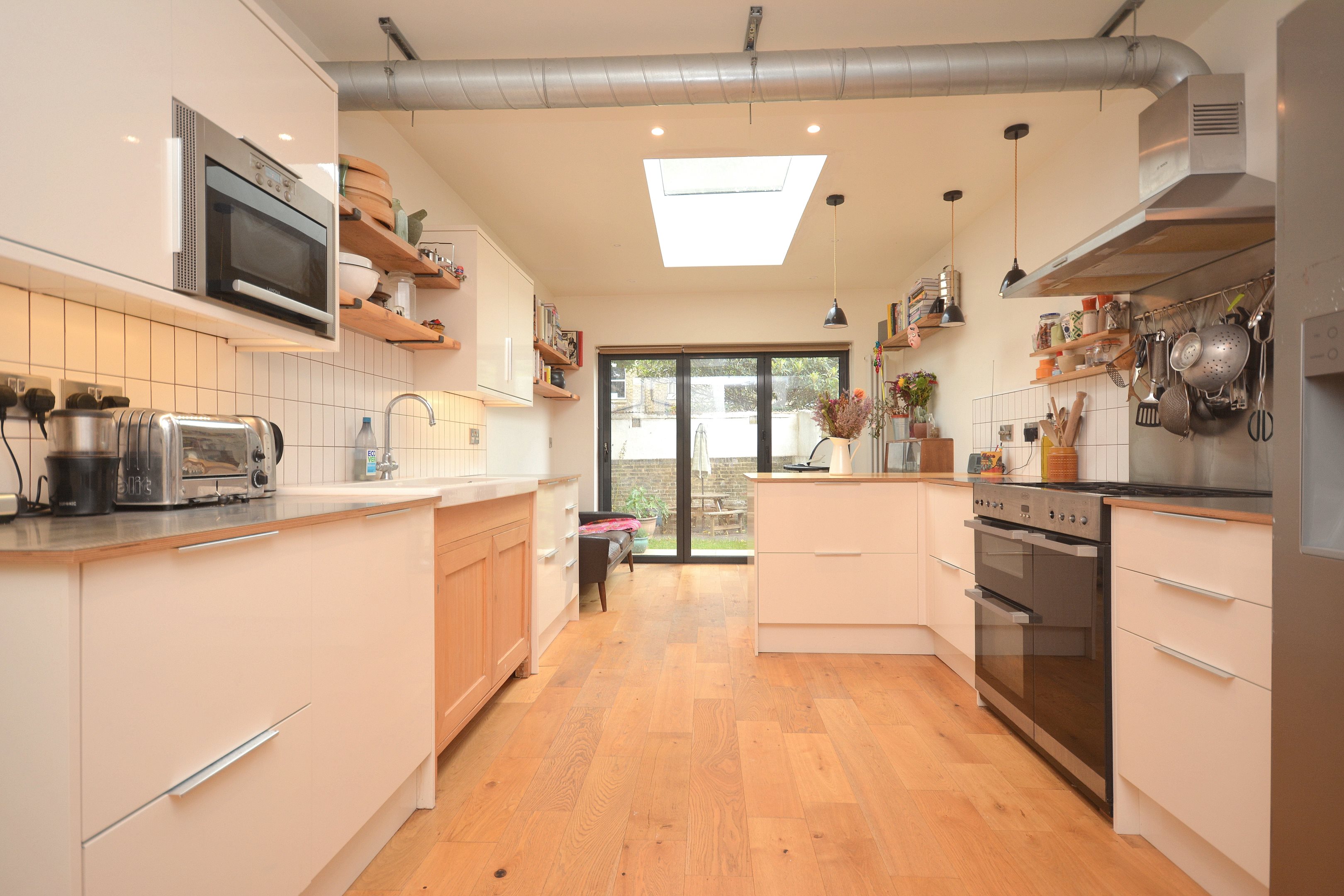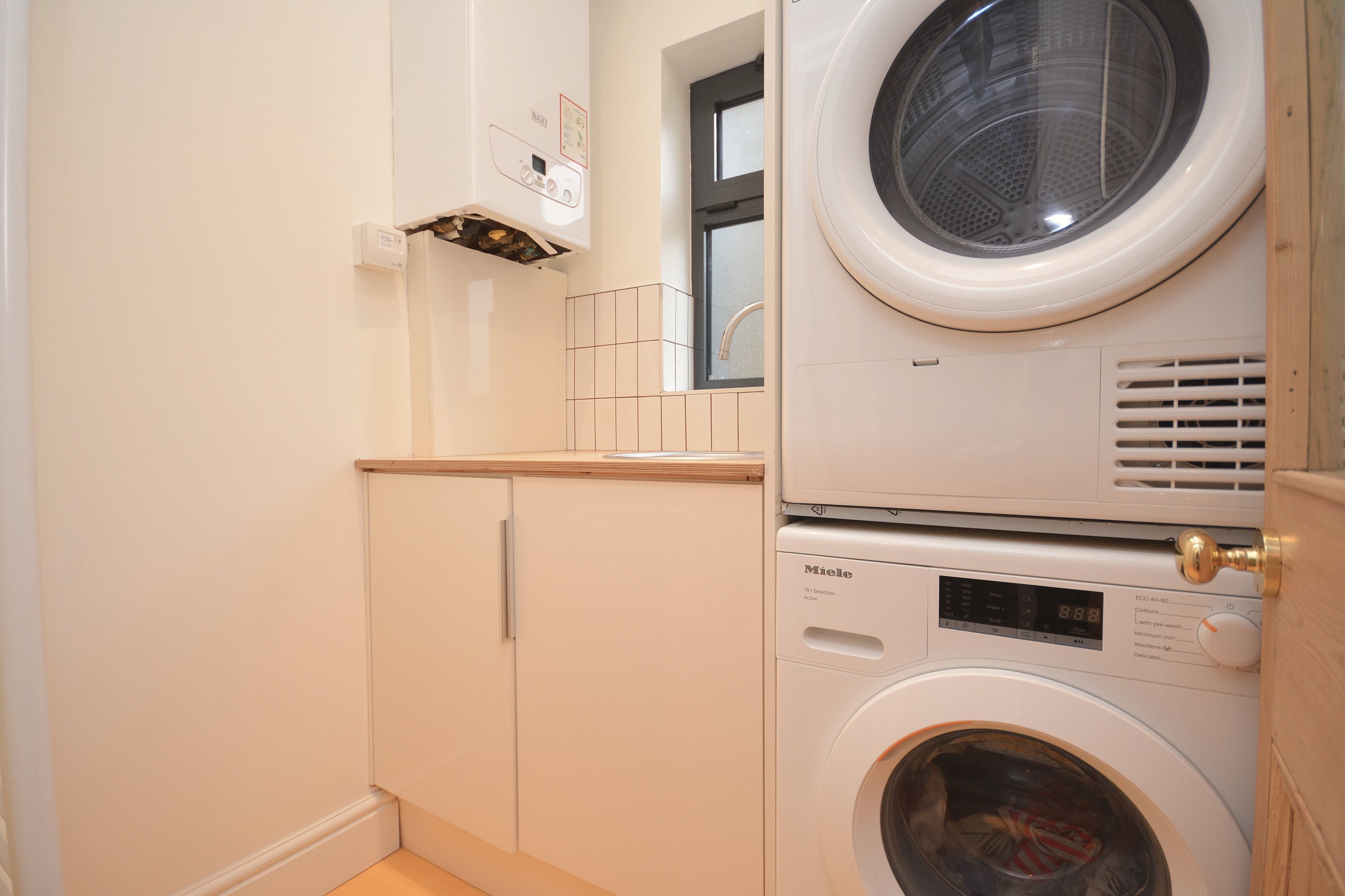 On the ground floor, you'll find a spacious lounge/diner featuring original sash windows, bespoke shutters, and a cosy open fireplace. The modern kitchen/diner spans an impressive 28ft, with bi-folding doors leading out to the garden. Thoughtfully designed, the kitchen boasts bespoke stainless steel countertops, a breakfast bar, and a skylight. Additionally, there is a utility room and a cloakroom on this level as well as access to a cellar.