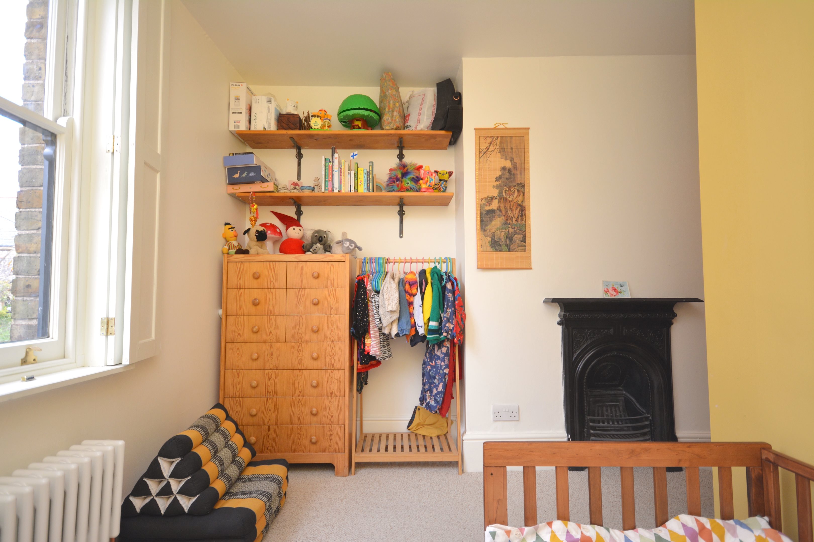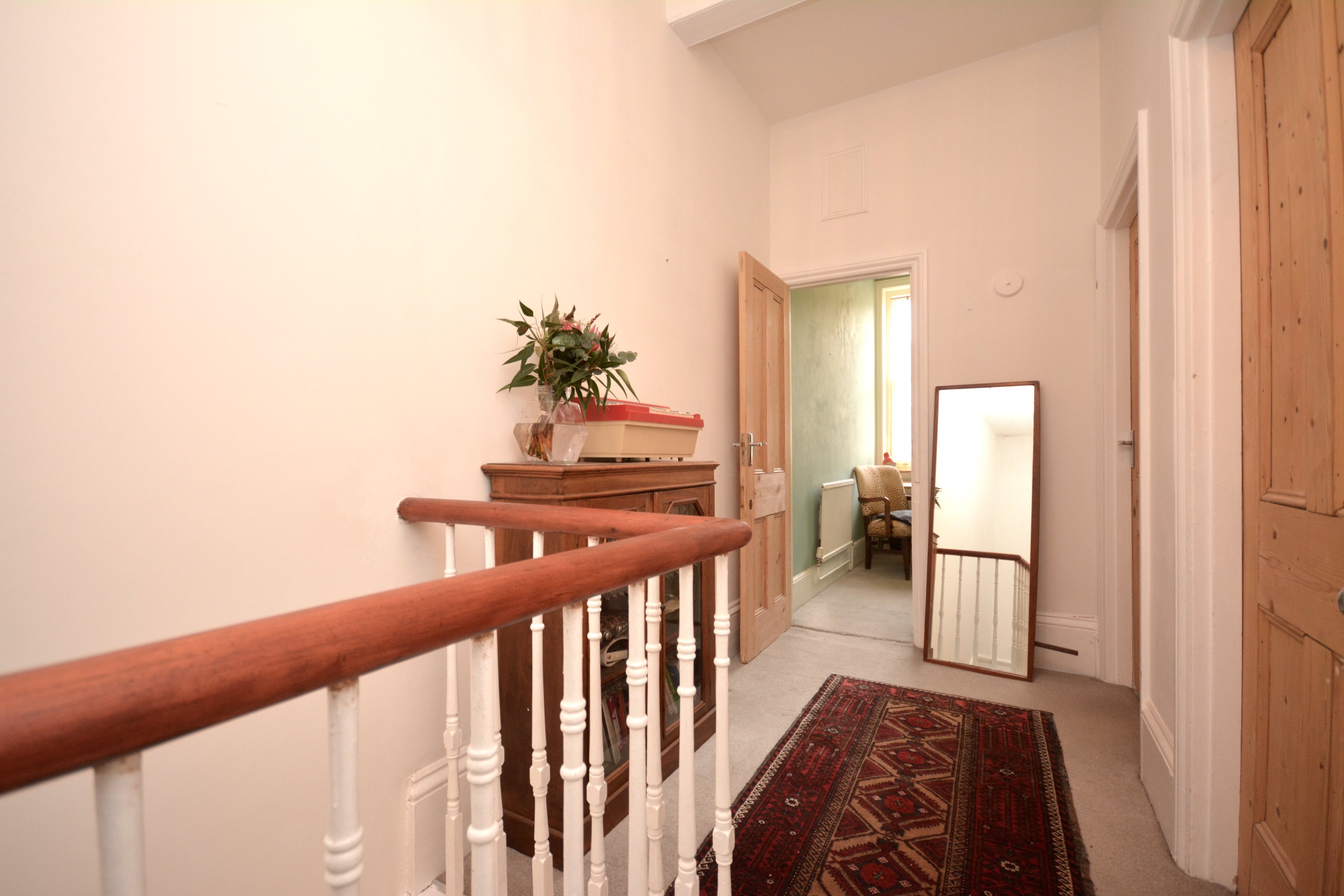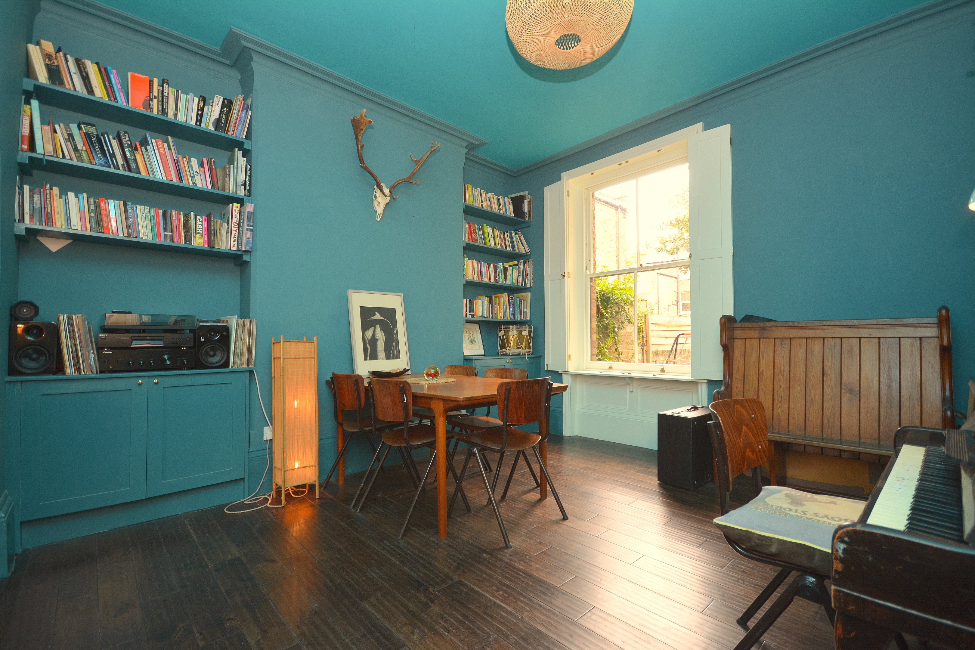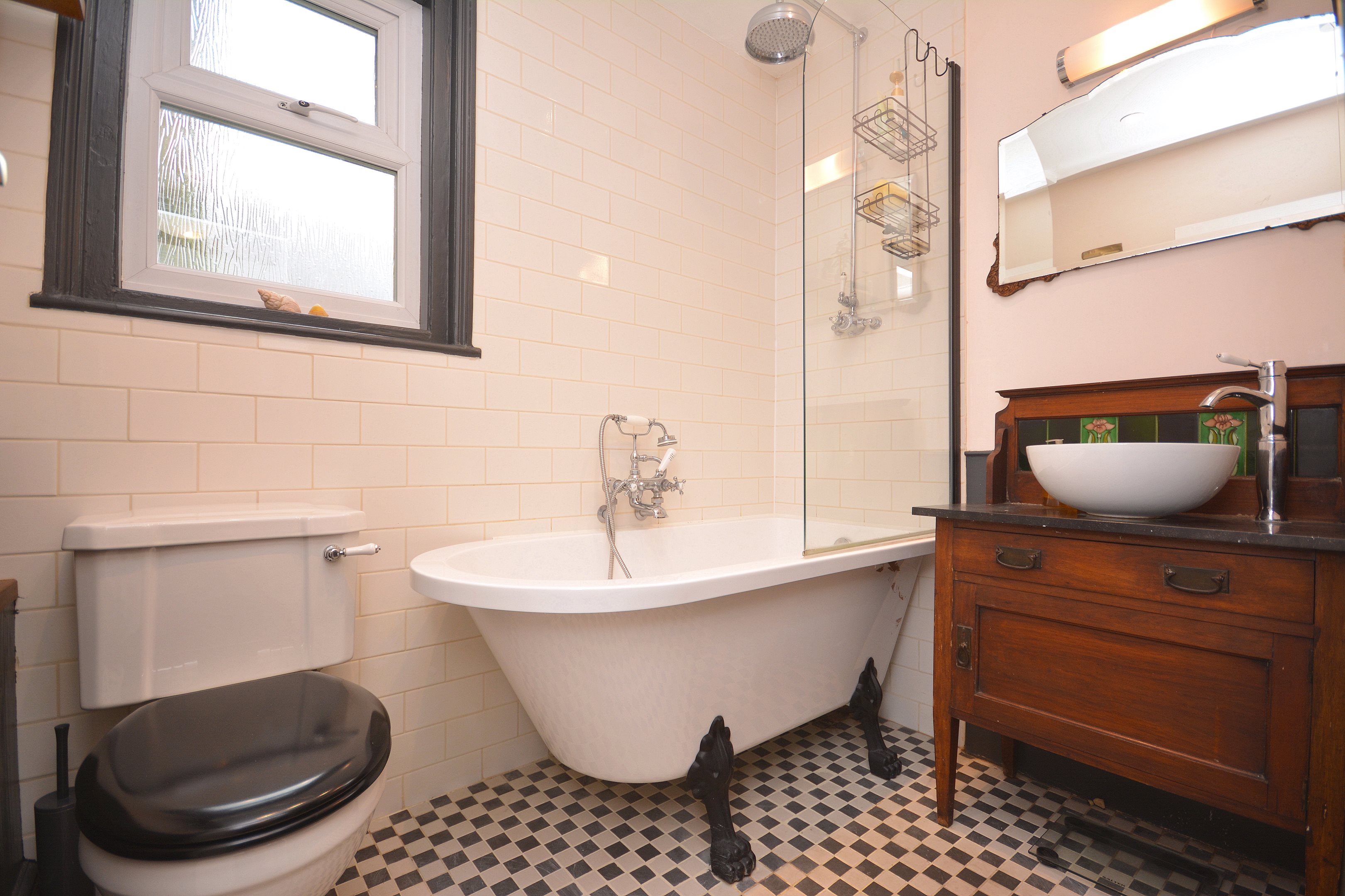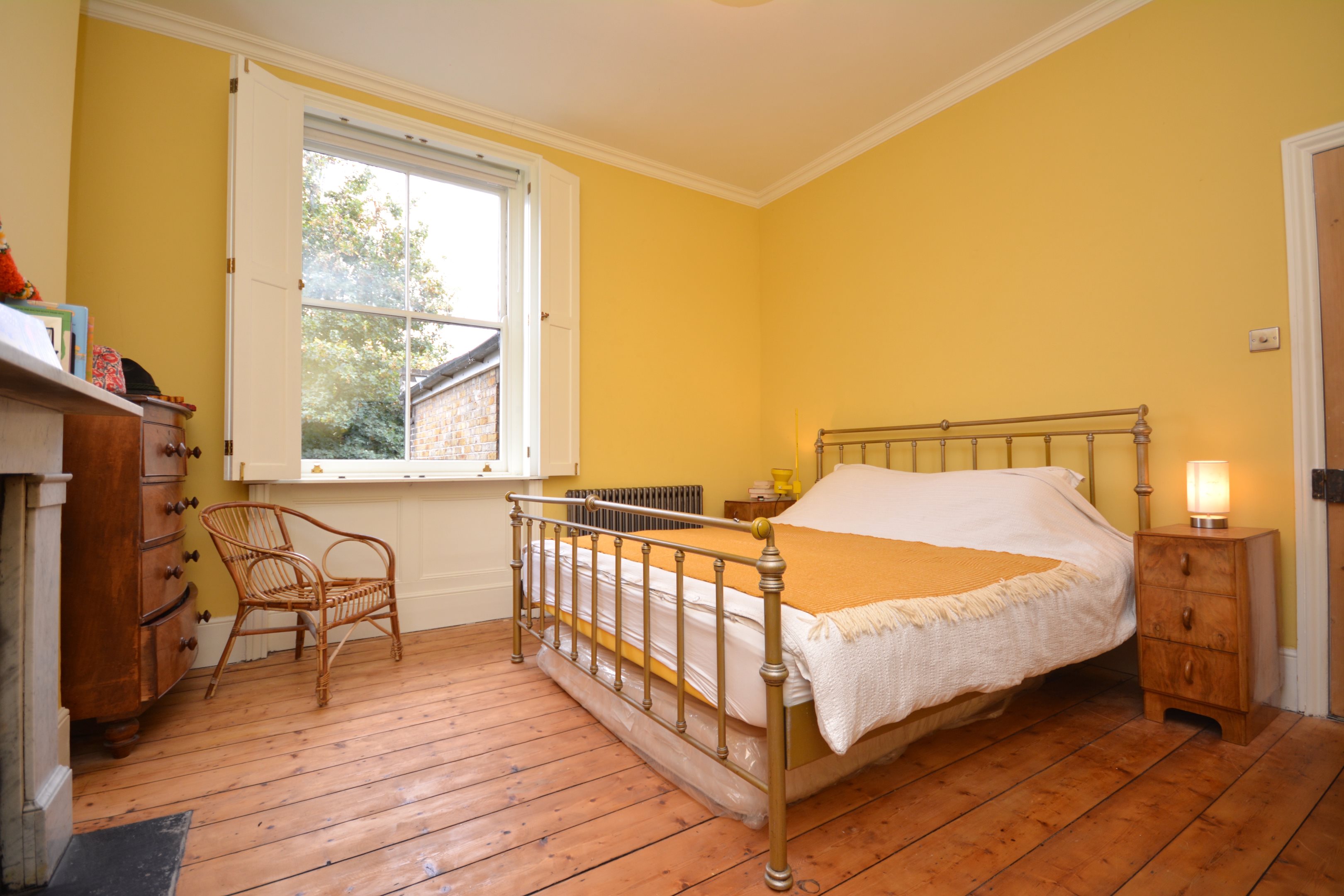 The first floor houses three double bedrooms and one single bedroom, all with original features. The stylish modern-Victorian family bathroom is fitted with designer fixtures, including a clawfoot bath, rainfall shower, and underfloor heating.