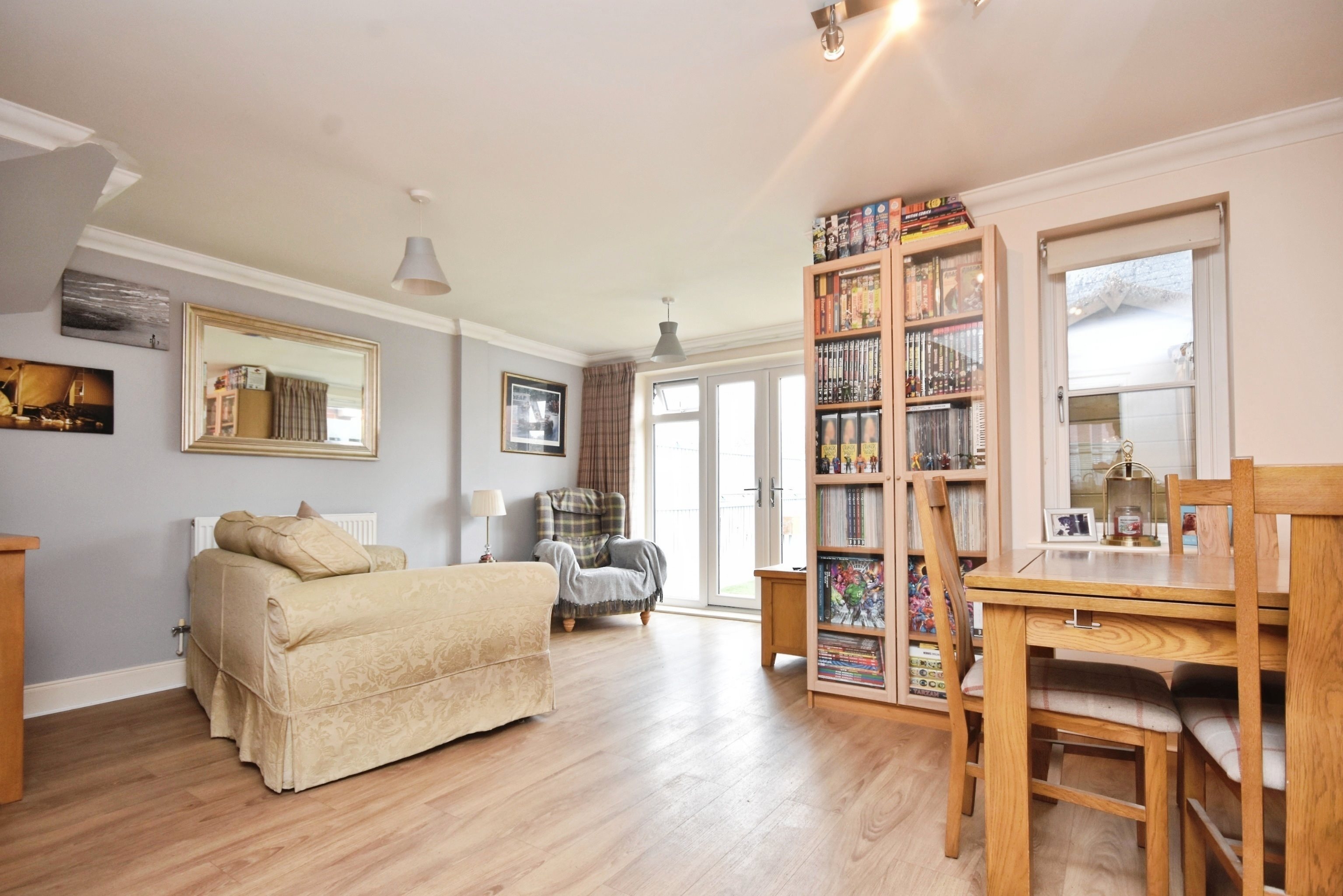 Laminate flooring, TV point, power points, radiators, skirting and coving, french doors to rear garden, door to-