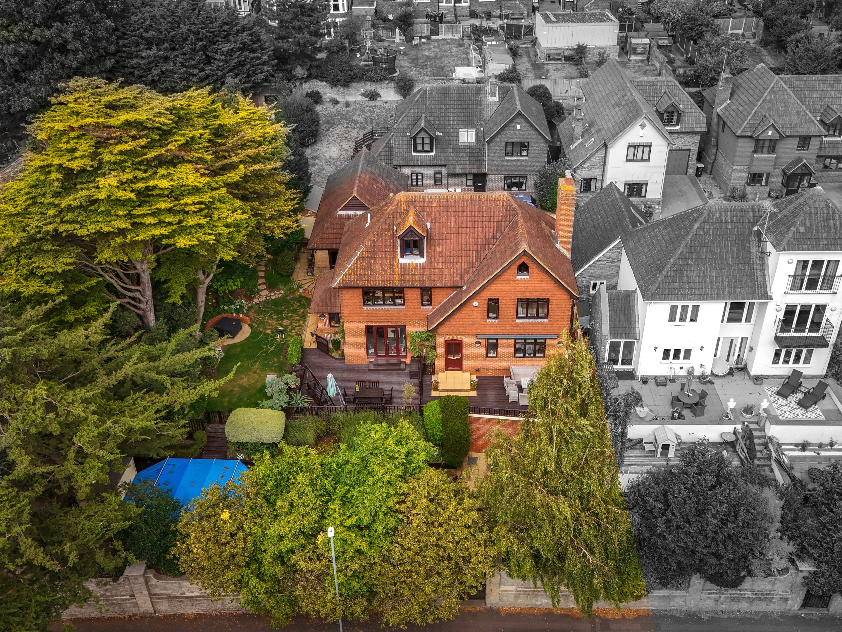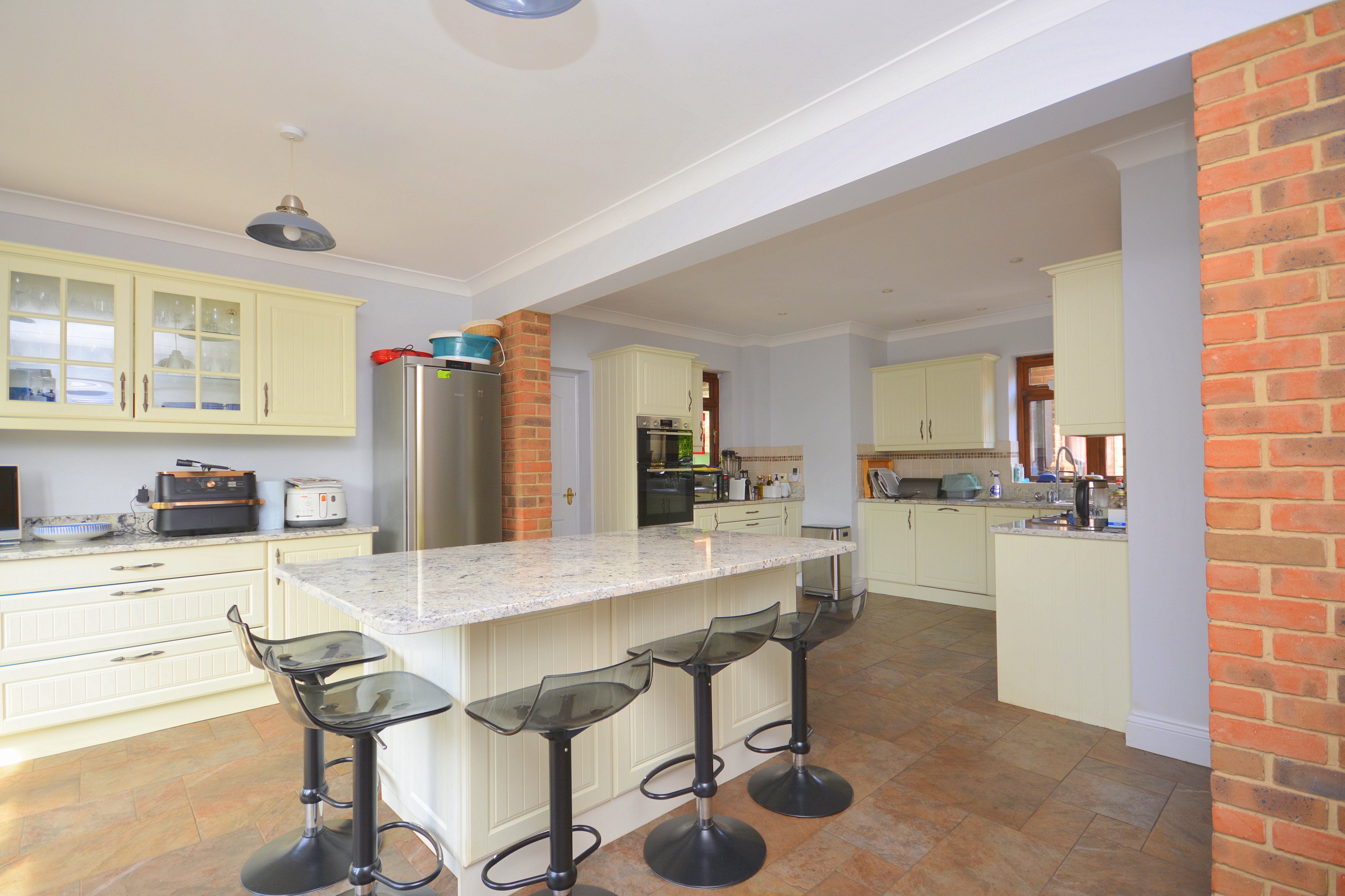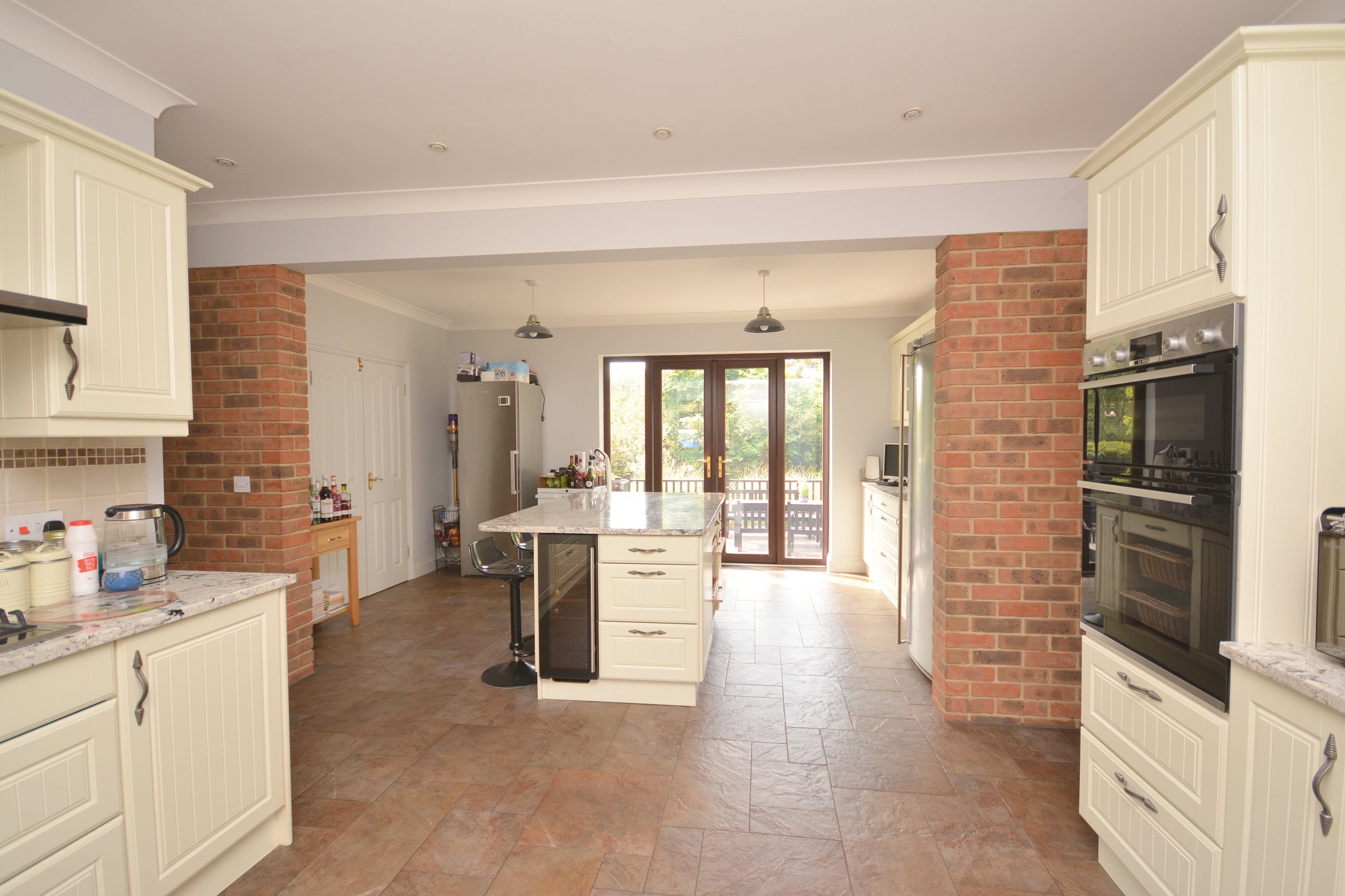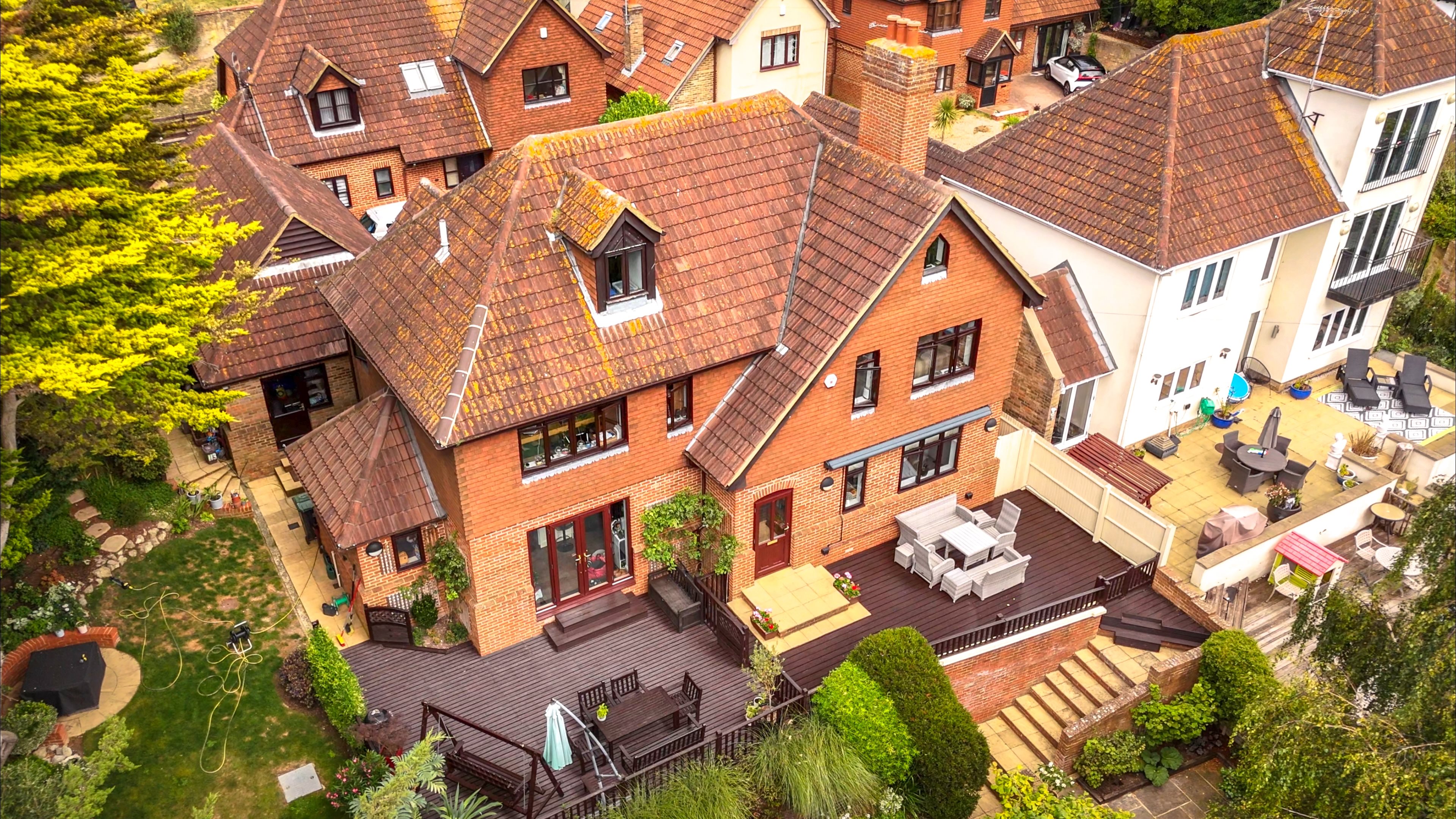 EntranceVia double glazed front door. Double glazed window to front. Radiator. Power points. Stairs to first floor. Door to porch leading to rear garden. Doors to..CloakroomLow level WC with concealed cistern. Wash hand basin inset into vanity unit. Heated towel rail. Double glazed window to front.Kitchen / Breakfast Room22'4 x 15'4 (6.81m x 4.67m)Selection of wall and base units with complimentary marble work surfaces. Integral high double oven. Five ring gas hob with extractor over. Integral dishwasher. Space for fridge/freezer. One and half bowl sink with drainer. Large island with under counter units and wine fridge. French doors leading to garden. Double glazed window to front and side.Utility Room6'2 x 4'6 (1.88m x 1.37m)Base units with work surface. Sink with drainer. Space for washing machine. Wall mounted combo boiler. Double glazed windows to rear and side. Door to garden.Lounge14'7 x 9'4 (4.44m x 2.84m)Double glazed box bay window to front. Radiator. Brick feature fireplace. Power points. Double doors to..Dining Room14'7 x 14'0 (4.44m x 4.27m)Double glazed windows to rear. Radiator. Fire place. Power points.Stairs from hall up to first floor...LandingLarge split landing. Radiator. Power points. Cupboard. Double glazed window to front. Stairs to top floor.Primary Bedroom14'7 x 14'0 (4.44m x 4.27m)Double glazed windows to rear. Access to family bathroom. Electric fire place. Radiator. Power points. Built in cupboard. Door to...Family Bathroom10'1 x 9'3 (3.07m x 2.82m)Accessed via hallway and Primary Bedroom. Double shower with mains shower and rainfall attachment. Free standing bath with floor mounted taps. Dual sinks inset in vanity unit. Low level WC with hidden cistern. Heated towel rail. Double glazed windows to front and side.Bedroom Two15'8 x 9'10 (4.78m x 3m)Two double glazed windows to rear. Radiator. Power points. Built in storage cupboard. Door to...En-Suite Shower RoomShower cubicle. Wash hand basin. Low level WC. Double glazed window to side. Radiator.Bedroom Three12'2 x 9'0 (3.71m x 2.74m)Double glazed box bay window to front. Radiator. Built in wardrobe.Stairs from hall up to second floor...LandingBuilt in double cupboard. Doors to..Bedroom Four11'5 x 11'3 (3.48m x 3.43m)Double glazed window to rear. Velux window to front. Power points. Radiator.Bedroom Five11'0 x 20'2 narrowing to 11'2 (3.35m x 6.15m narrowing to 3.4m)Double glazed window to rear. Velux window to front. Power points. Two radiators.Surrounding GardensLarge gardens surrounding the property and separated into different areas with gates in between. Two large decking areas for dining and seating. Steps down to patio area and lawned garden with raised exercise swimming pool complete with current to allow for swimming. Side access. Rear access to Dane road. Good sized grass area to side with secluded shaded area planted accordingly and matured trees. Access to garage. Outside taps.Double Garage16'8 x 16'9 (5.08m x 5.11m)Two x doors to front. Door to side from garden. Power points. Block paved parking area to the front of the garages.Agents NotesThe vendor informs us that there is a tree preservation order on some of the trees within the grounds.