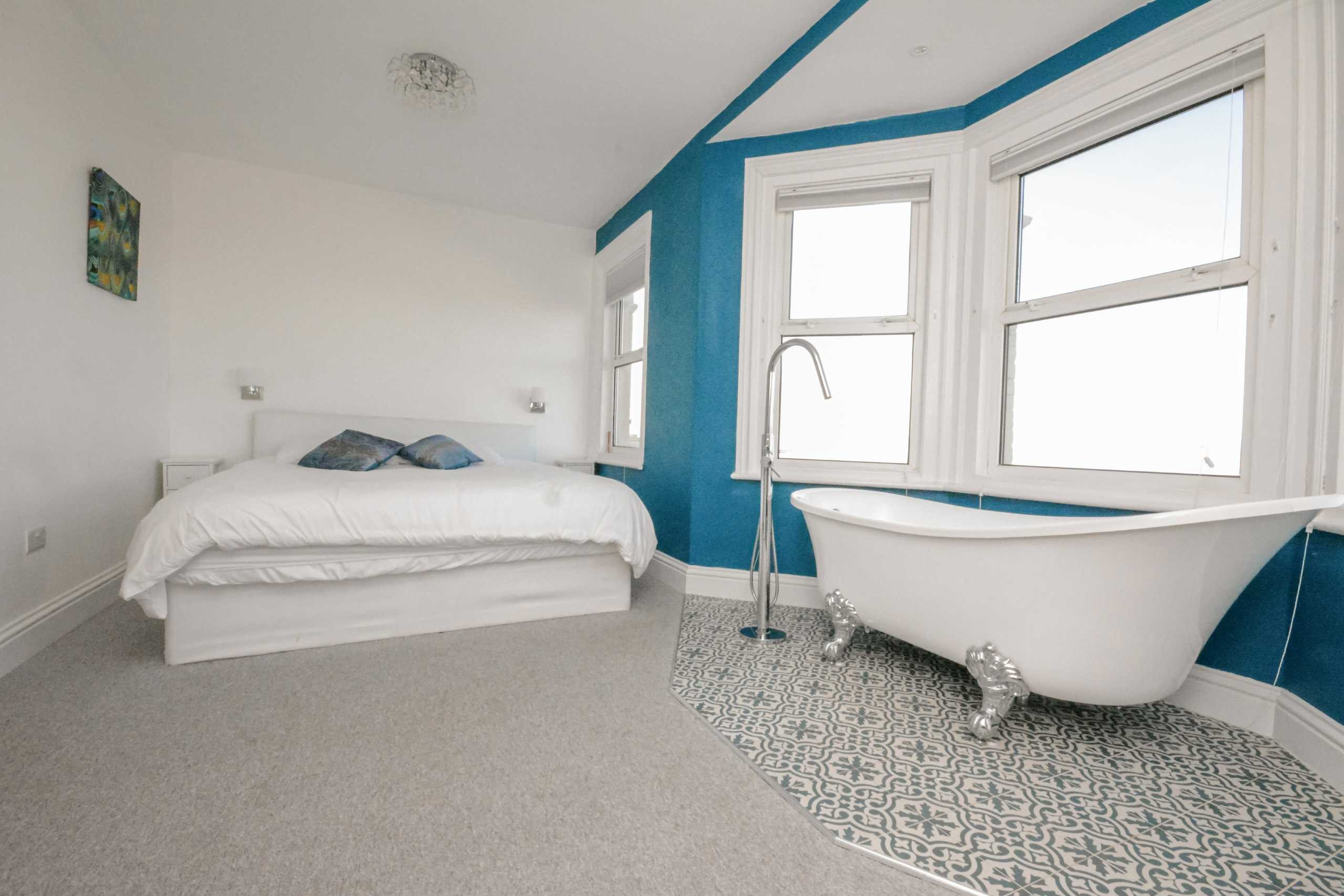 Double glazed bay window to front, sea views, radiatior, power point, free standing bath, door to jack and jill bathroom